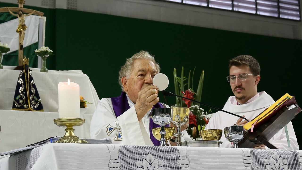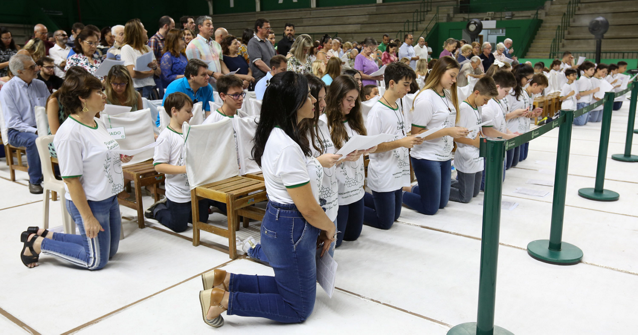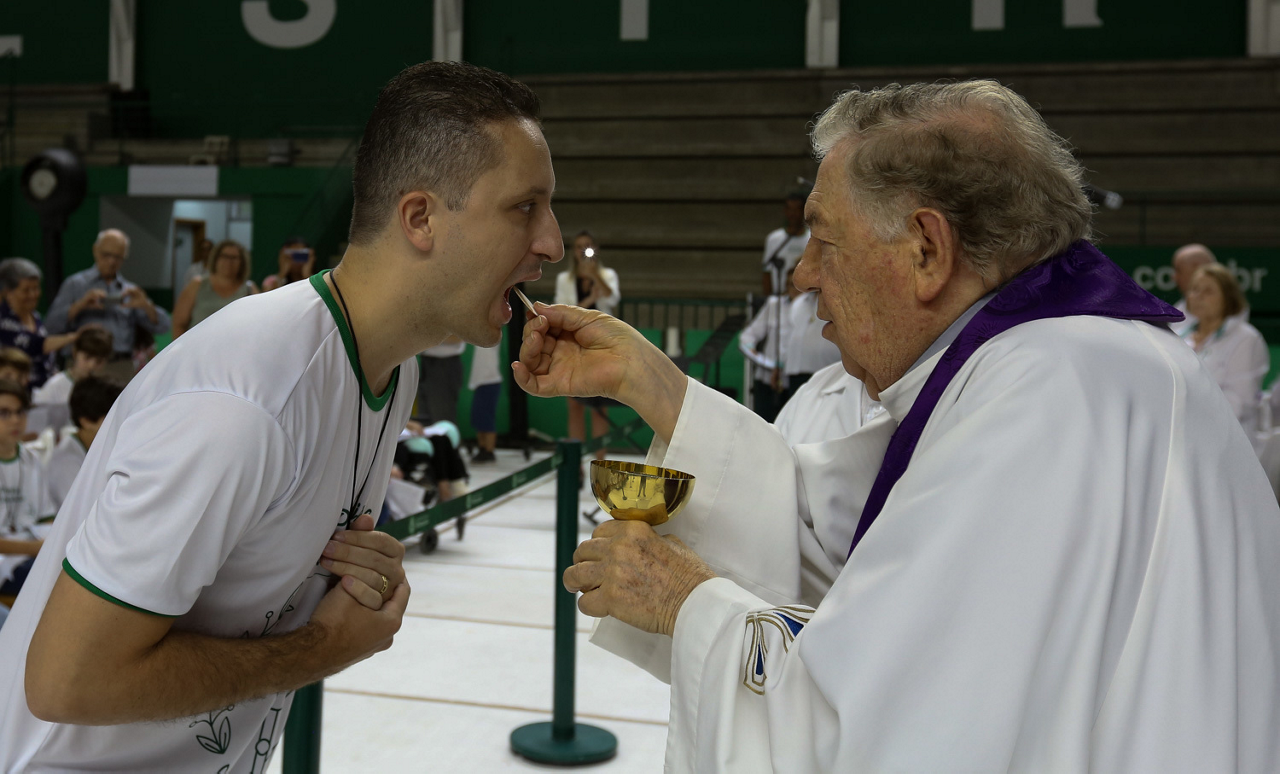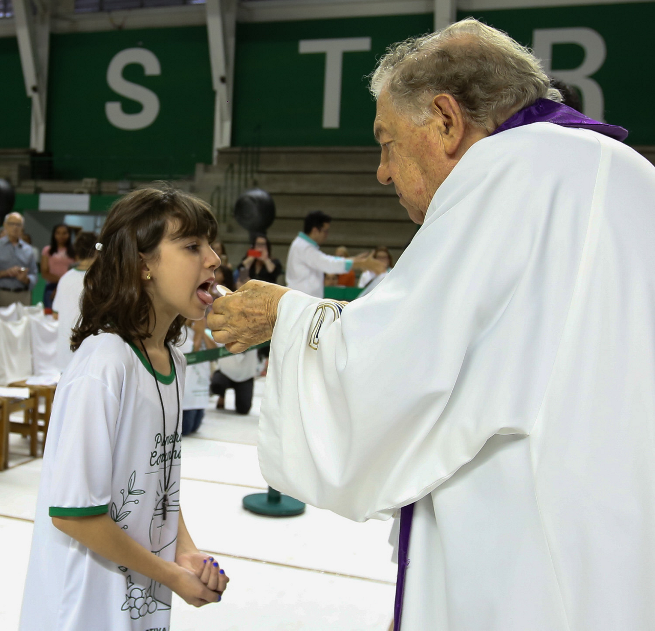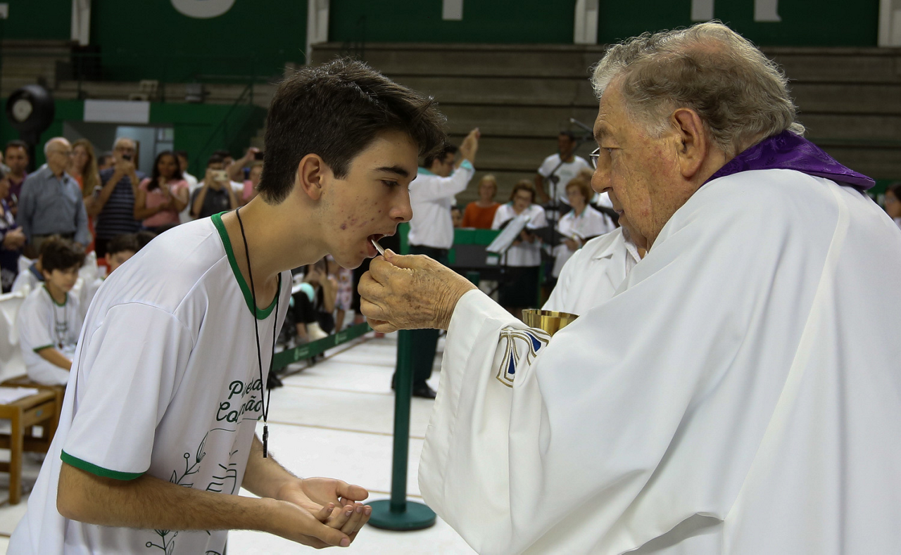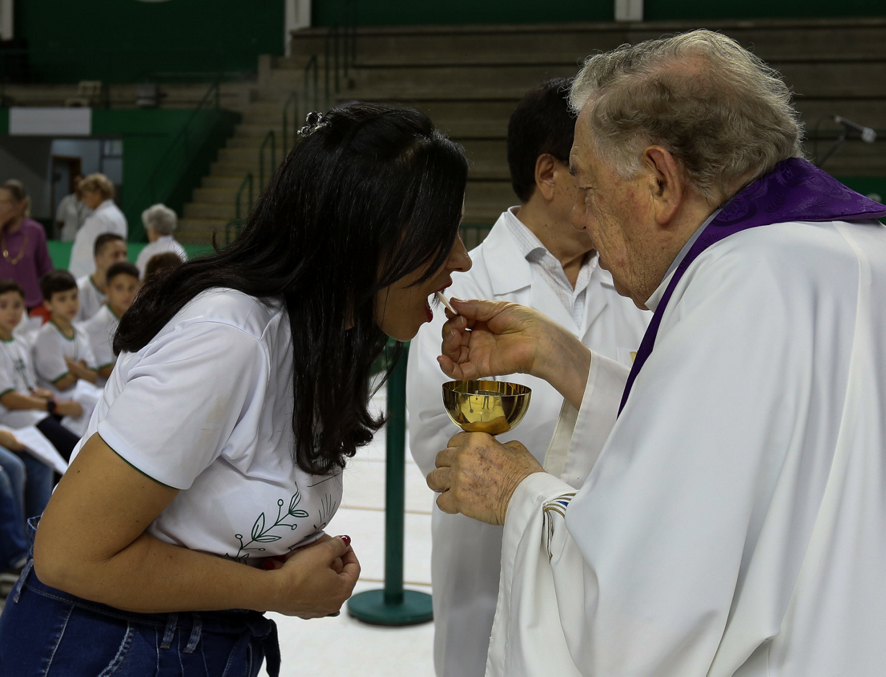 Missa de primeira comunhão, realizado no ginásio poliesportivo, no Clube Social da SE Palmeiras, em São Paulo-SP. (Foto: Fabio Menotti)