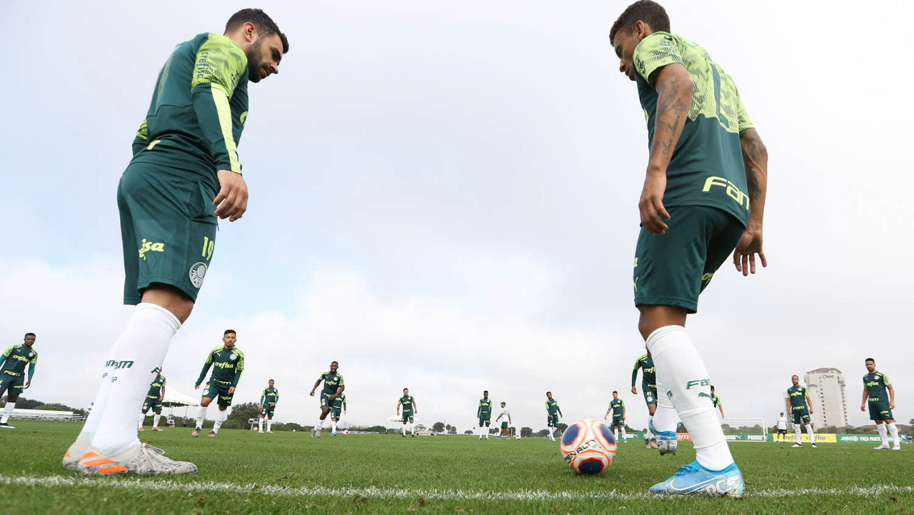 Os jogadores Matheus Fernandes e Raphael Veiga (D), da SE Palmeiras, durante treinamento em Orlando, Flórida. (Foto: Cesar Greco)