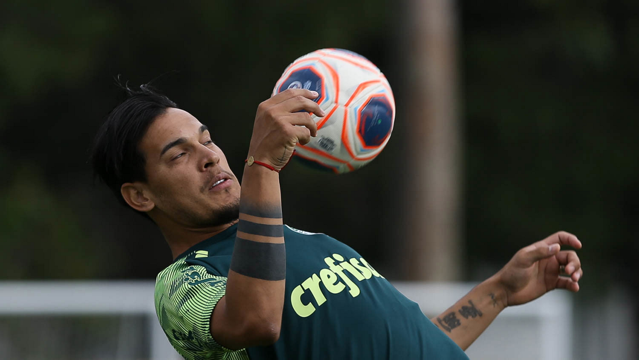 O jogador Gabriel Menino, da SE Palmeiras, durante treinamento, na Academia de Futebol. (Foto: Cesar Greco)