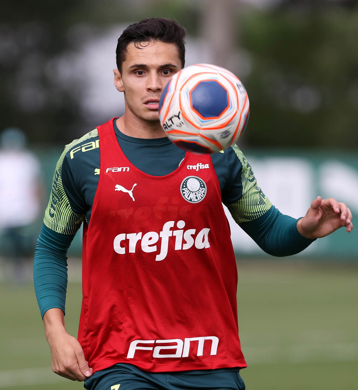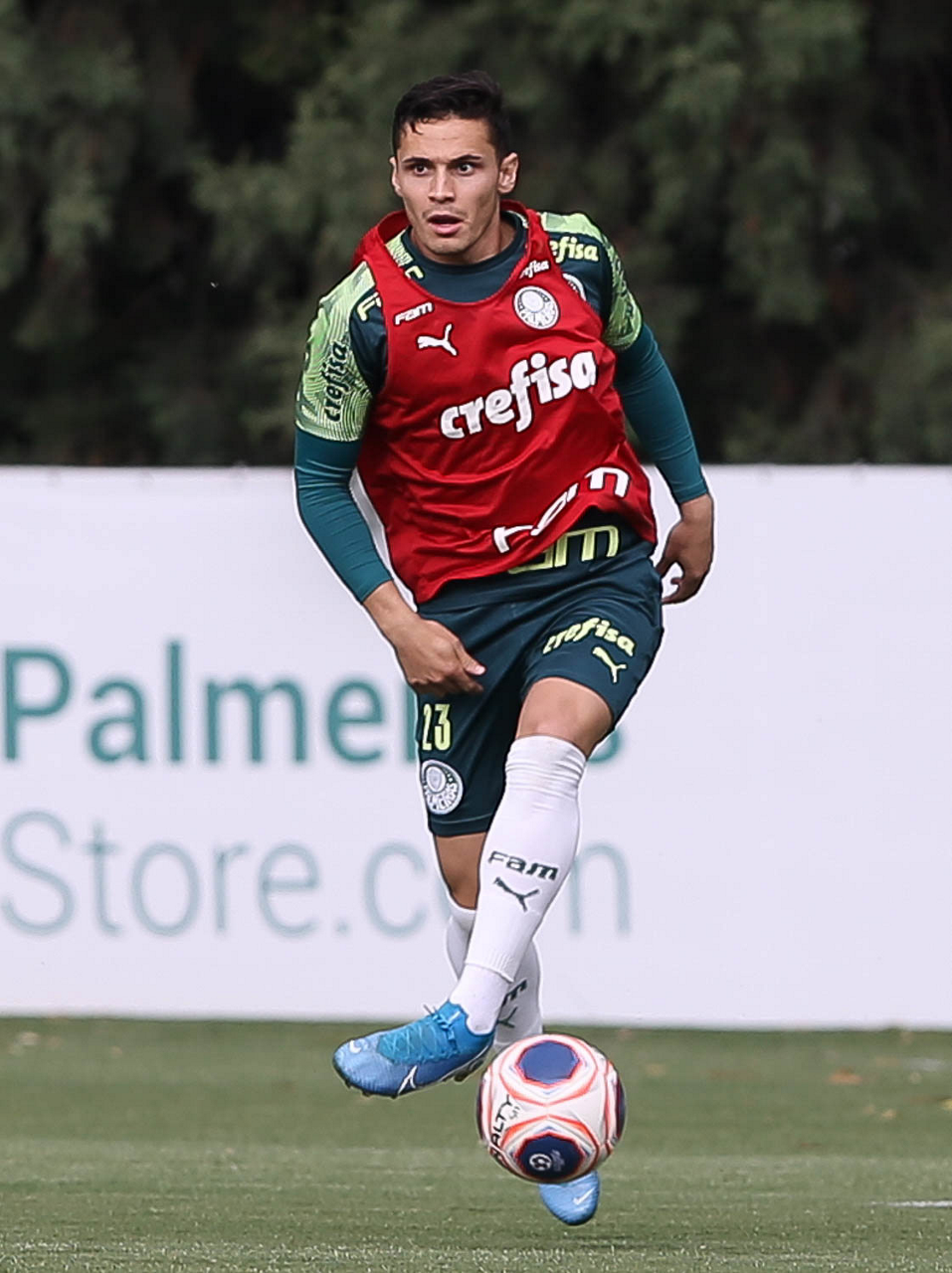 O jogador Raphael Veiga, da SE Palmeiras, durante treinamento, na Academia de Futebol. (Foto: Cesar Greco)