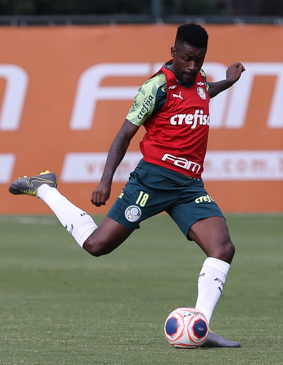 O jogador Vitor Hugo, da SE Palmeiras, durante treinamento, na Academia de Futebol. (Foto: Cesar Greco)