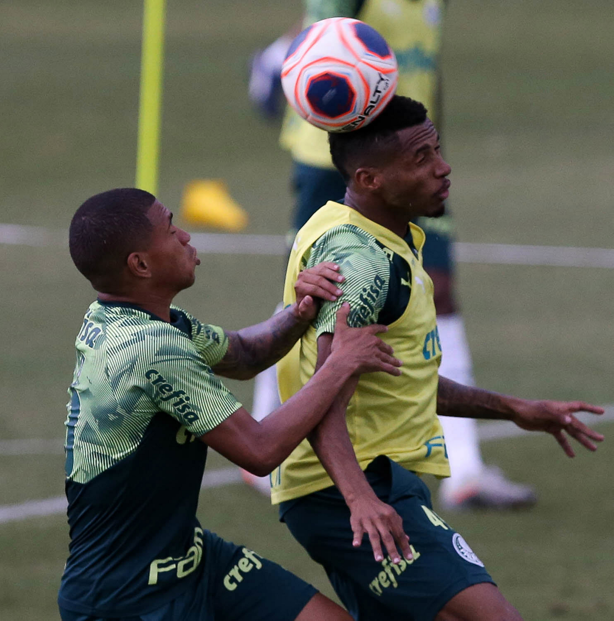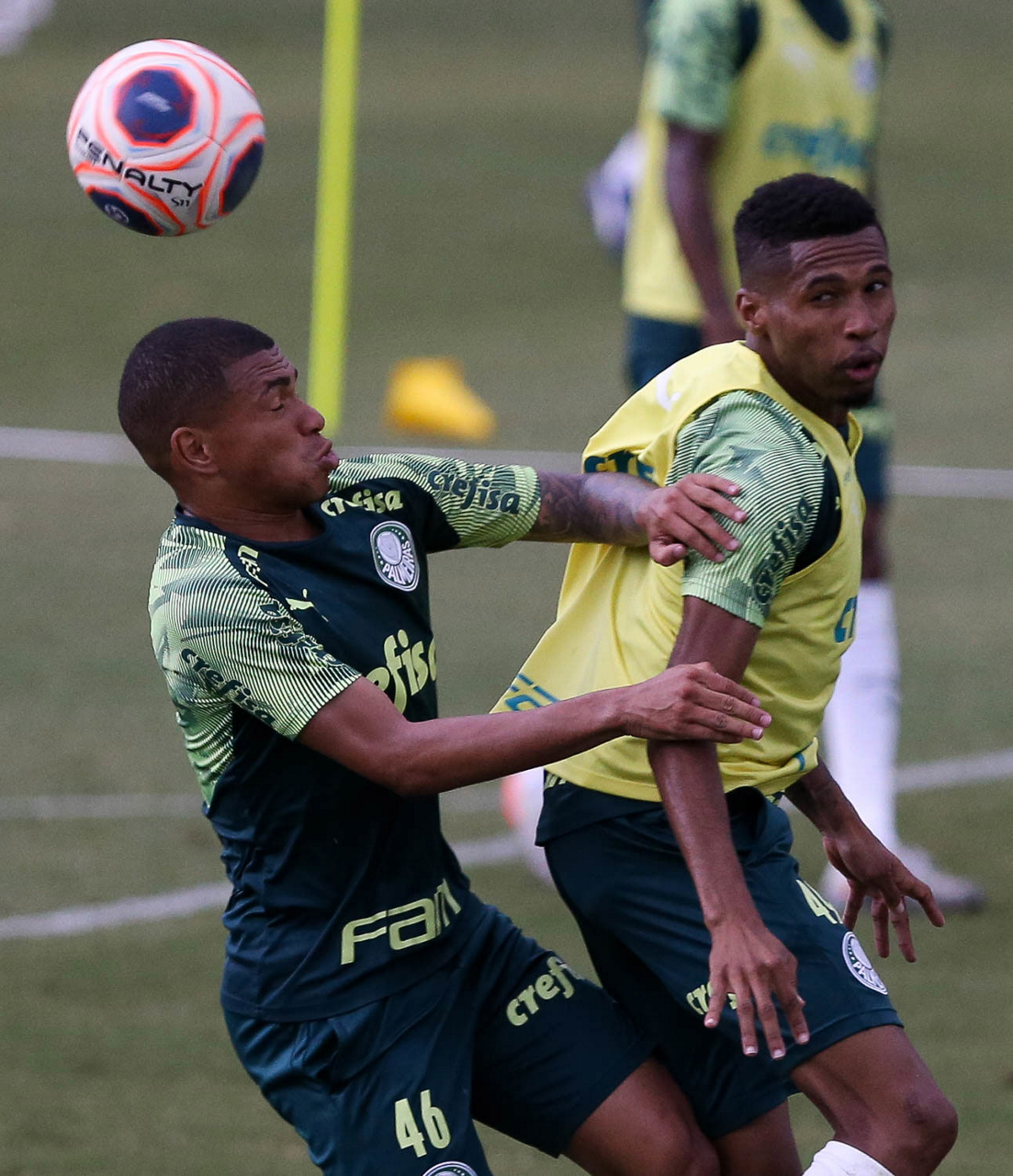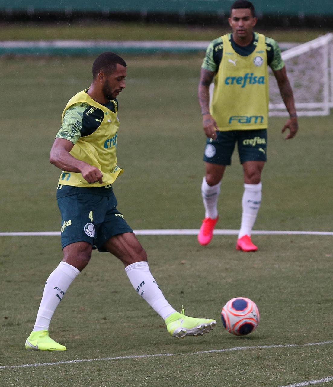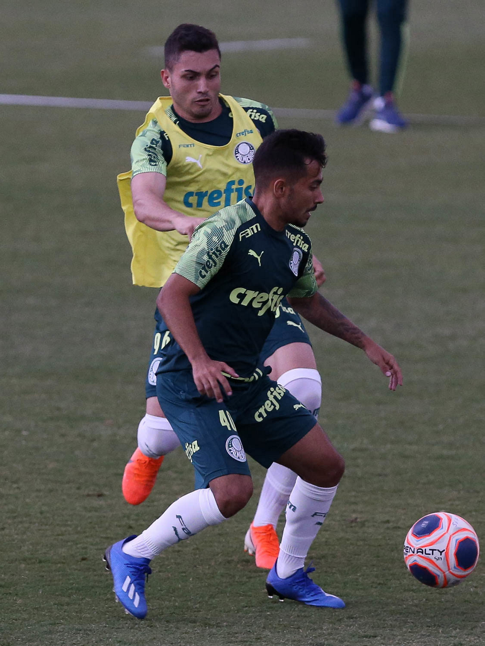 Os jogadores Alan e Raphael Veiga (D), da SE Palmeiras, durante treinamento, na Academia de Futebol. (Foto: Cesar Greco)