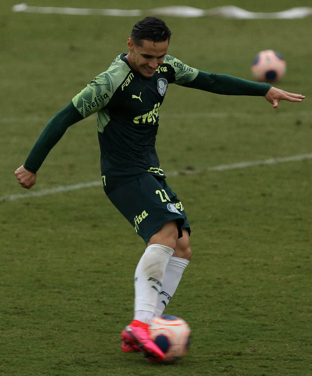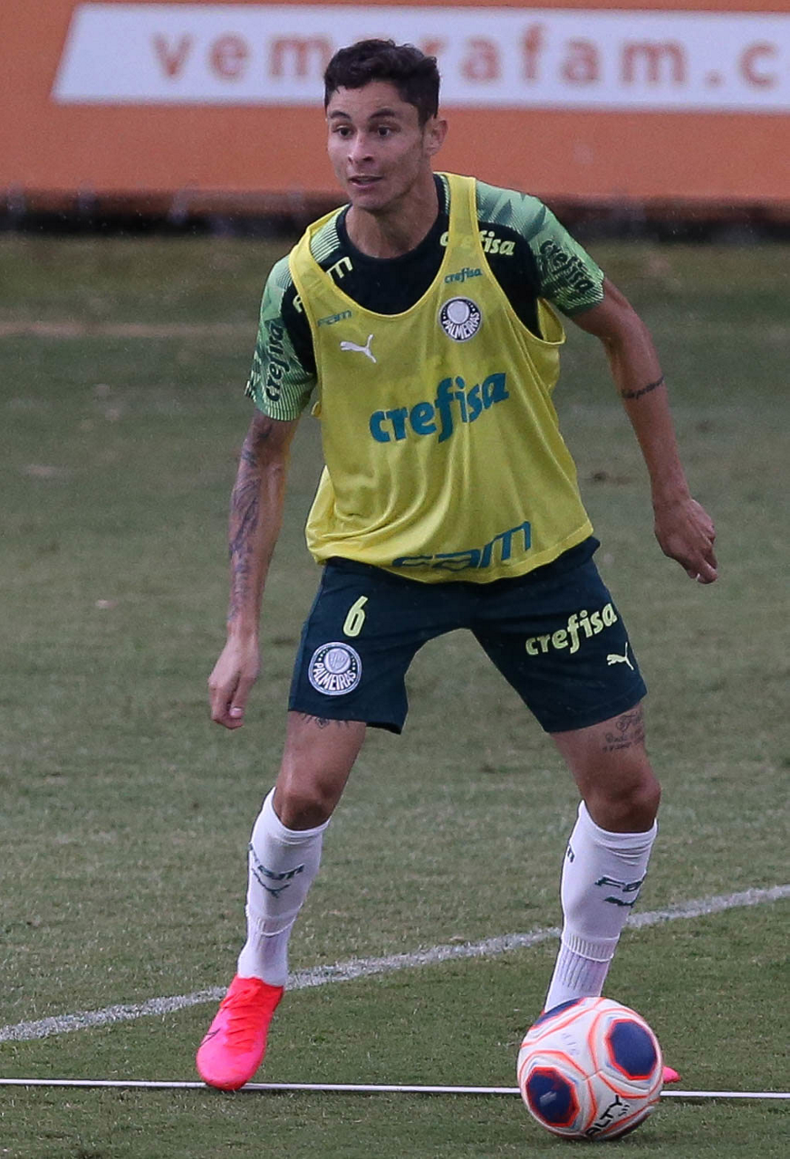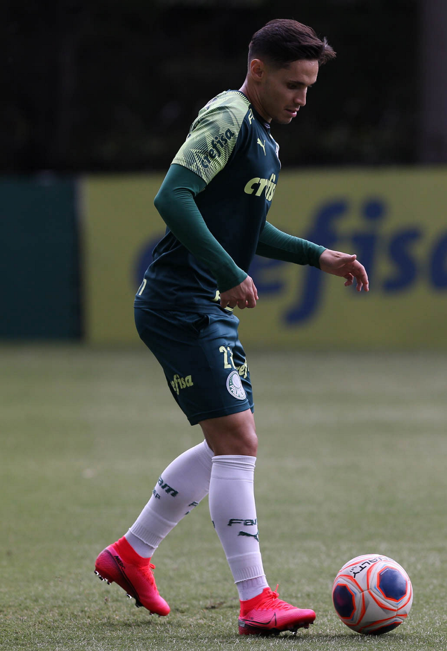 O jogador Raphael Veiga, da SE Palmeiras, durante treinamento, na Academia de Futebol. (Foto: Cesar Greco)