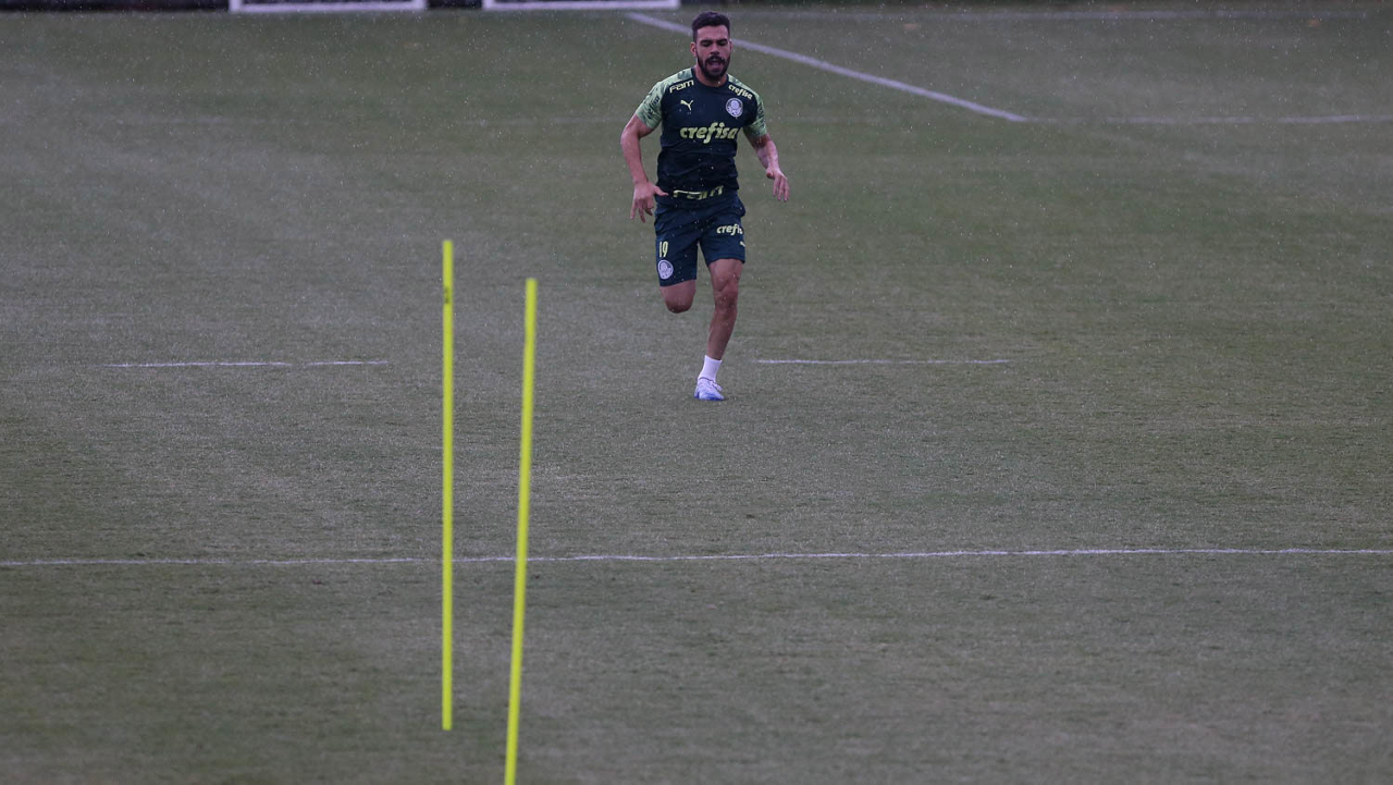 O jogador Patrick de Paula, da SE Palmeiras, durante treinamento, na Academia de Futebol. (Foto: Cesar Greco)