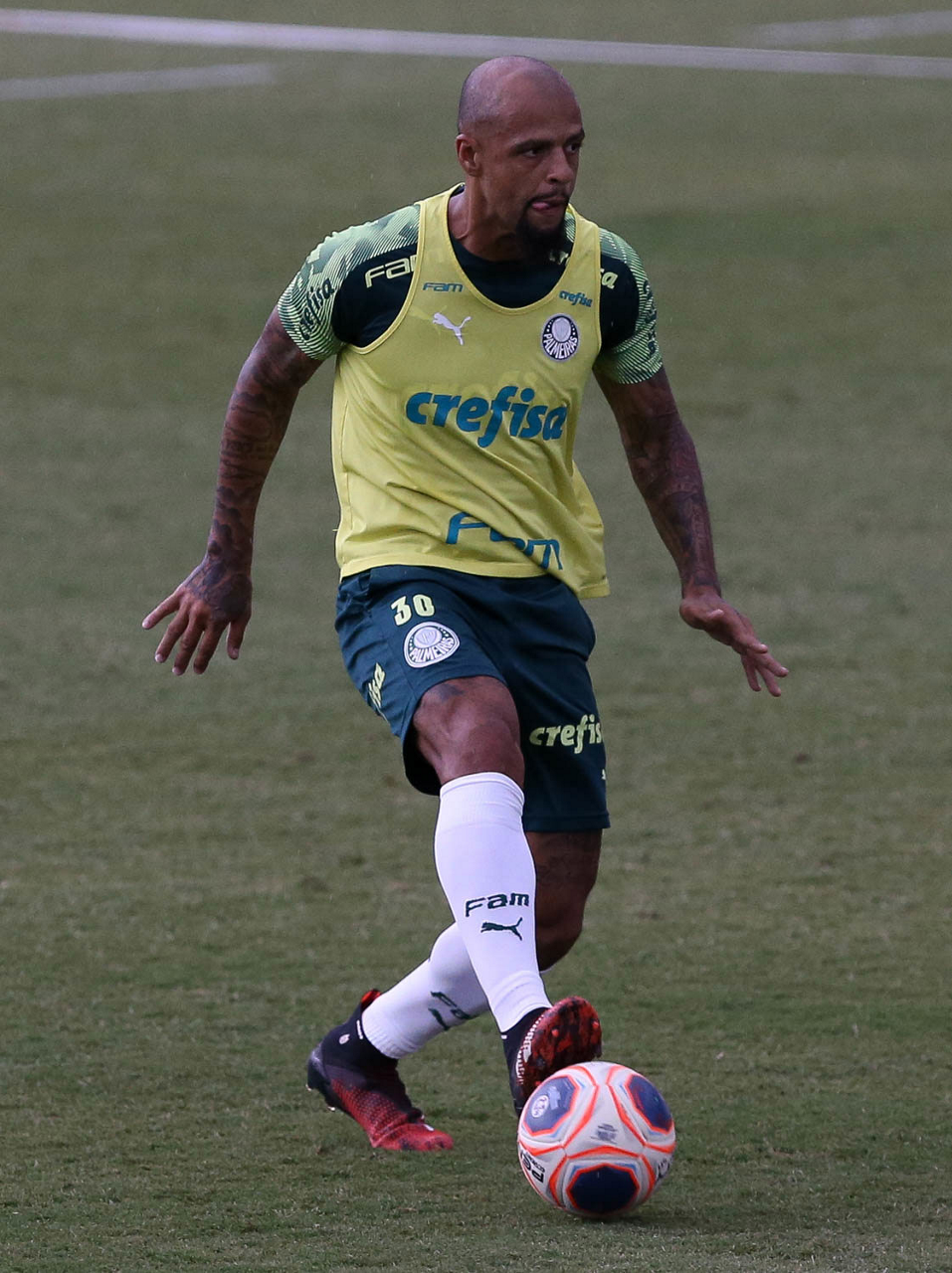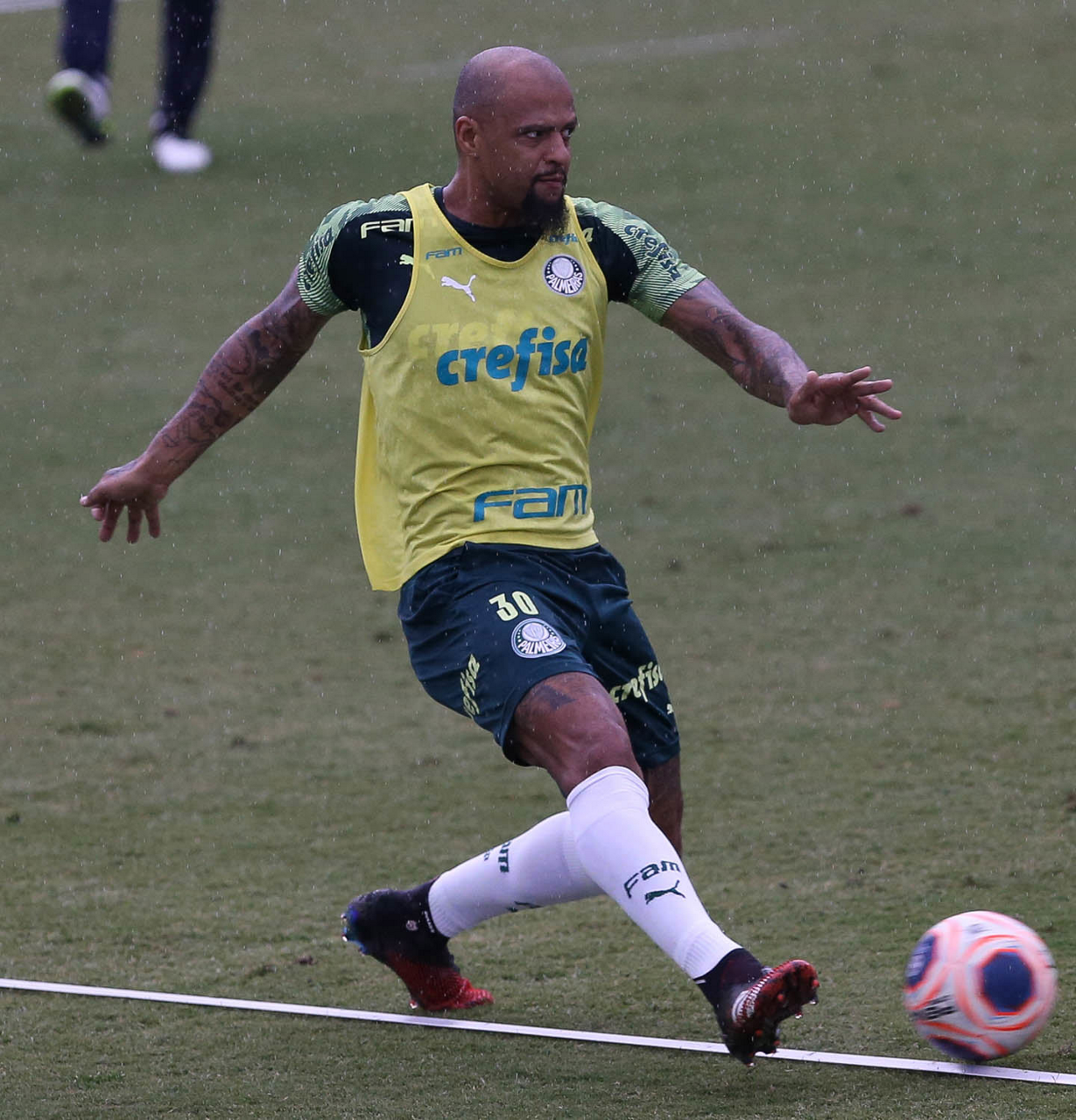 O jogador Felipe Melo, da SE Palmeiras, durante treinamento, na Academia de Futebol. (Foto: Cesar Greco)