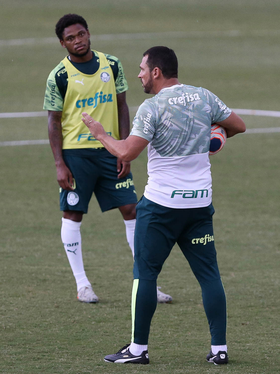 Os jogadores Luan e Alan (D), da SE Palmeiras, durante treinamento, na Academia de Futebol. (Foto: Cesar Greco)
