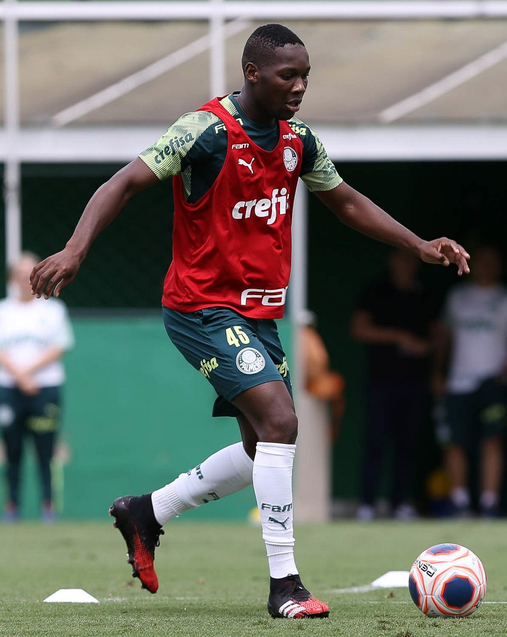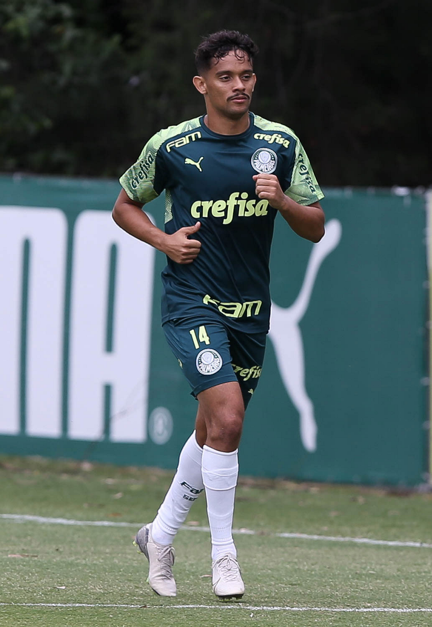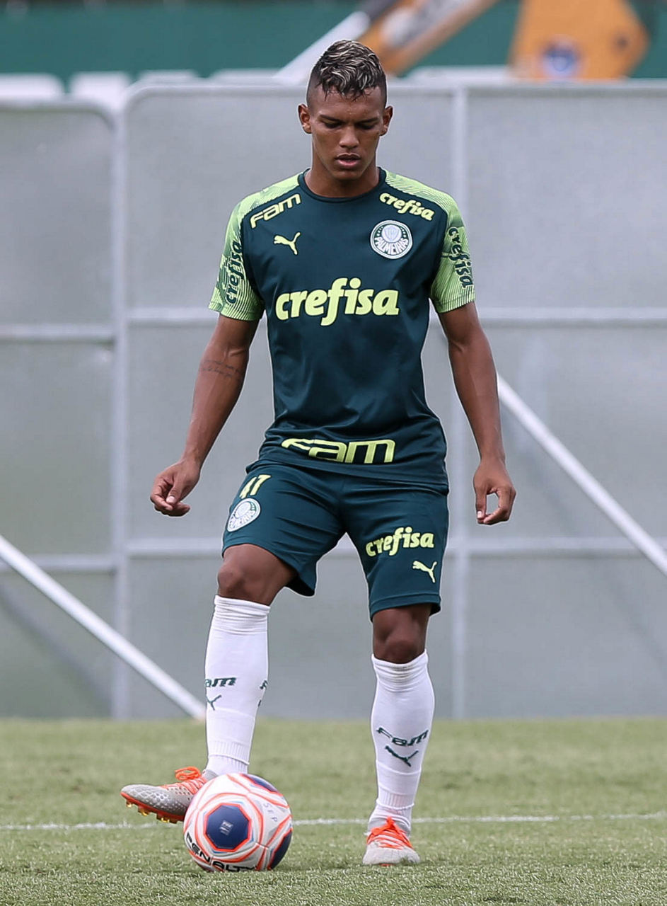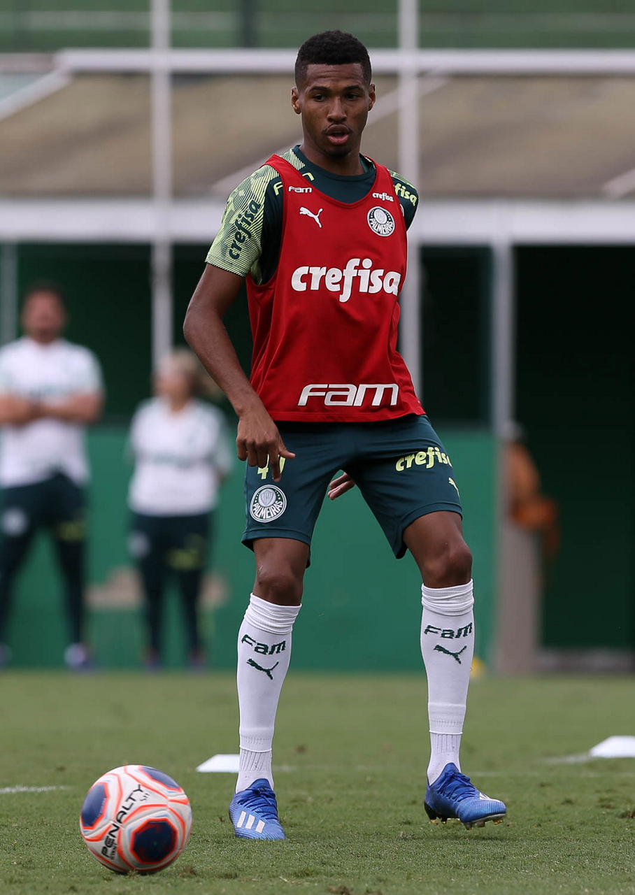 O jogador Gabriel Veron, da SE Palmeiras, durante treinamento, na Academia de Futebol. (Foto: Cesar Greco)