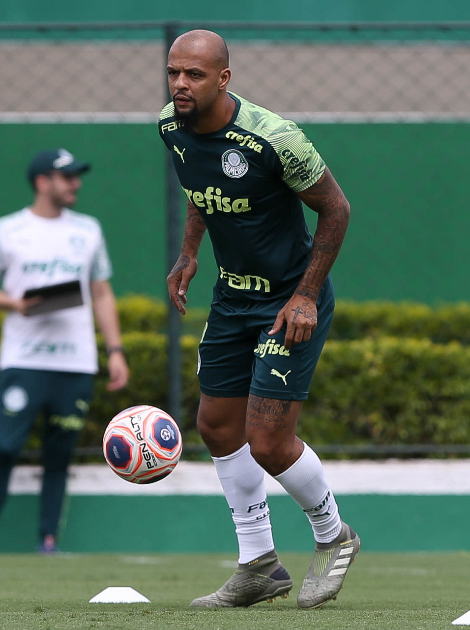 O jogador Felipe Melo, da SE Palmeiras, durante treinamento, na Academia de Futebol. (Foto: Cesar Greco)