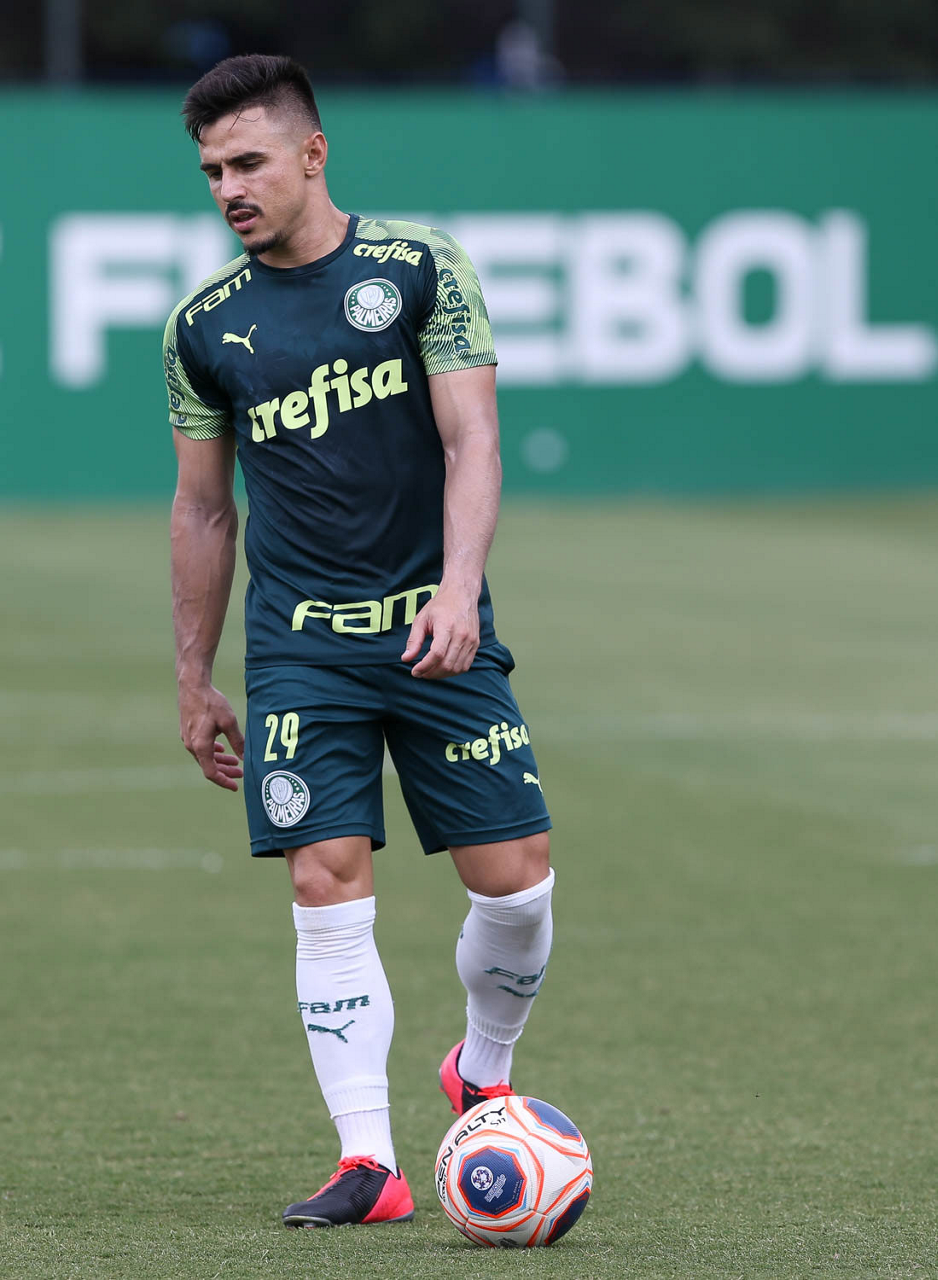 O jogador Gustavo Scarpa, da SE Palmeiras, durante treinamento, na Academia de Futebol. (Foto: Cesar Greco)