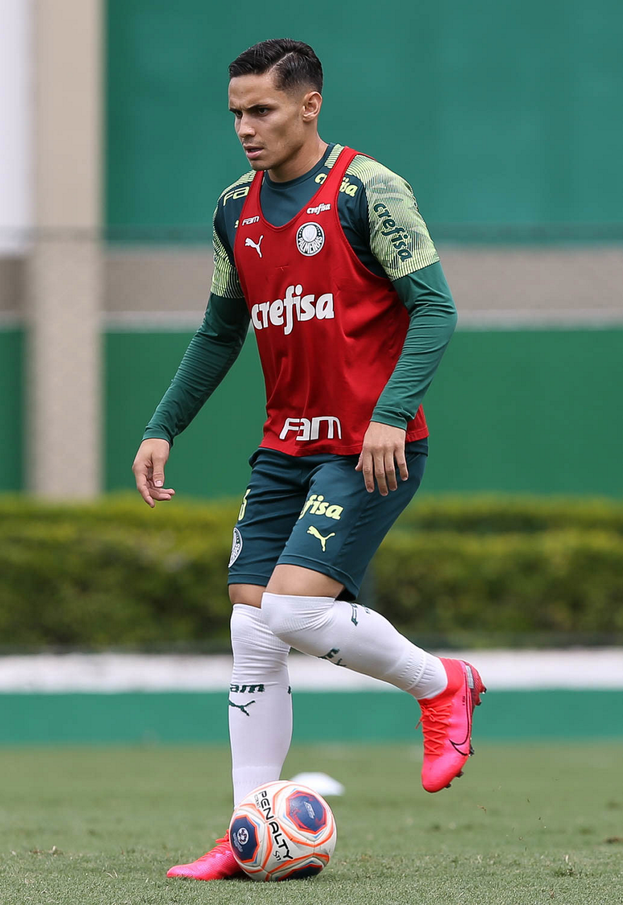 O jogador Raphael Veiga, da SE Palmeiras, durante treinamento, na Academia de Futebol. (Foto: Cesar Greco)