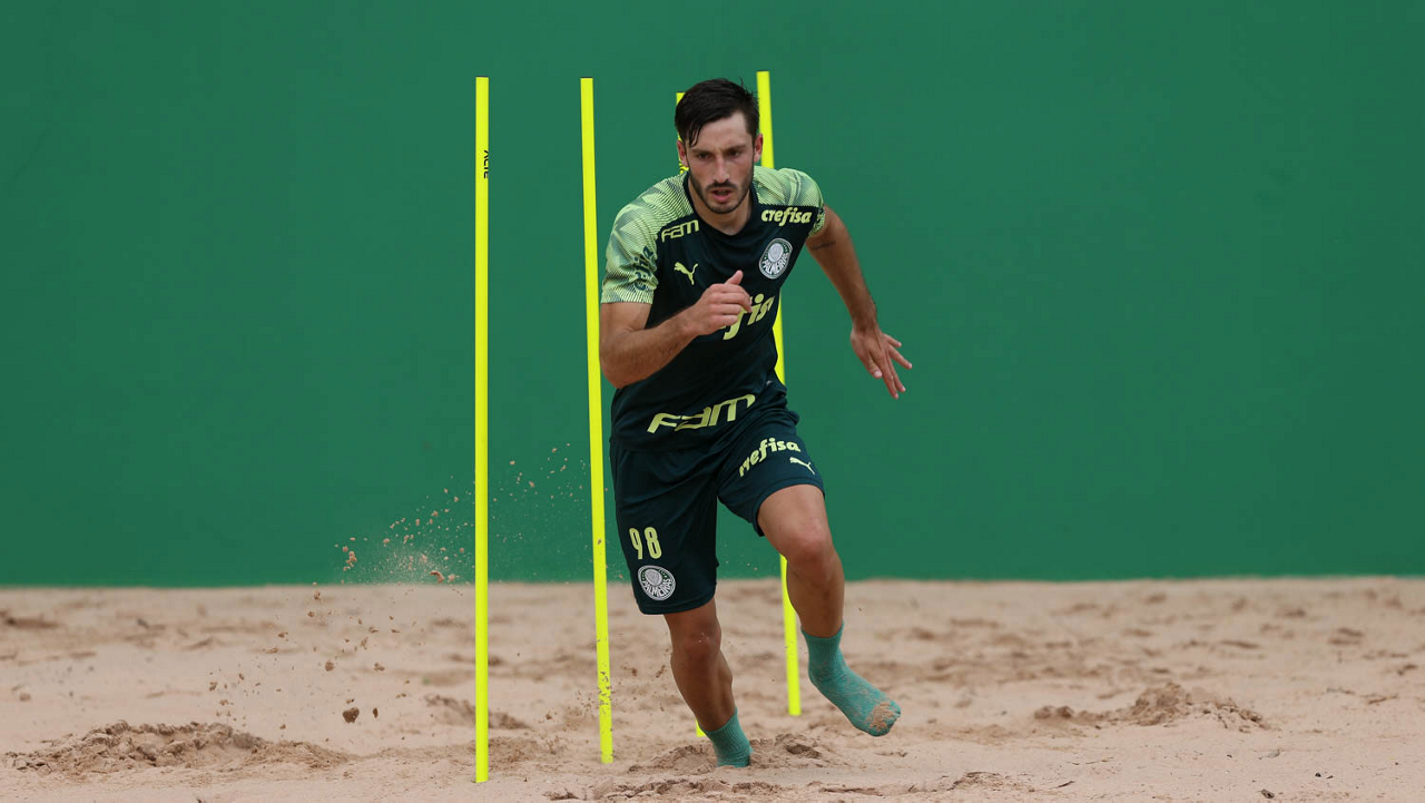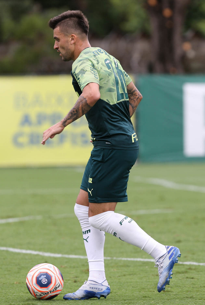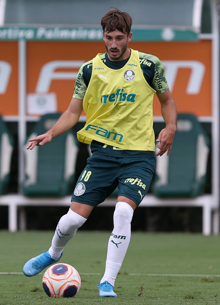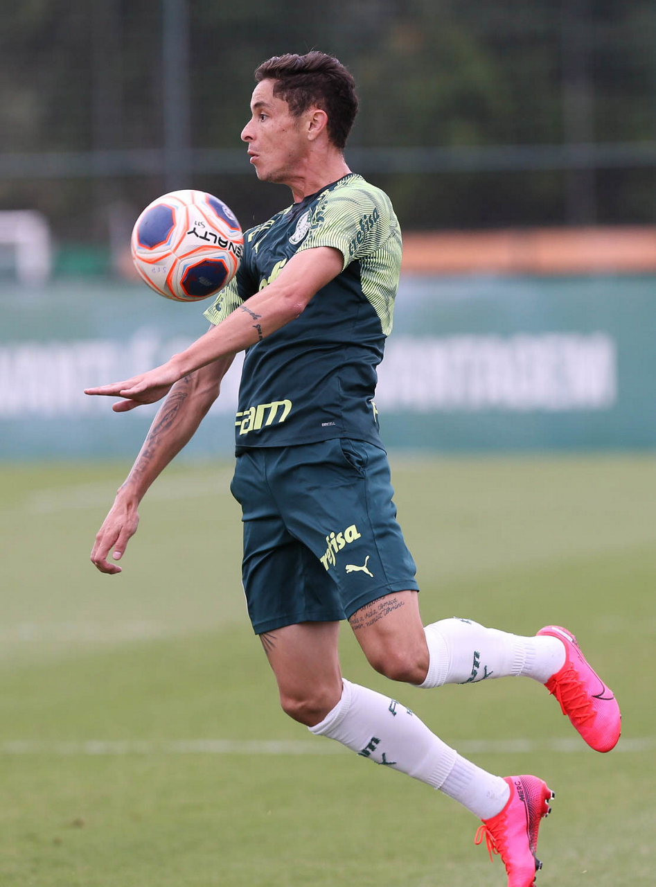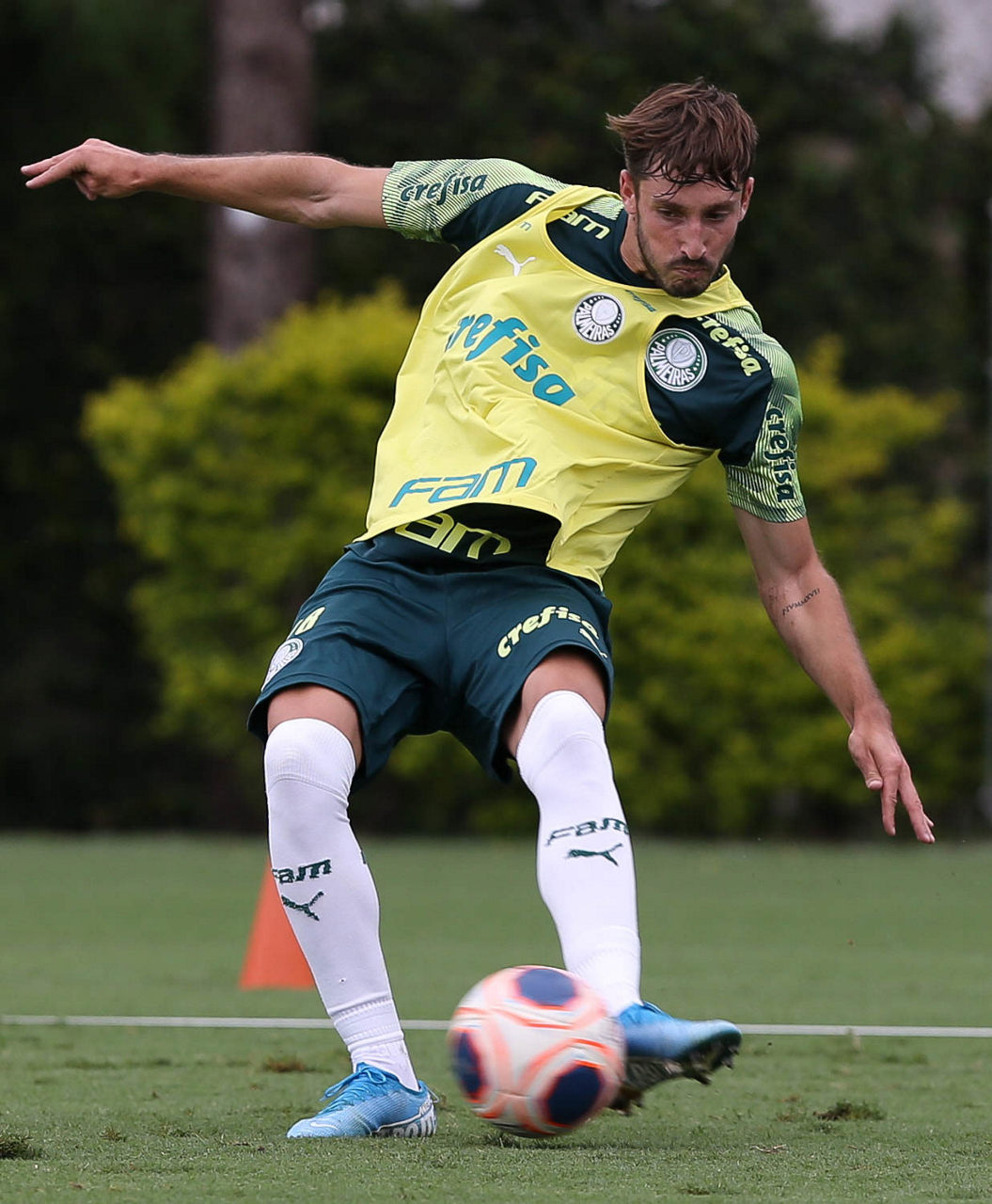 O jogador Gustavo Scarpa, da SE Palmeiras, durante treinamento, na Academia de Futebol. (Foto: Cesar Greco)