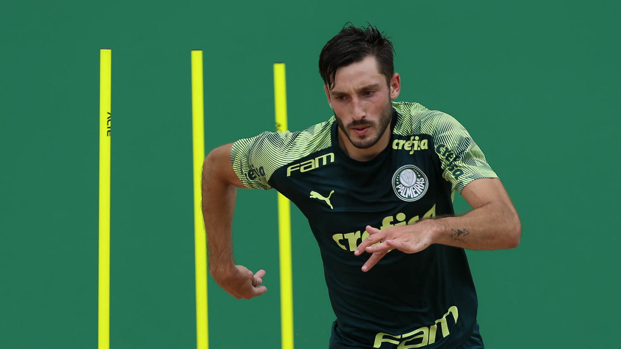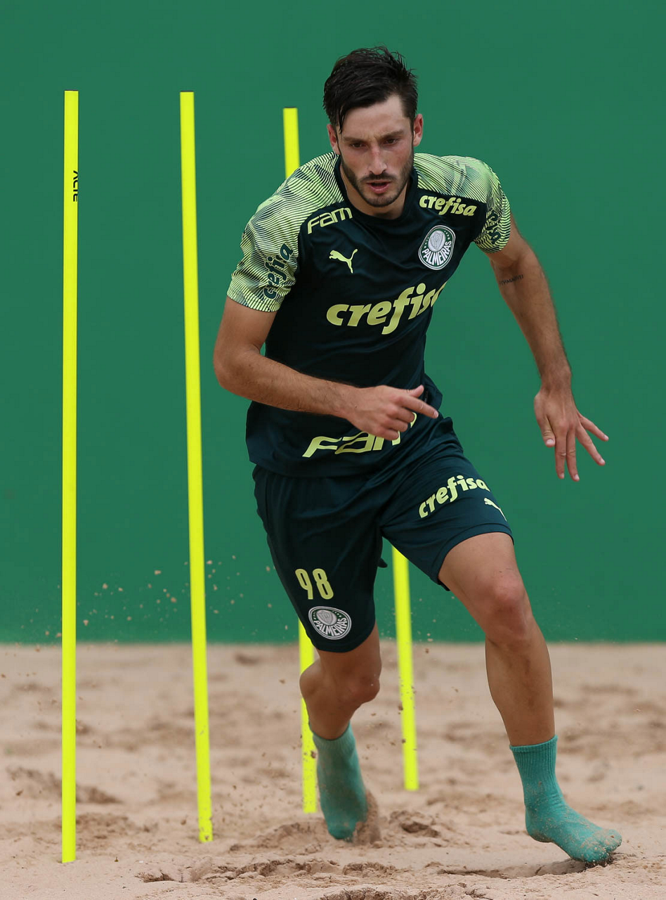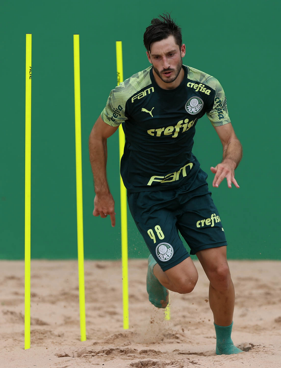 O jogador Gustavo Gómez, da SE Palmeiras, durante treinamento, na Academia de Futebol. (Foto: Cesar Greco)