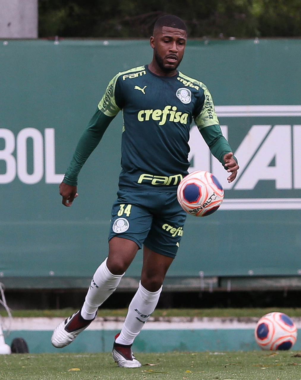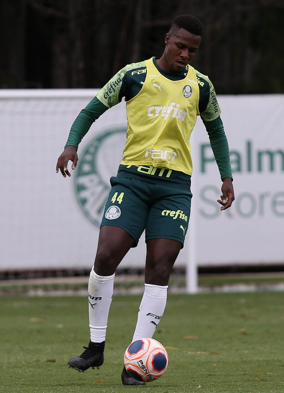O jogador Emerson Santos, da SE Palmeiras, durante treinamento, na Academia de Futebol. (Foto: Cesar Greco)