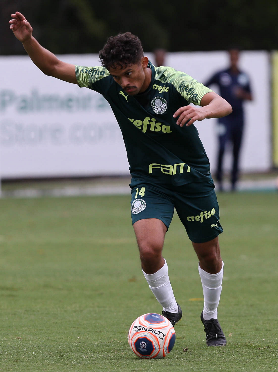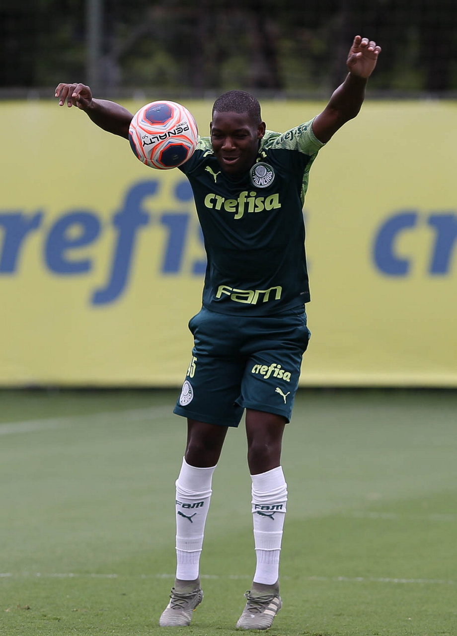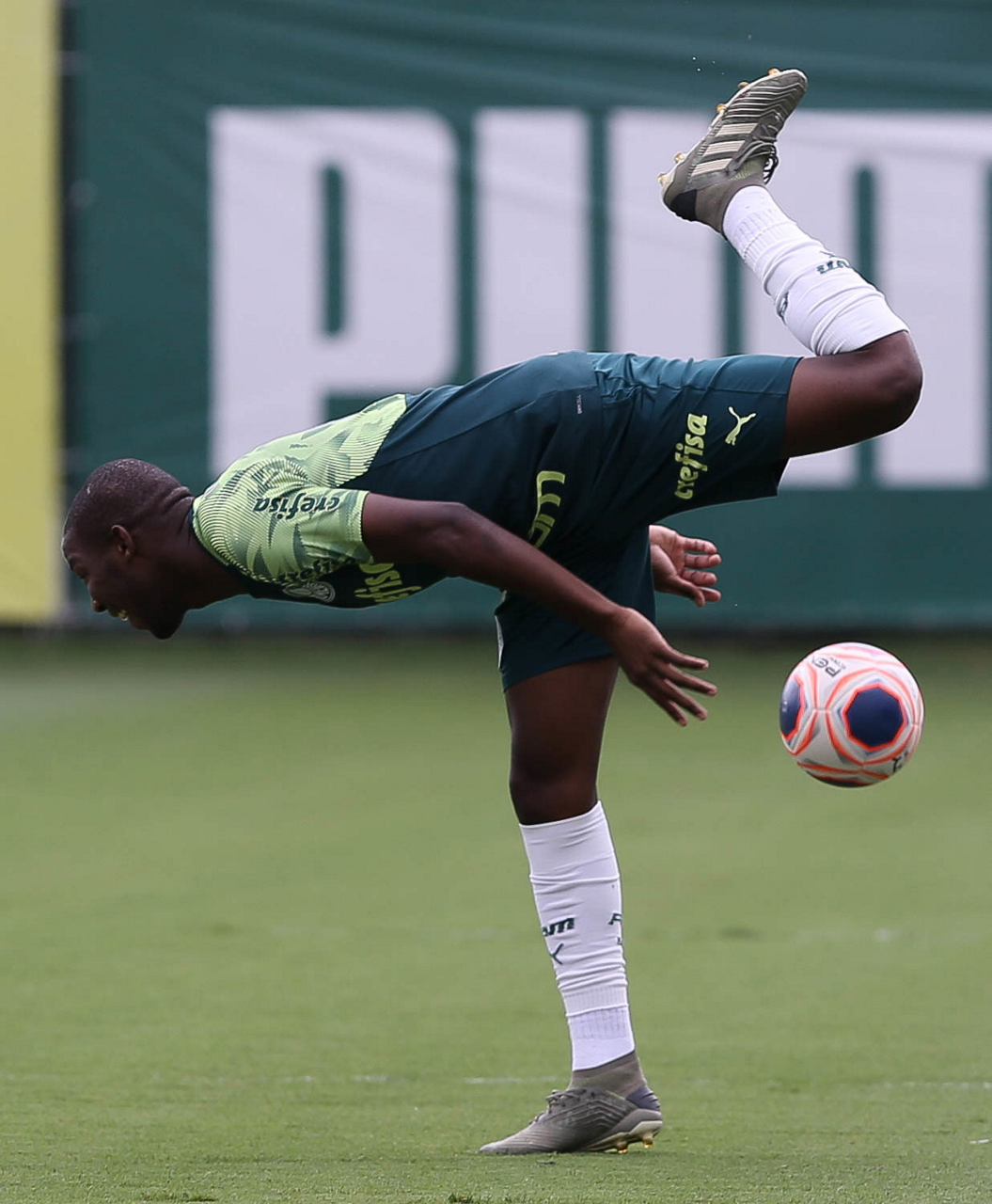 O jogador Gabriel Veron, da SE Palmeiras, durante treinamento, na Academia de Futebol. (Foto: Cesar Greco)