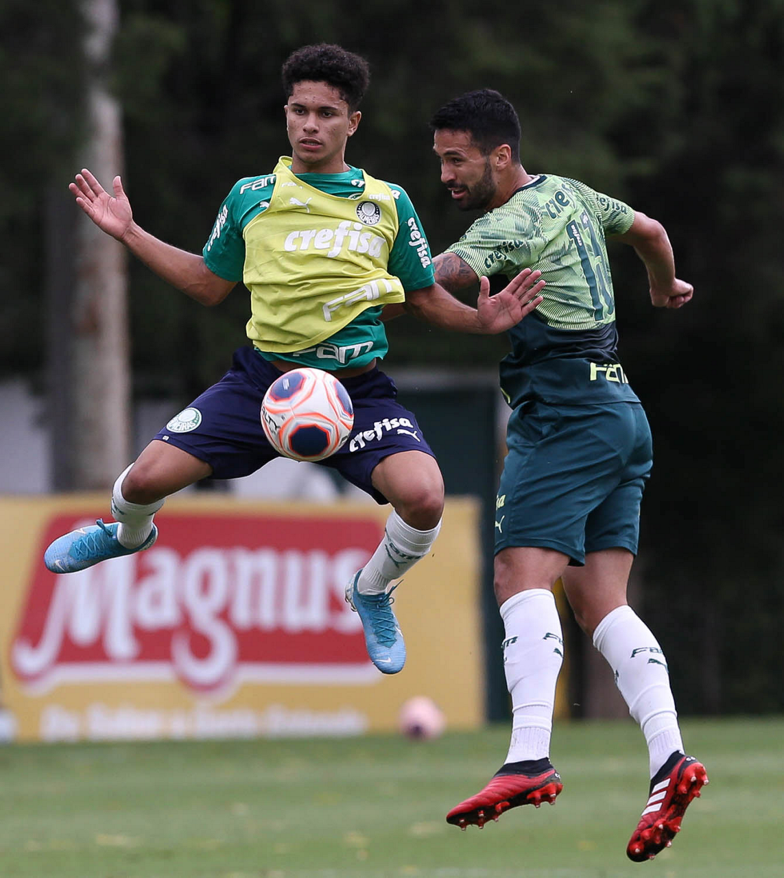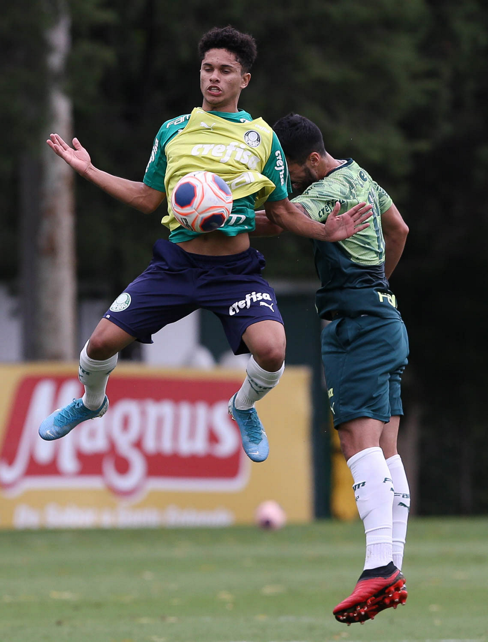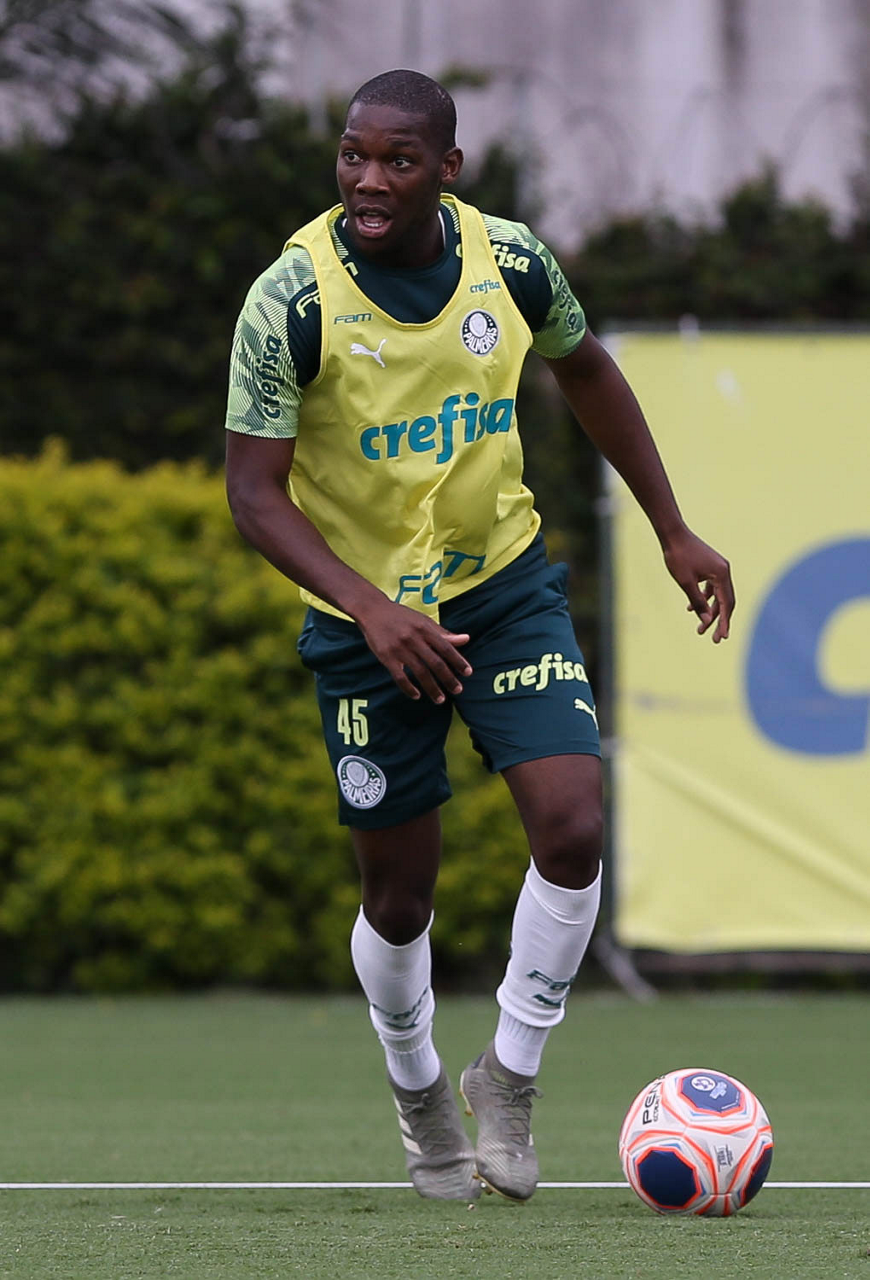 O jogador Gabriel Veron, da SE Palmeiras, durante treinamento, na Academia de Futebol. (Foto: Cesar Greco)