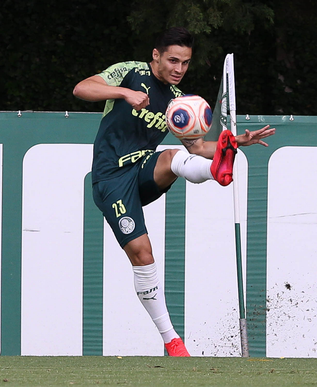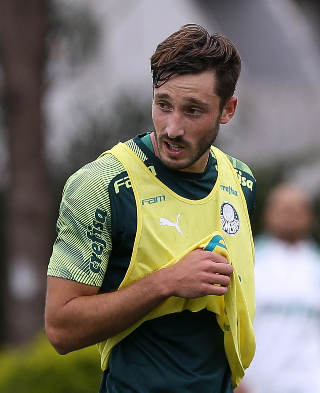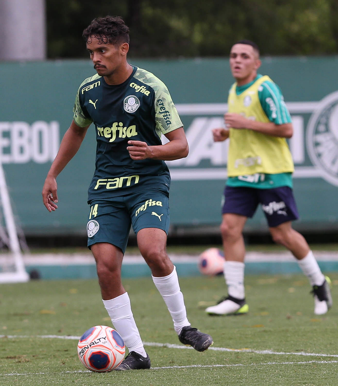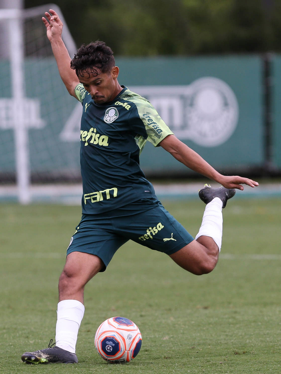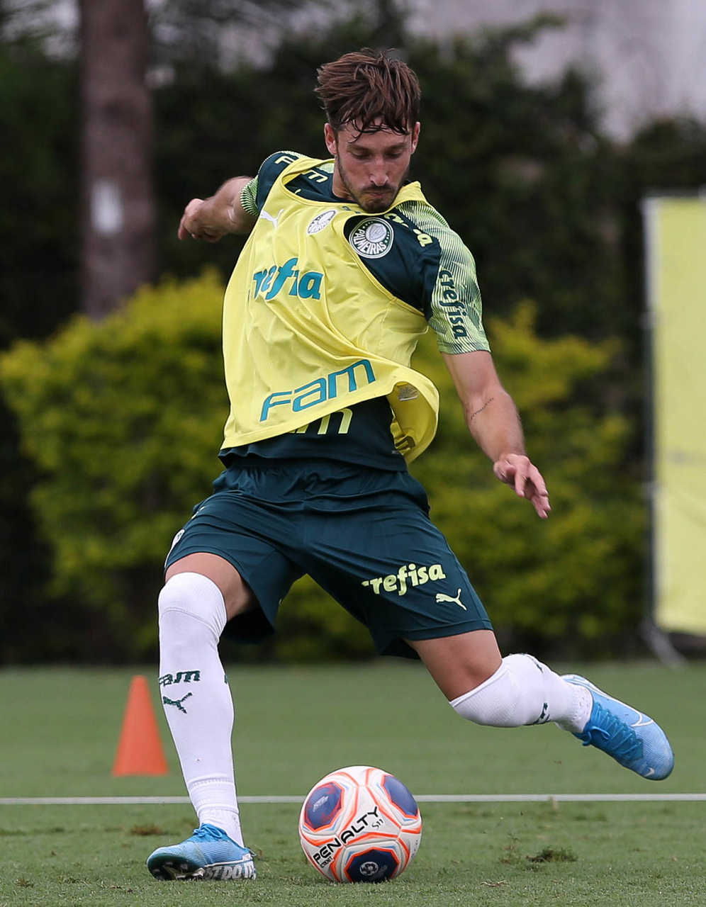 O jogador Raphael Veiga, da SE Palmeiras, durante treinamento, na Academia de Futebol. (Foto: Cesar Greco)