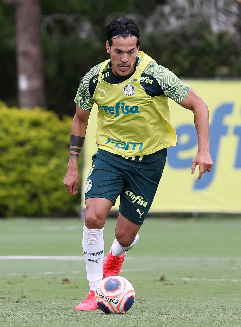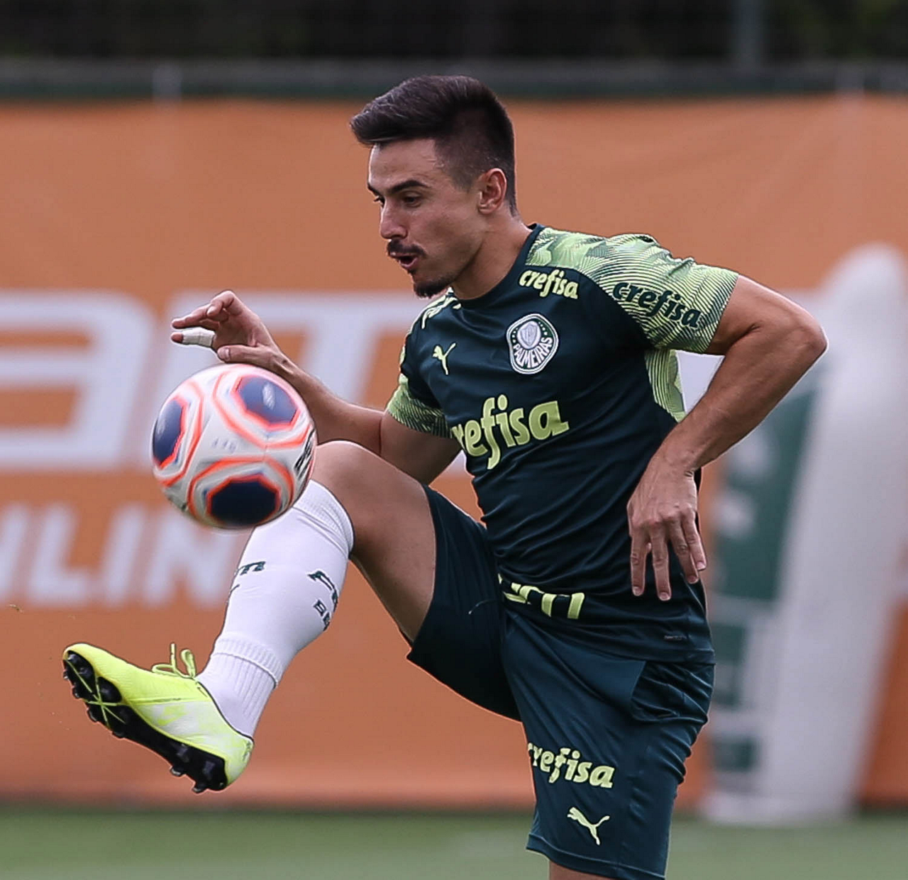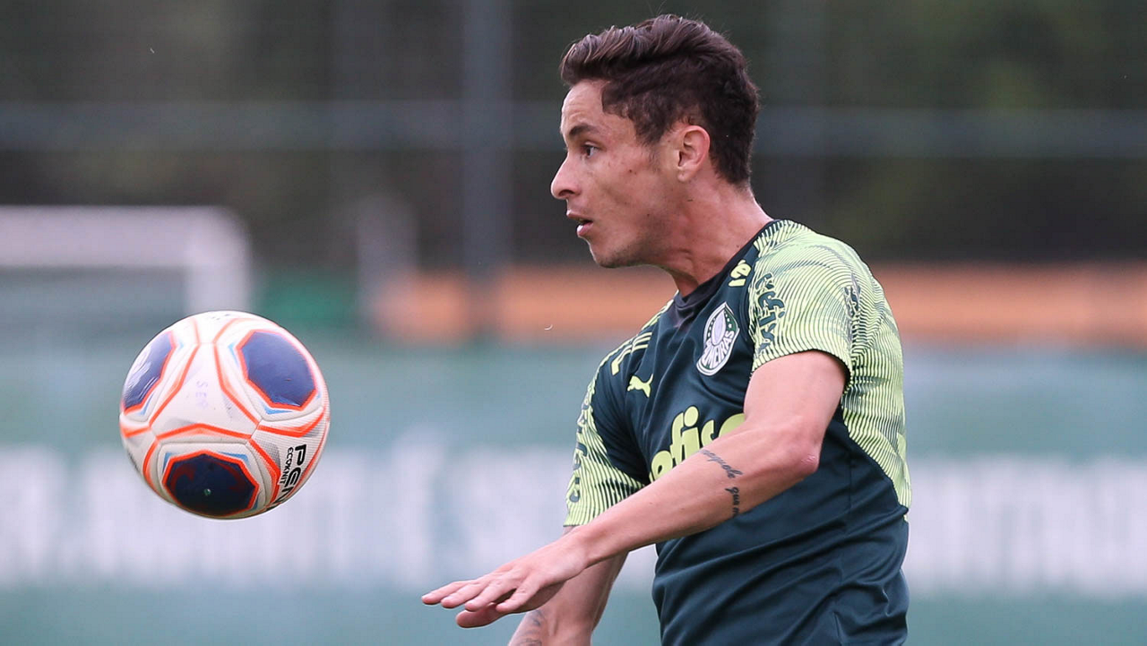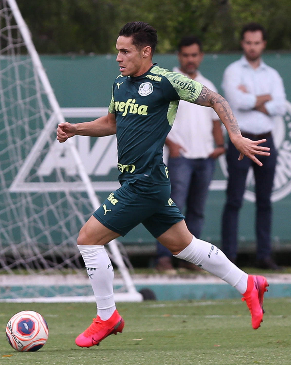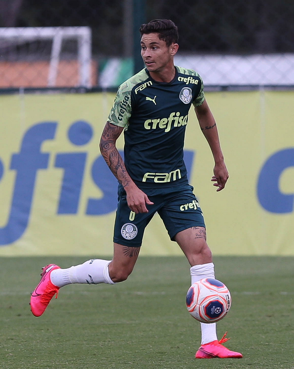 O jogador Raphael Veiga, da SE Palmeiras, durante treinamento, na Academia de Futebol. (Foto: Cesar Greco)