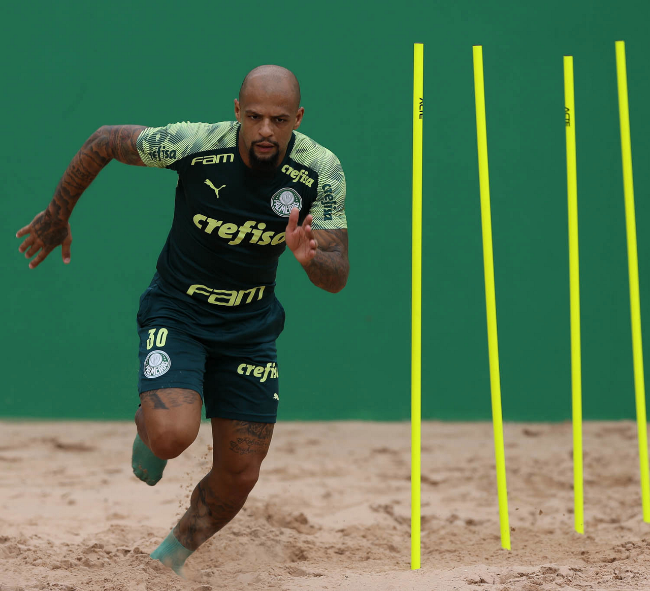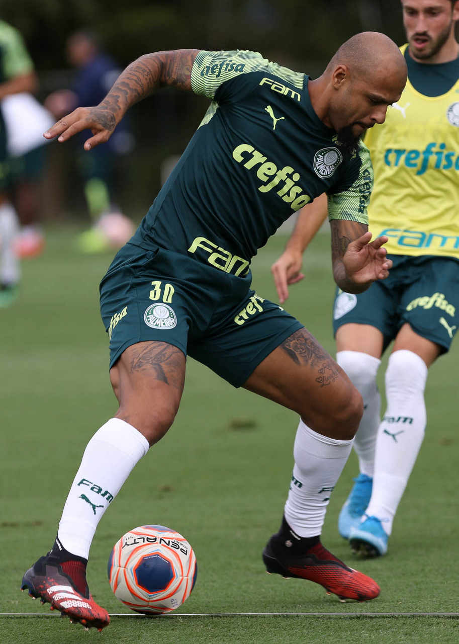 O jogador Felipe Melo, da SE Palmeiras, durante treinamento, na Academia de Futebol. (Foto: Cesar Greco)