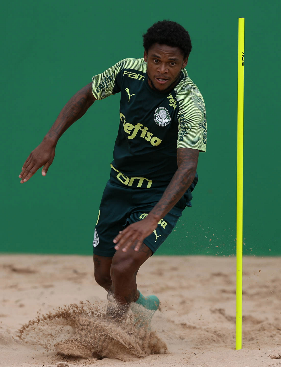 O jogador Luan, da SE Palmeiras, durante treinamento, na Academia de Futebol. (Foto: Cesar Greco)