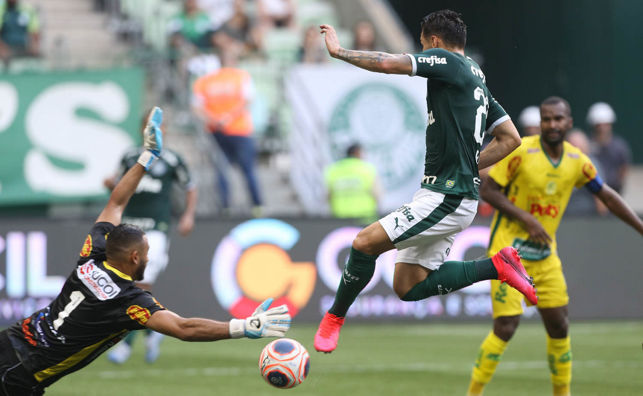 O goleiro Weverton, da SE Palmeiras, em jogo contra a equipe do Mirassol FC, durante partida válida pela sexta rodada, do Campeonato Paulista, Série A1, na arena Allianz Parque. (Foto: Cesar Greco)