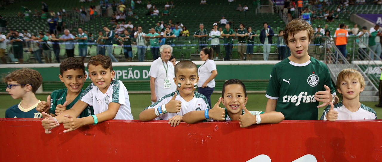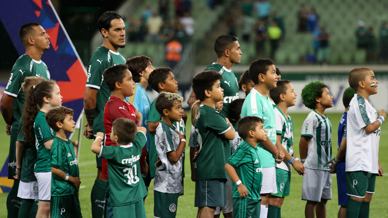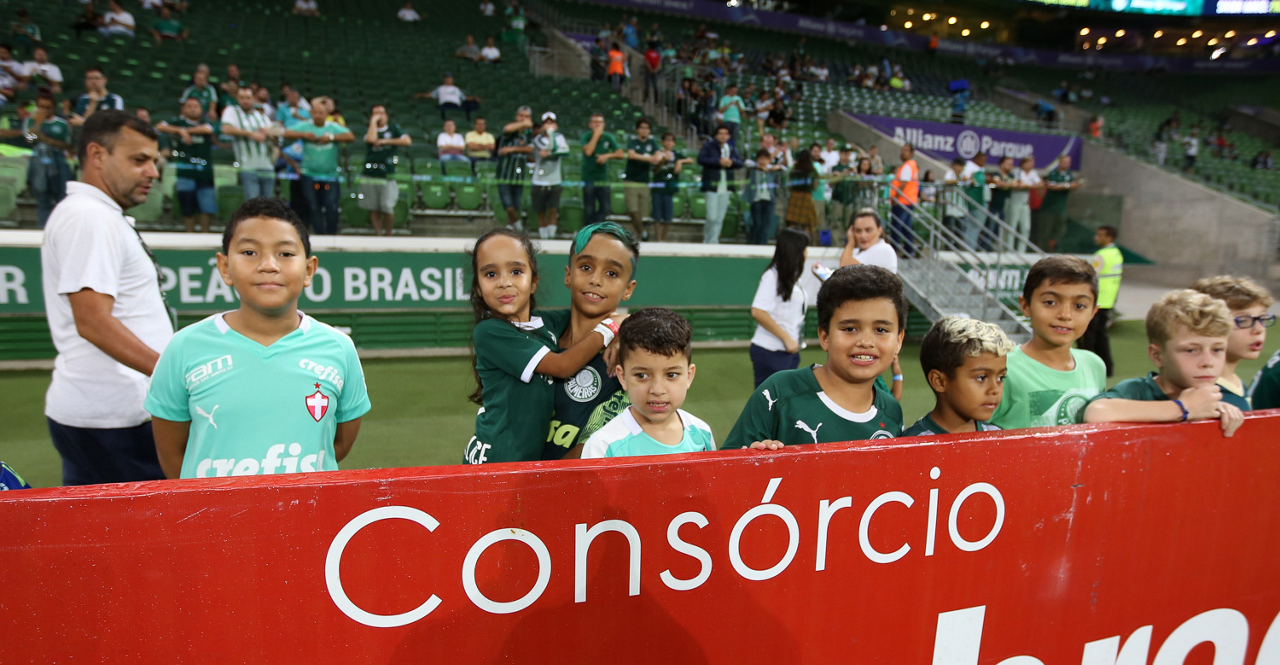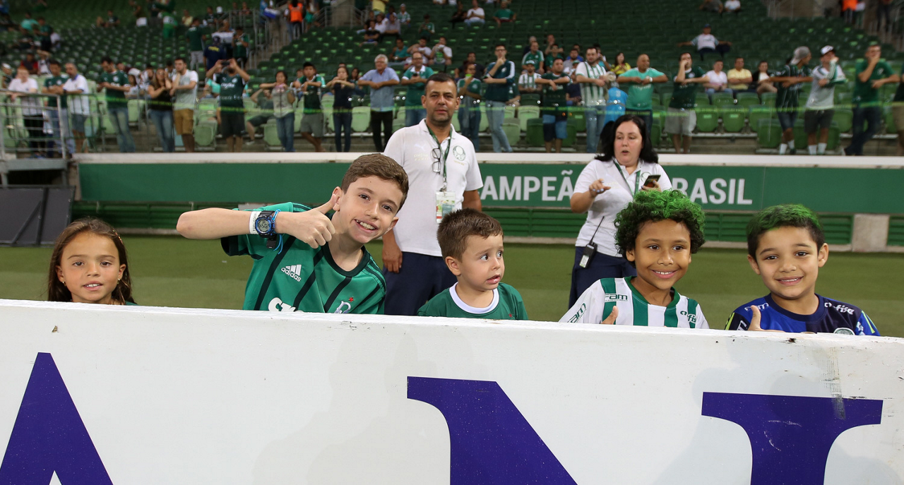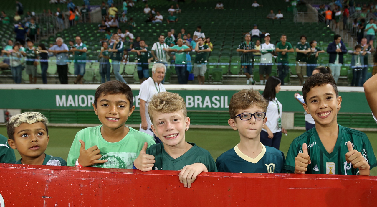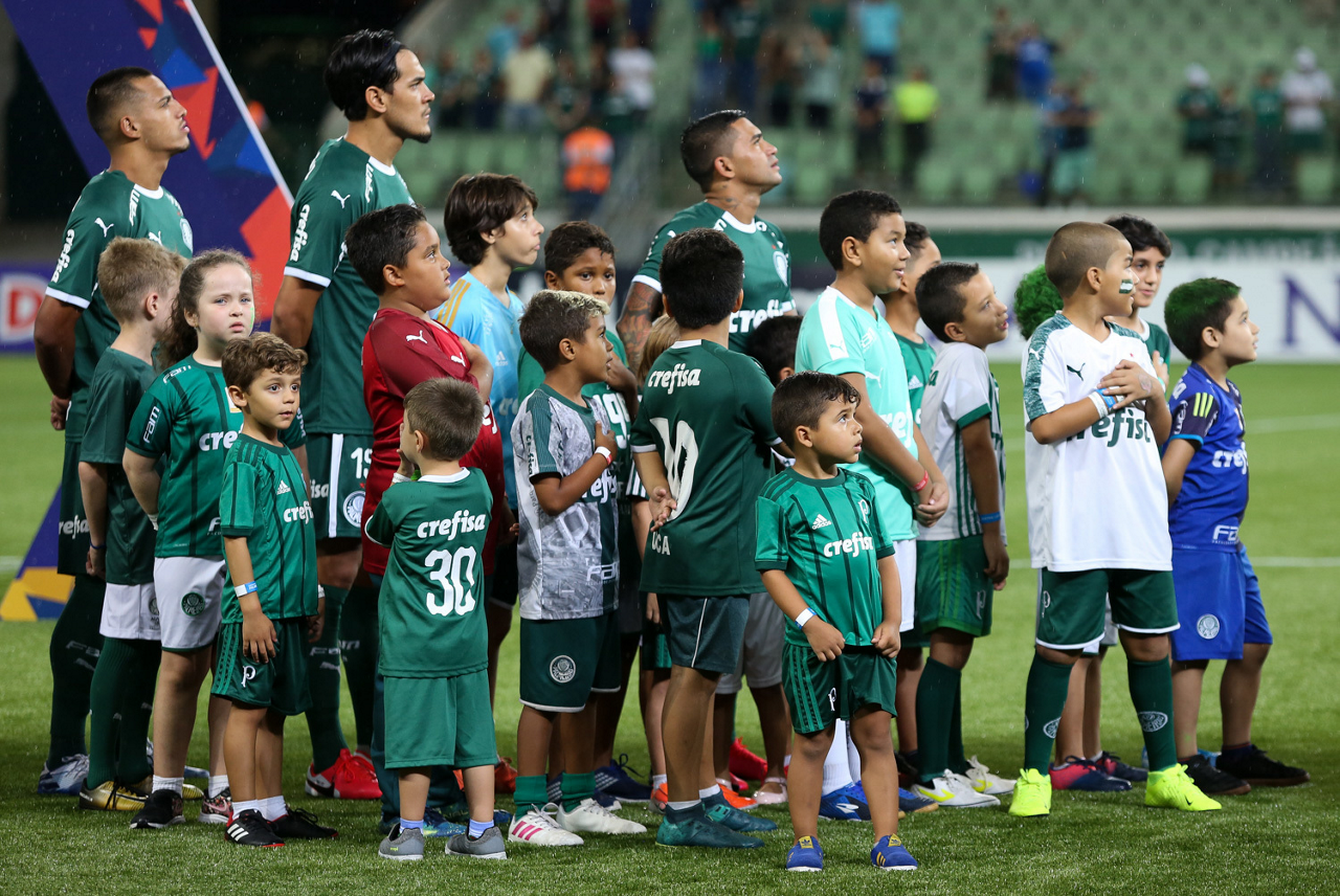 Crianças em campo antes do início do jogo entre Palmeiras e Guaranil, no Allianz Parque, em São Paulo. (Foto: Fabio Menotti)