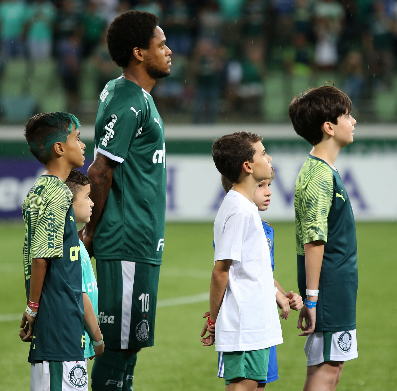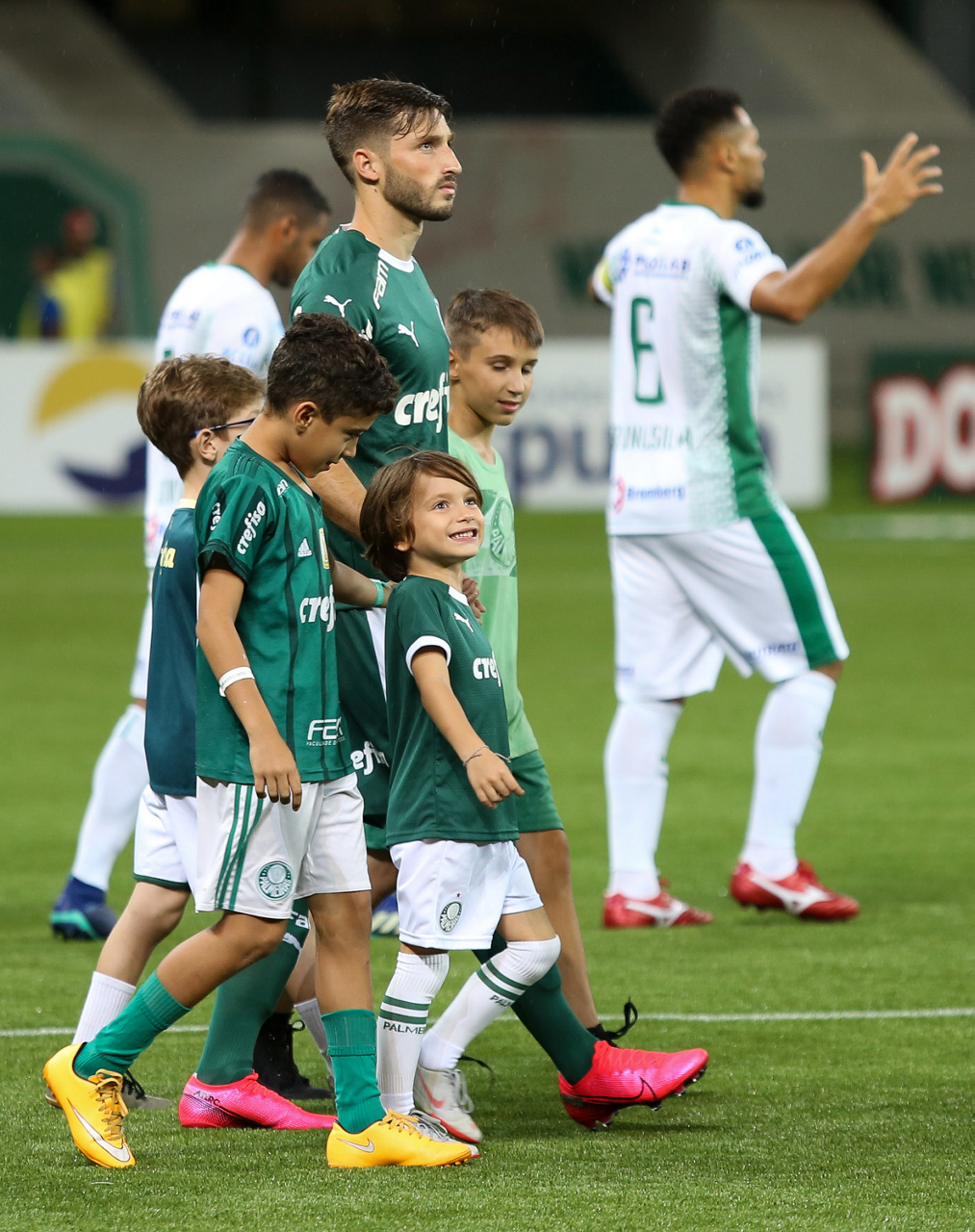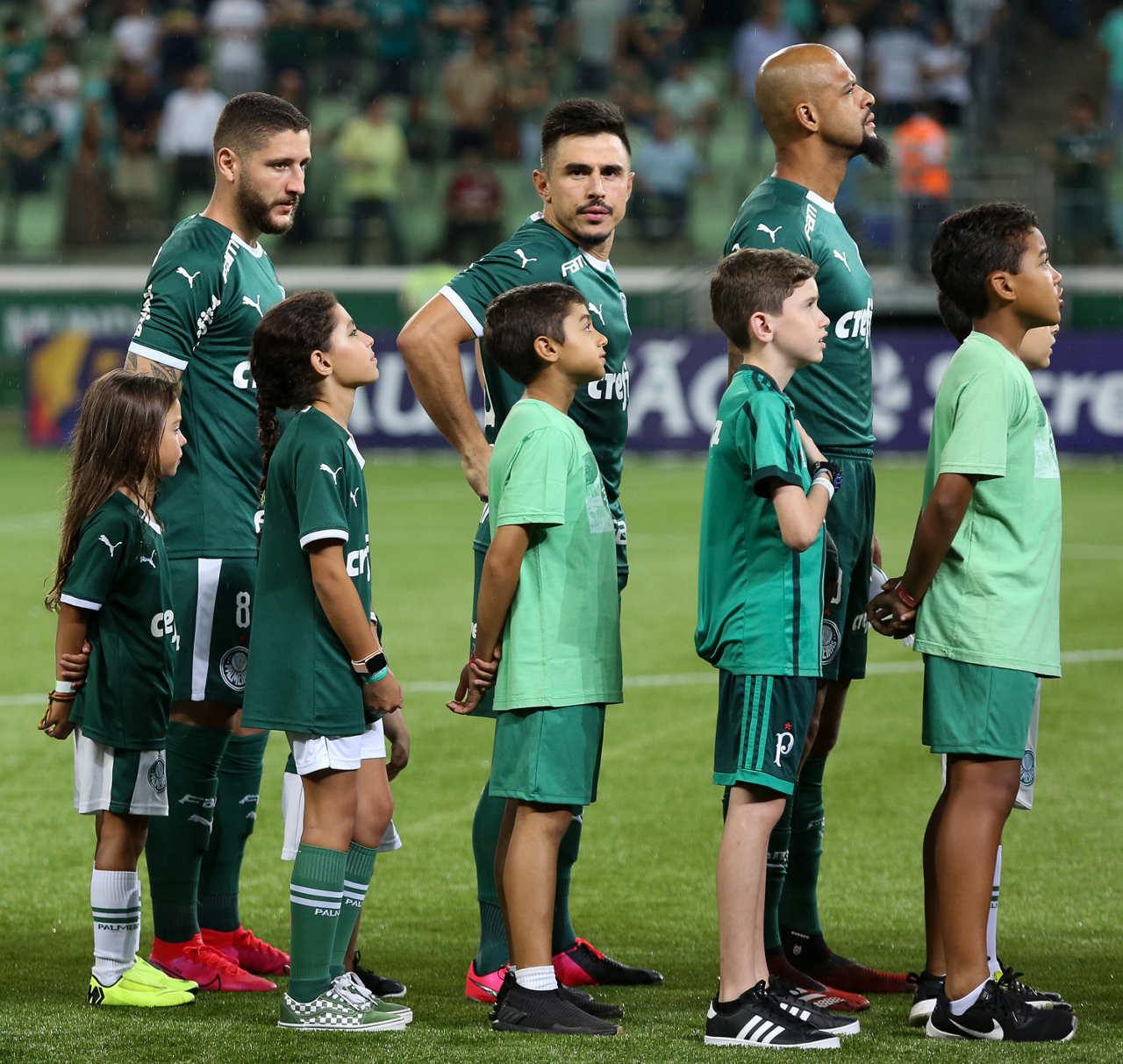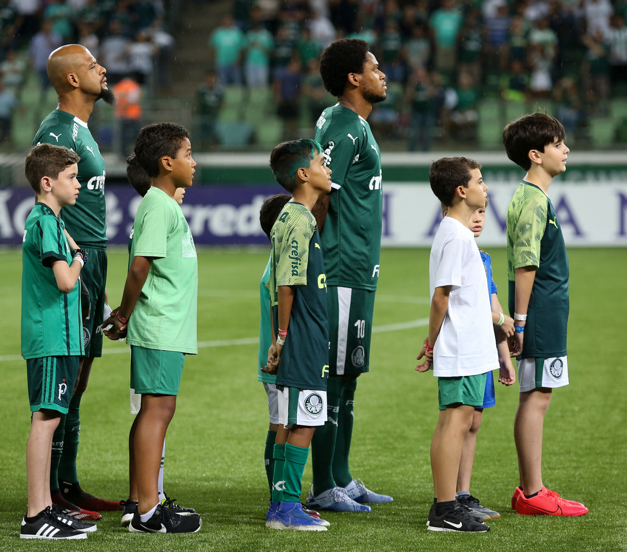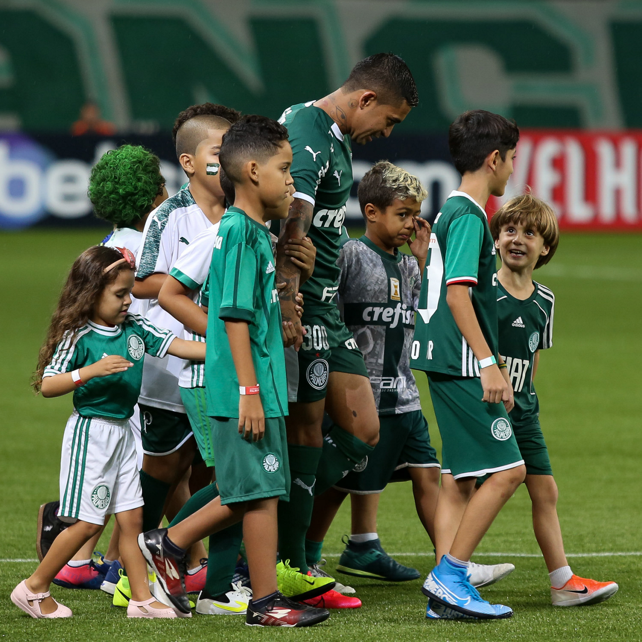 Crianças em campo antes do início do jogo entre Palmeiras e Guaranil, no Allianz Parque, em São Paulo. (Foto: Fabio Menotti)