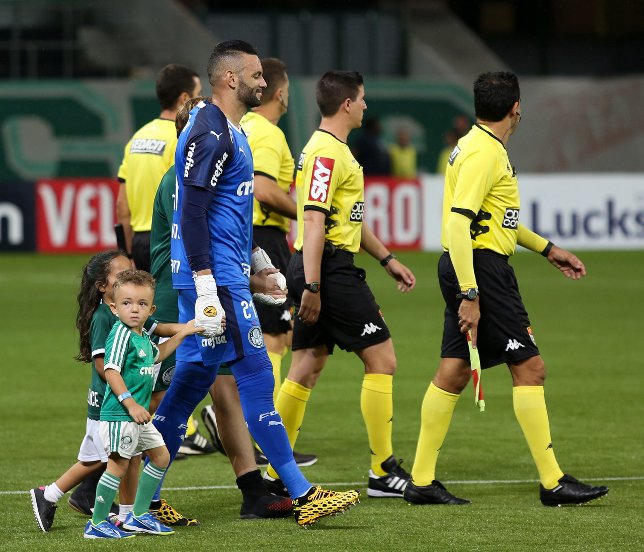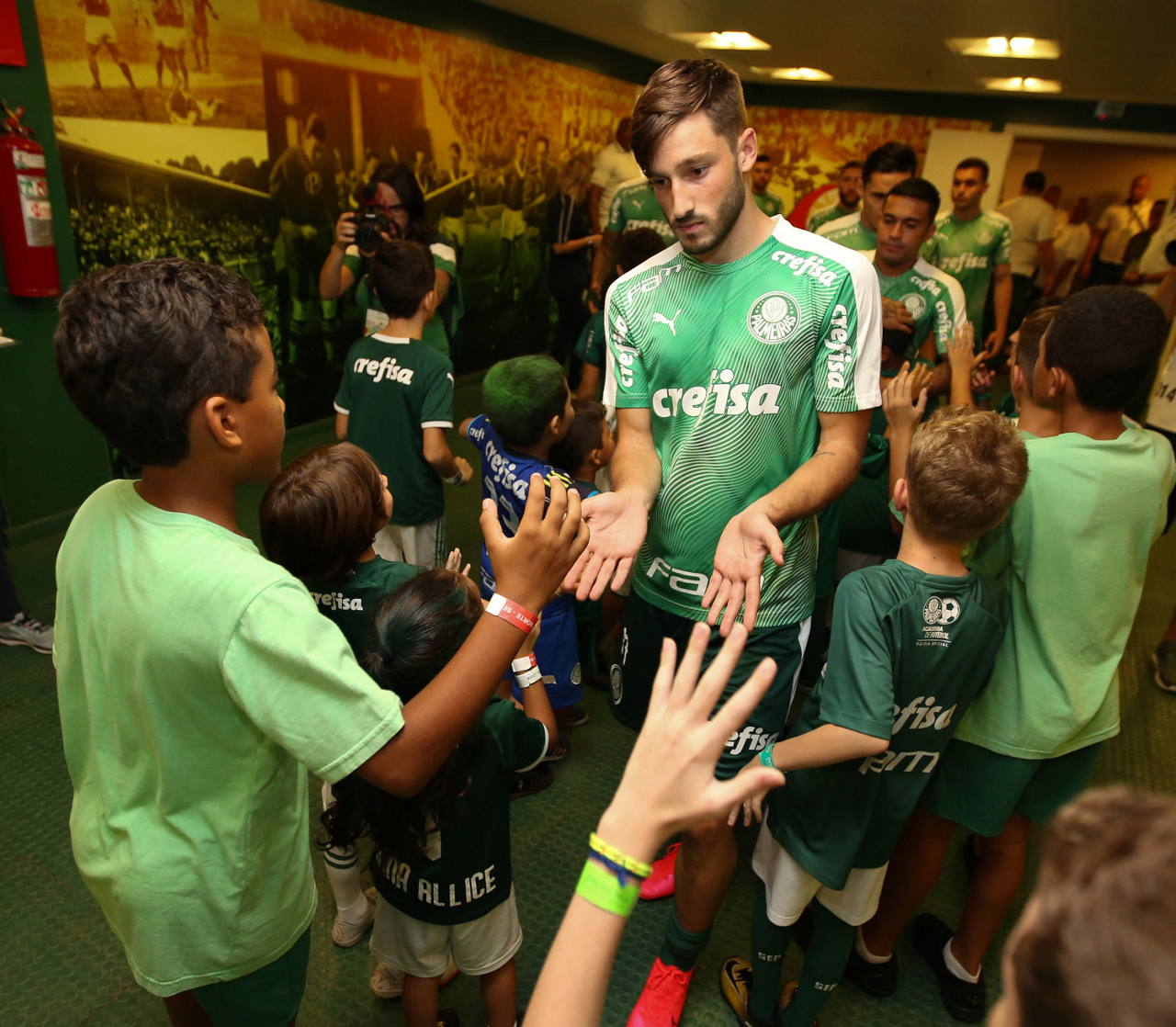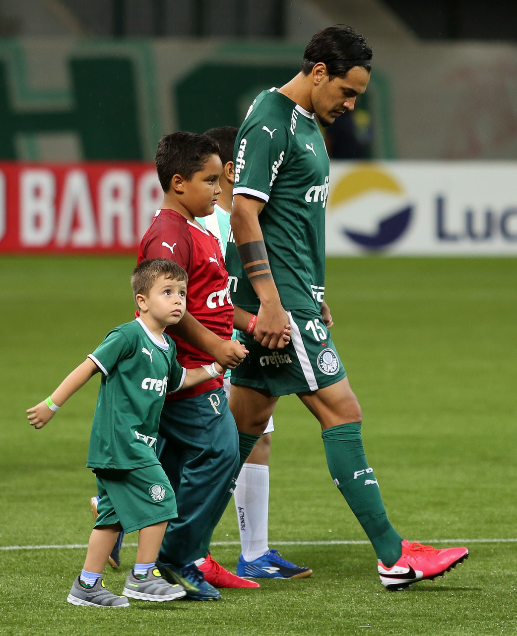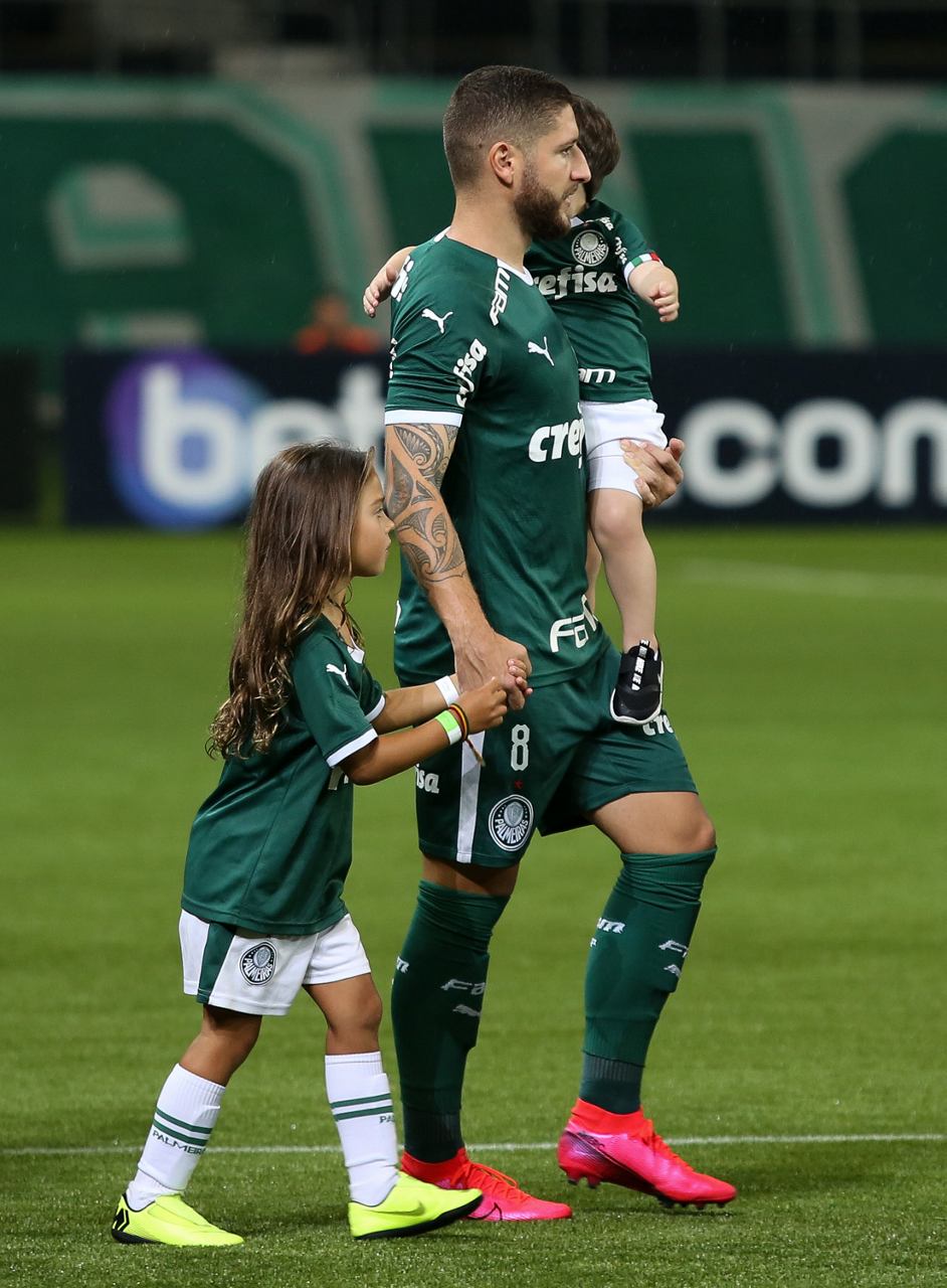 Crianças em campo antes do início do jogo entre Palmeiras e Guaranil, no Allianz Parque, em São Paulo. (Foto: Fabio Menotti)
