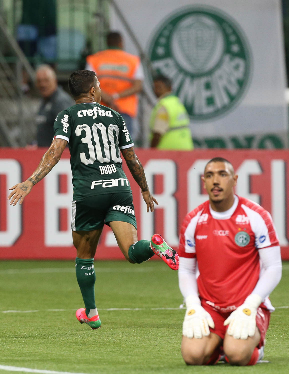 O jogador Dudu, da SE Palmeiras, comemora seu gol contra a equipe do Guarani FC, durante partida válida pela sétima rodada, do Campeonato Paulista, Série A1, na arena Allianz Parque. (Foto: Cesar Greco)