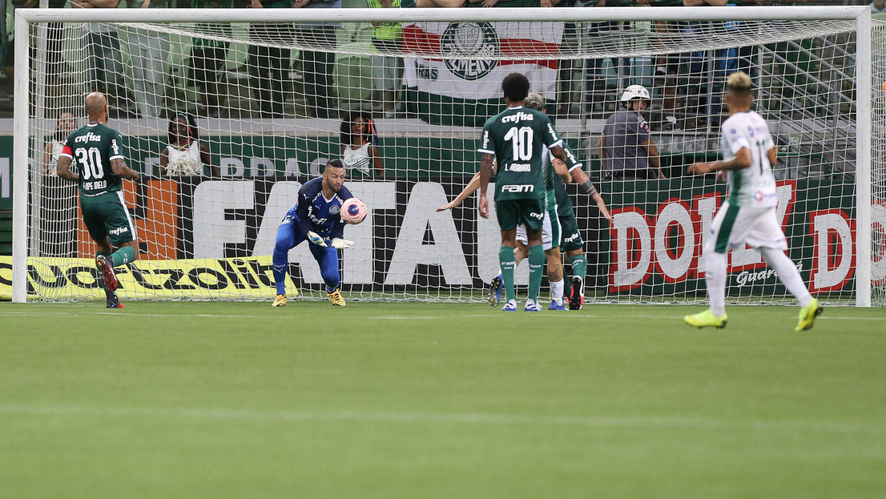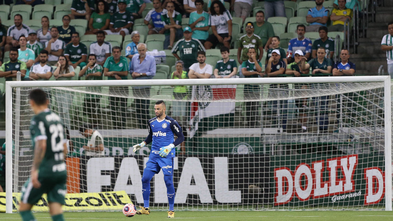 O goleiro Weverton, da SE Palmeiras, em jogo contra a equipe do Guarani FC, durante partida válida pela sétima rodada, do Campeonato Paulista, Série A1, na arena Allianz Parque. (Foto: Cesar Greco)