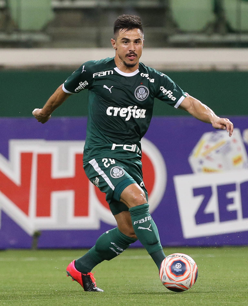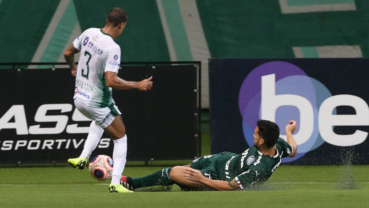 O jogador Matías Viña, da SE Palmeiras, em jogo contra a equipe do Guarani FC, durante partida válida pela sétima rodada, do Campeonato Paulista, Série A1, na arena Allianz Parque. (Foto: Cesar Greco)
