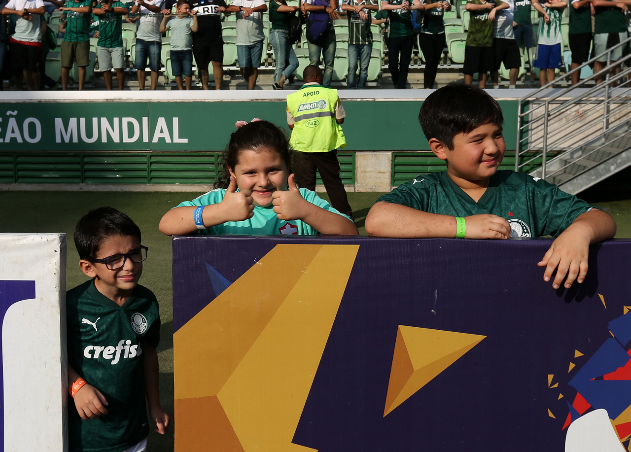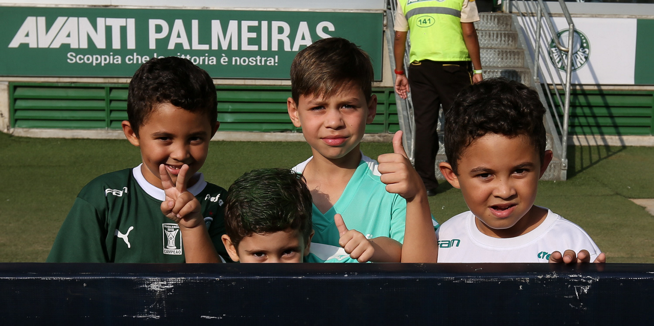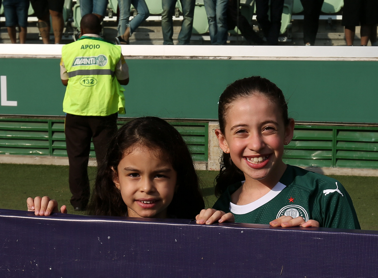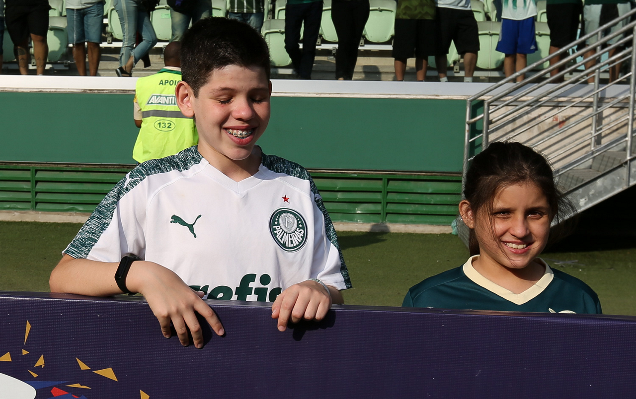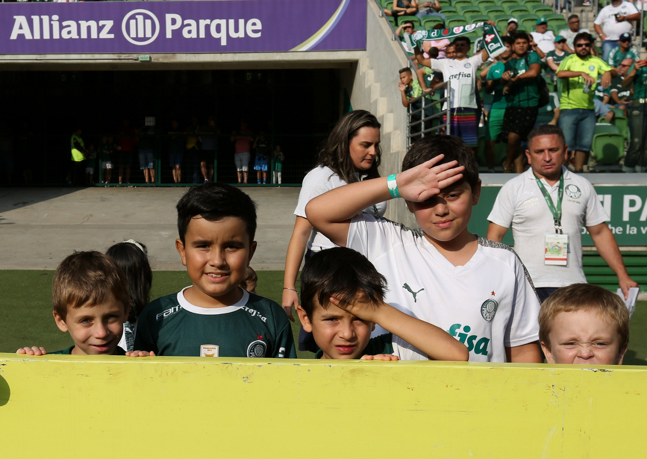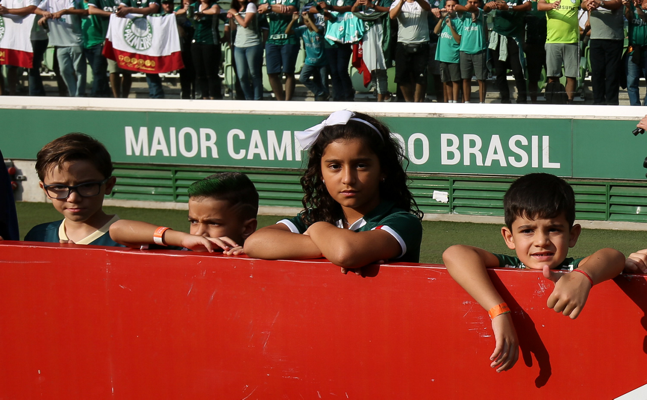 Crianças em campo antes do início do jogo entre Palmeiras e Ferroviária, no Allianz Parque, em São Paulo. (Foto: Fabio Menotti)