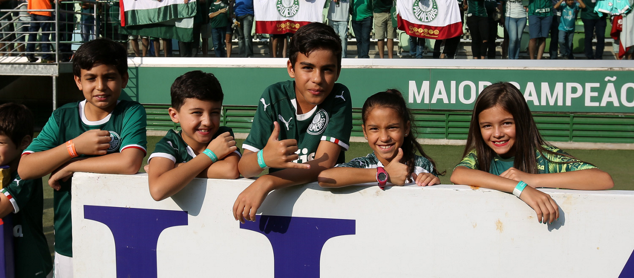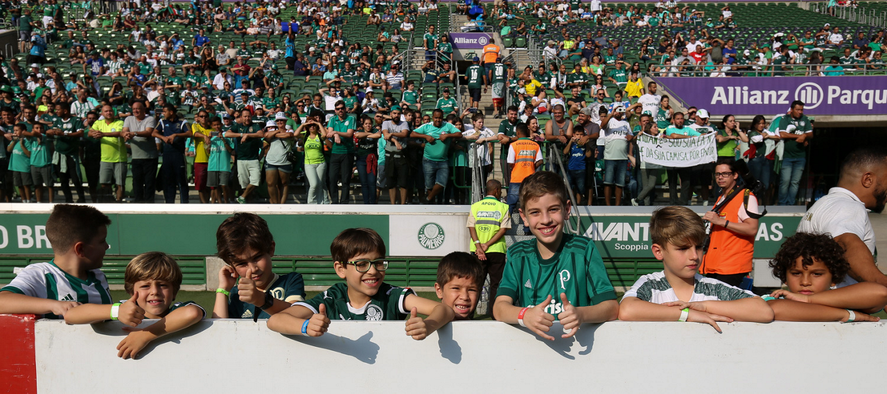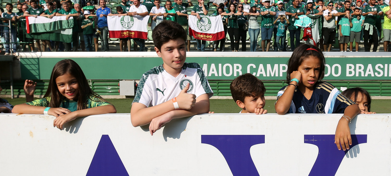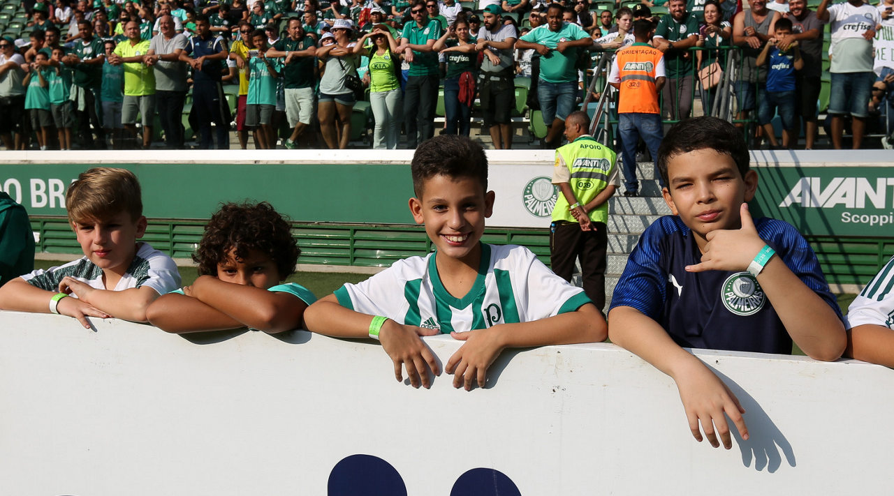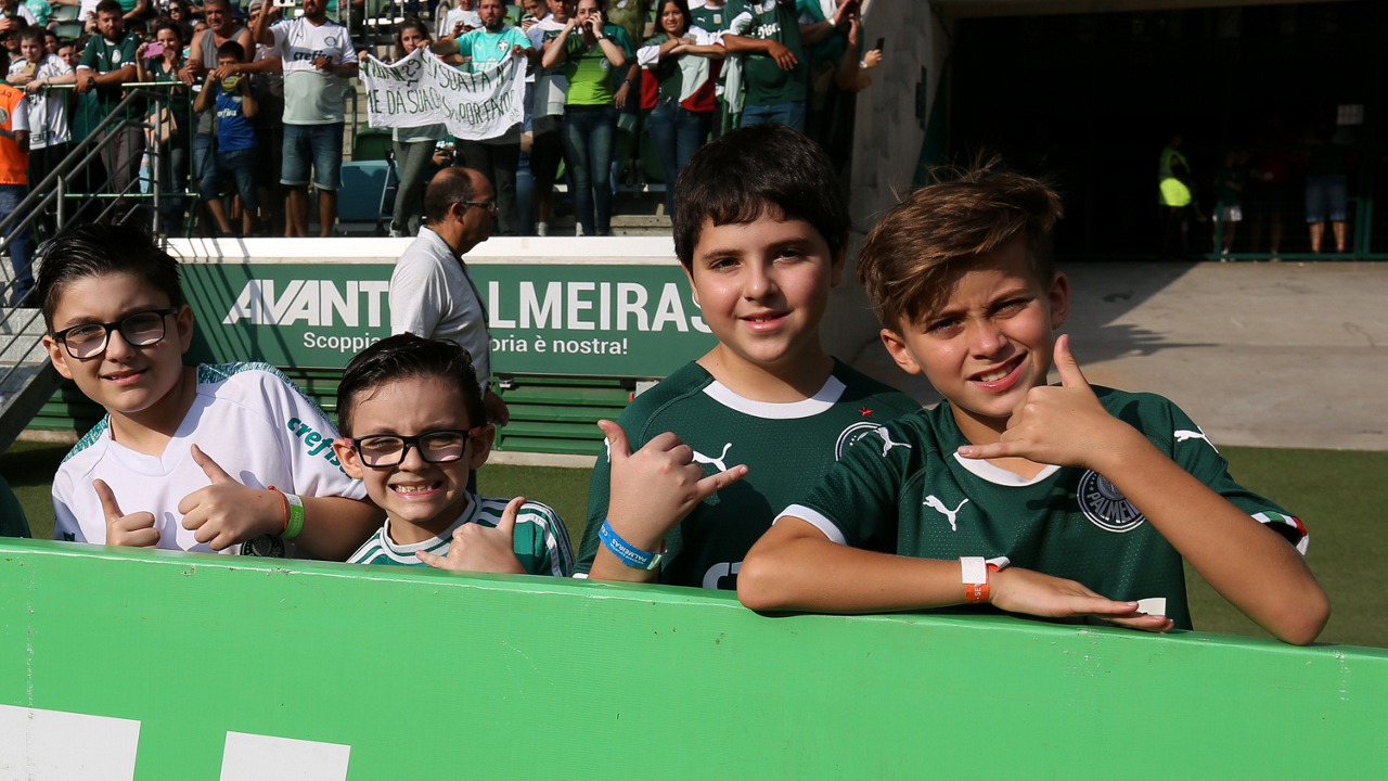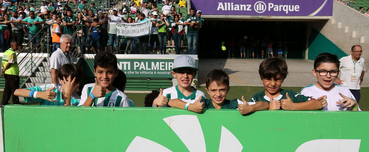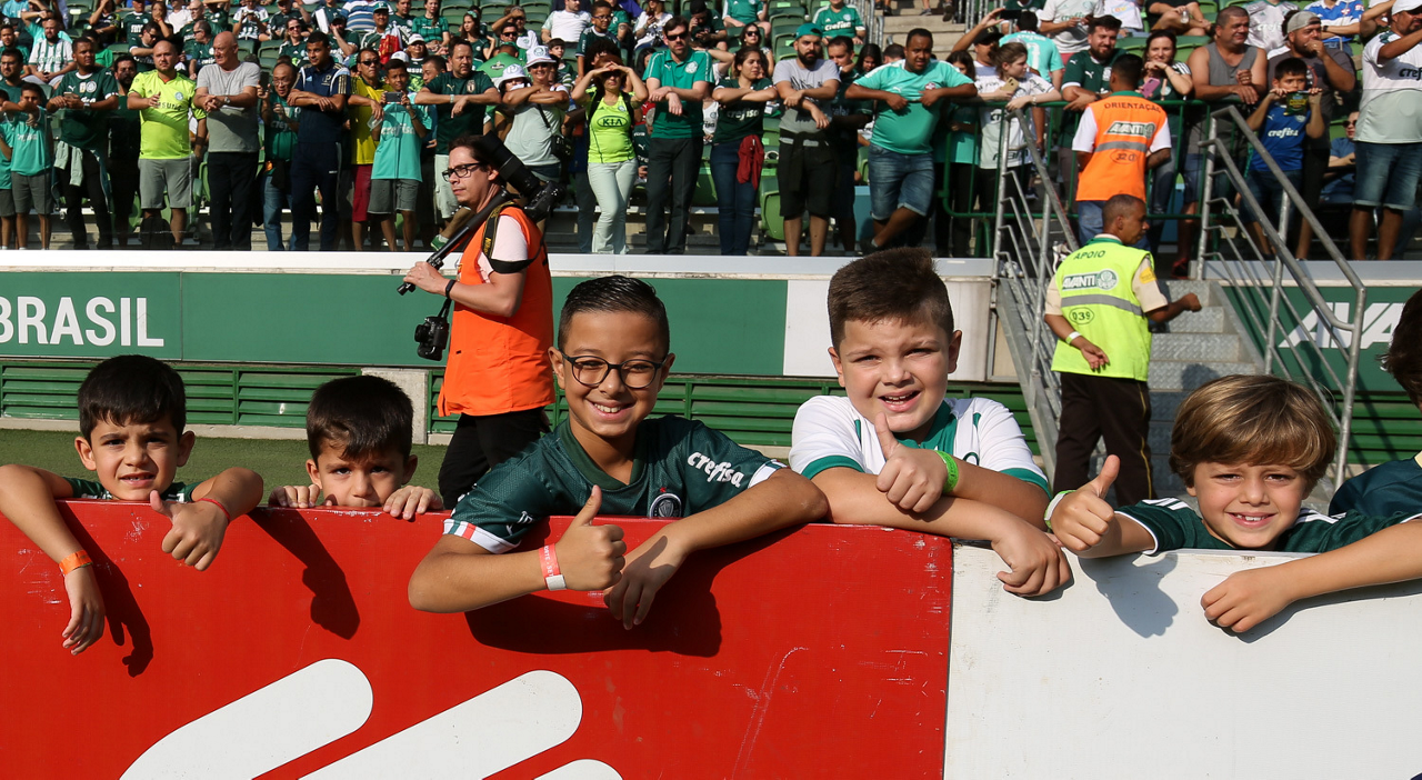 Crianças em campo antes do início do jogo entre Palmeiras e Ferroviária, no Allianz Parque, em São Paulo. (Foto: Fabio Menotti)