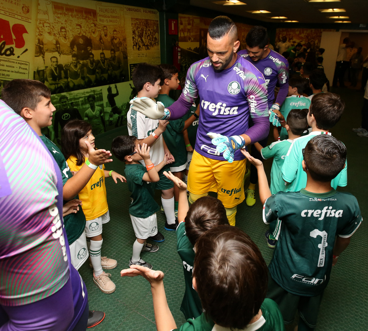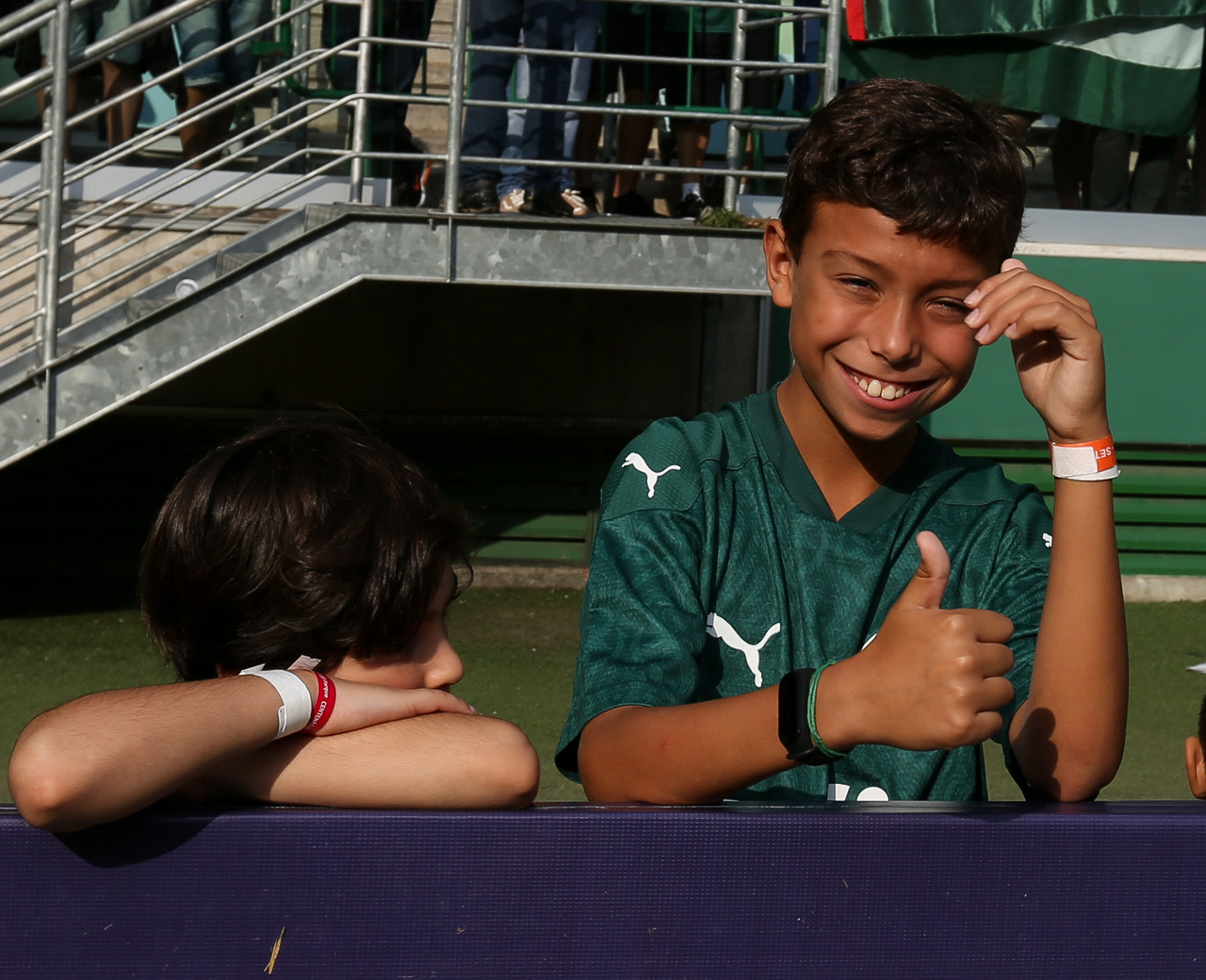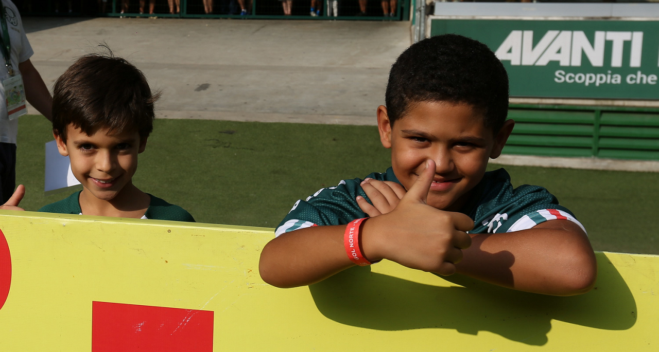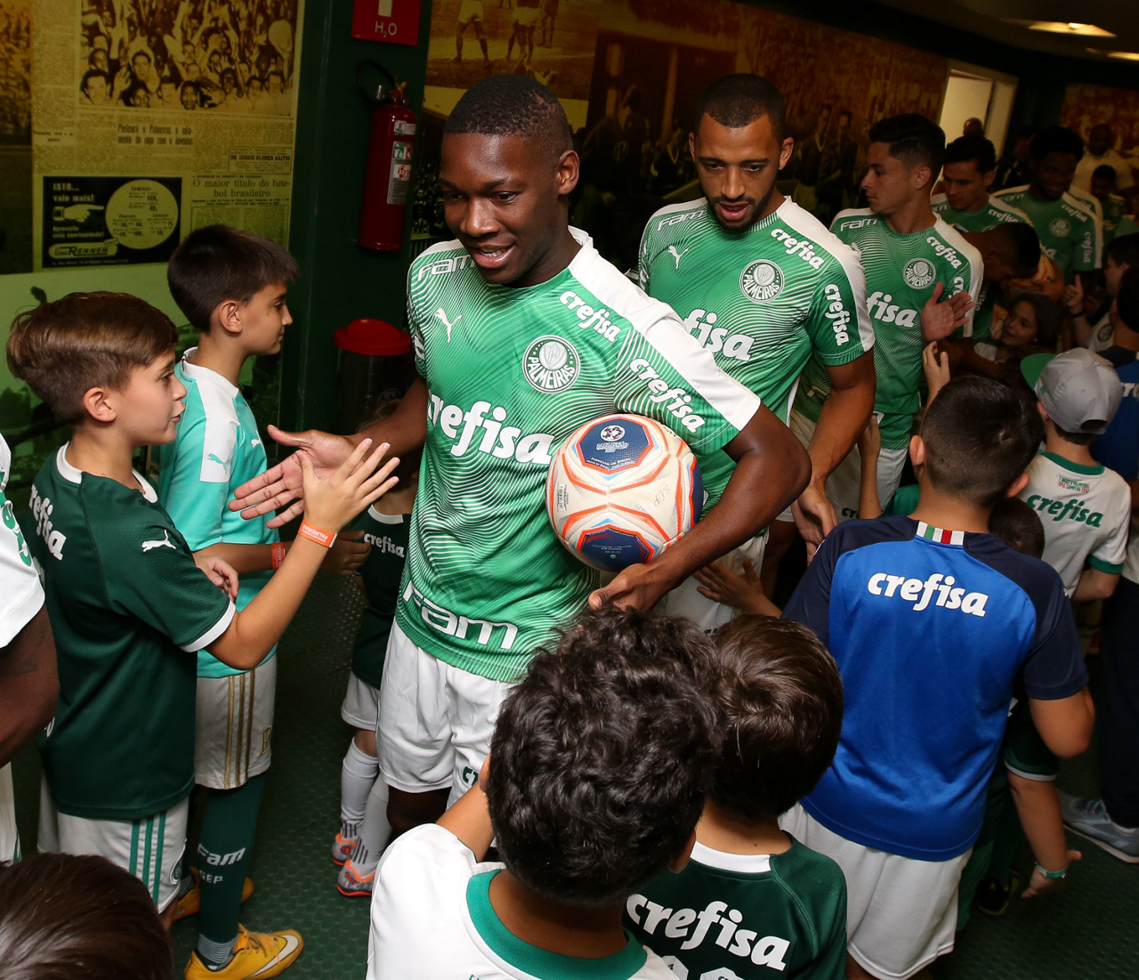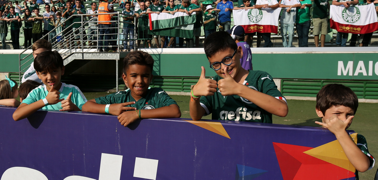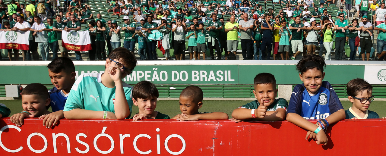 Crianças em campo antes do início do jogo entre Palmeiras e Ferroviária, no Allianz Parque, em São Paulo. (Foto: Fabio Menotti)