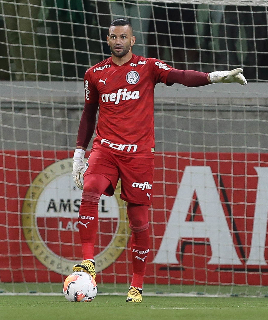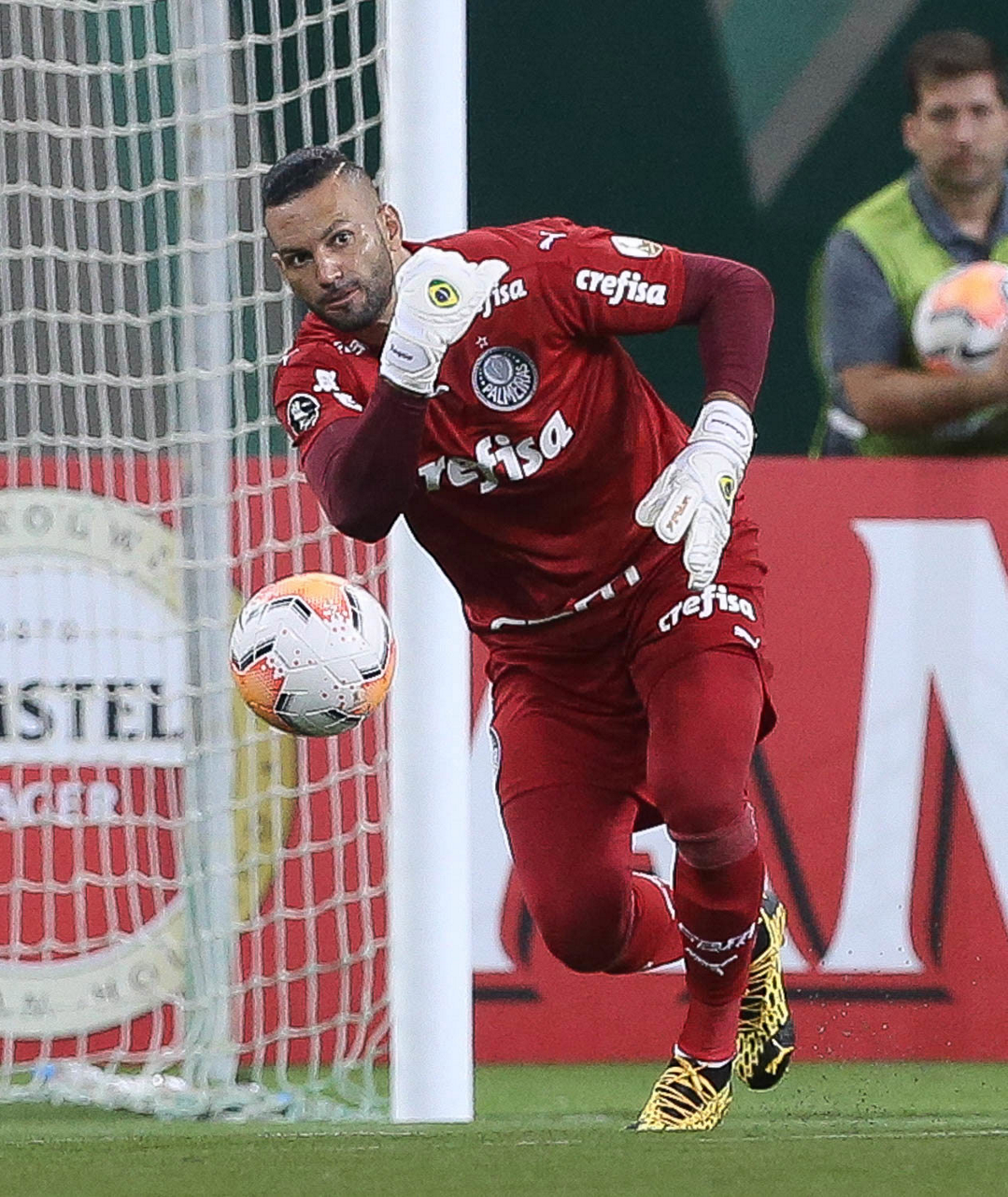 O goleiro Weverton, da SE Palmeiras, em jogo contra a equipe do C Guaraní, durante partida válida pela segunda rodada, fase de grupos, da Copa Conmebol Libertadores, na arena Allianz Parque. (Foto: Cesar Greco)