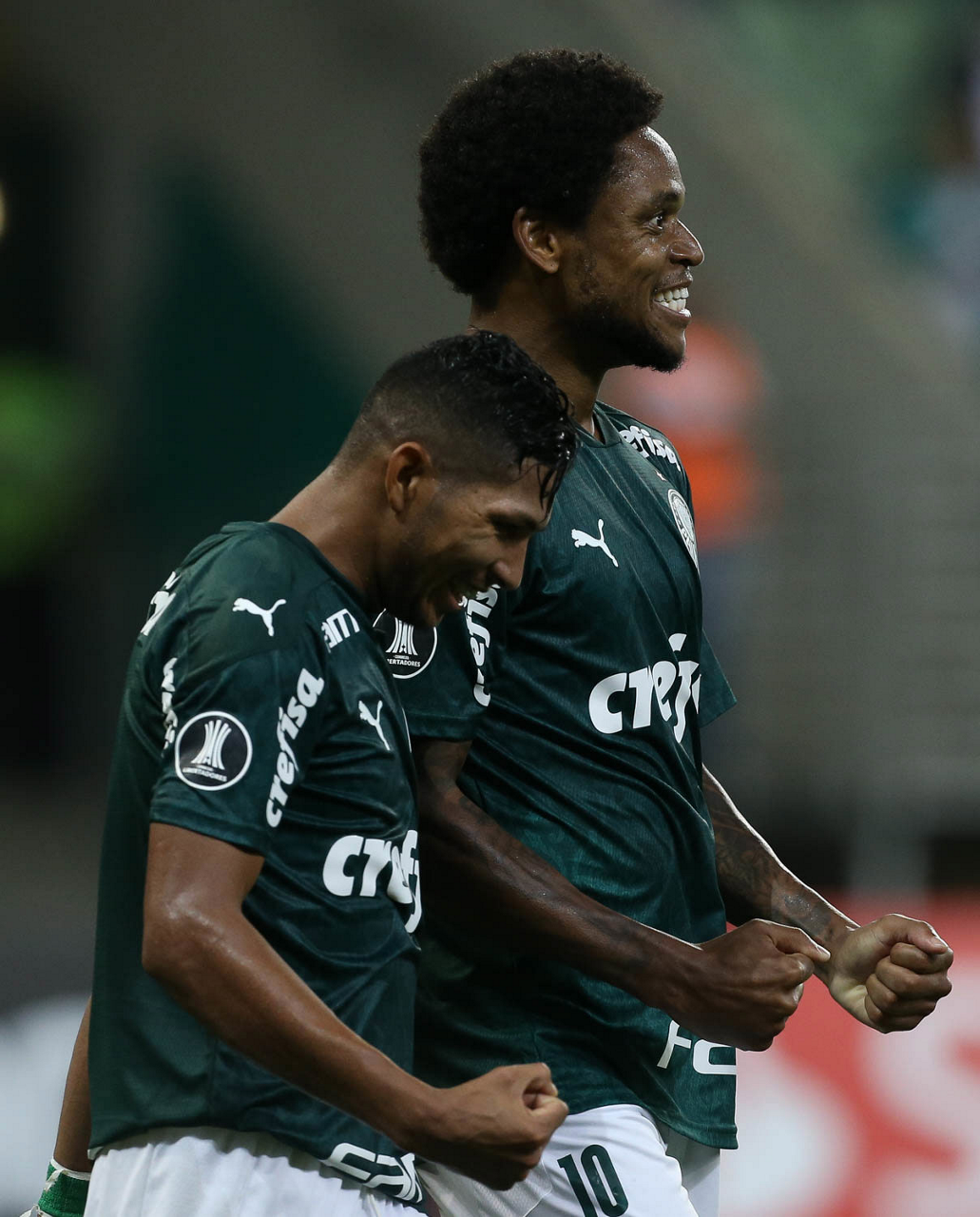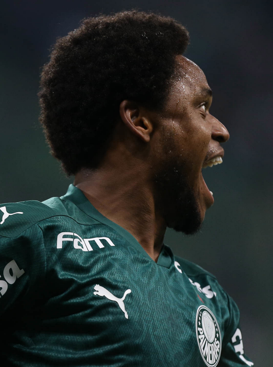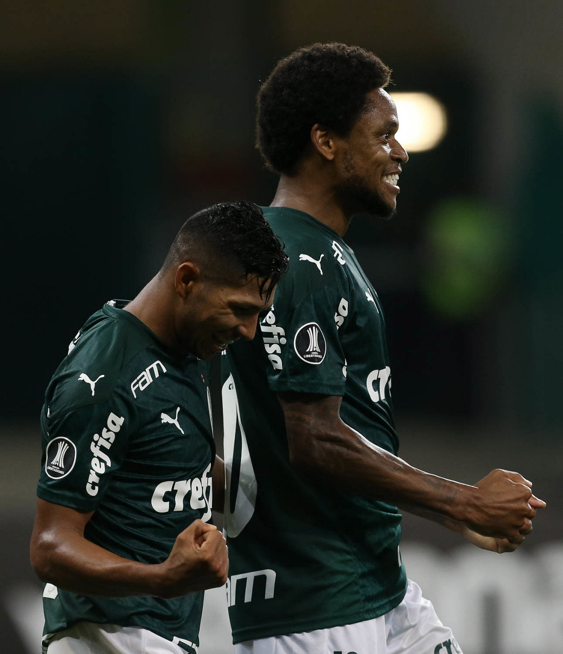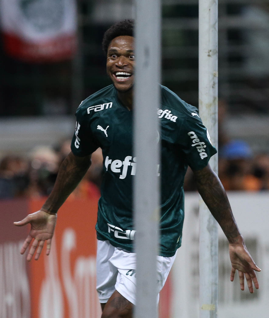 O jogador Luiz Adriano, da SE Palmeiras, comemora seu gol contra a equipe do C Guaraní, durante partida válida pela segunda rodada, fase de grupos, da Copa Conmebol Libertadores, na arena Allianz Parque. (Foto: Cesar Greco)