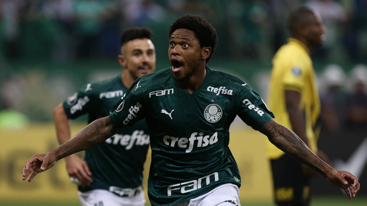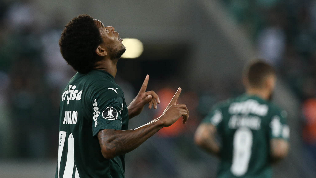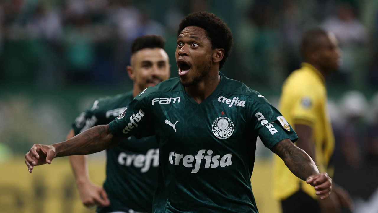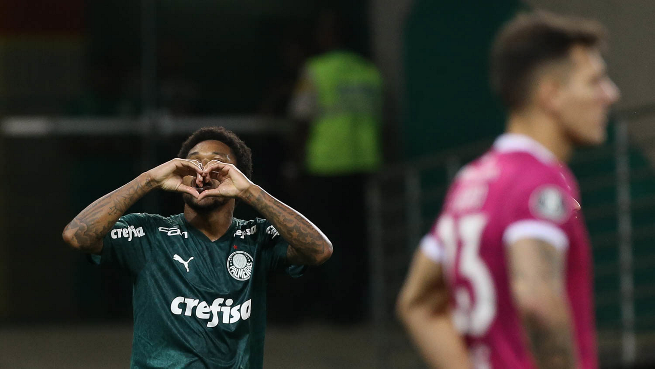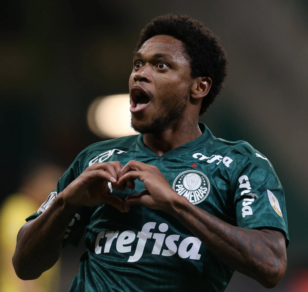 O jogador Luiz Adriano, da SE Palmeiras, comemora seu gol contra a equipe do C Guaraní, durante partida válida pela segunda rodada, fase de grupos, da Copa Conmebol Libertadores, na arena Allianz Parque. (Foto: Cesar Greco)
