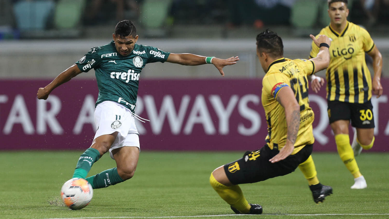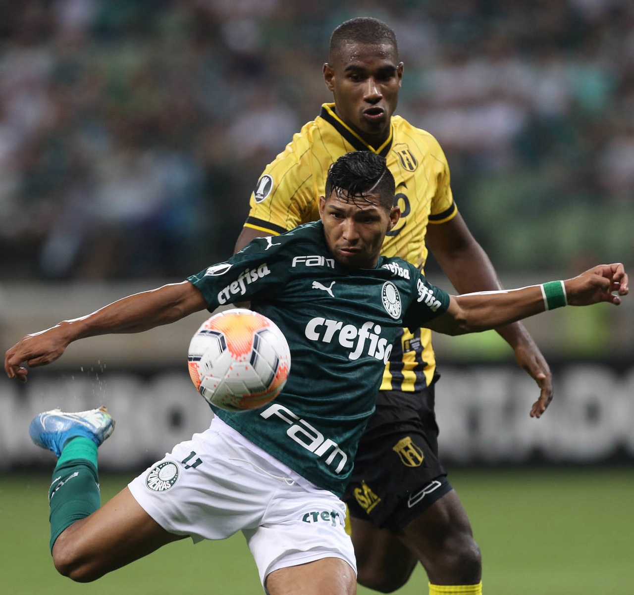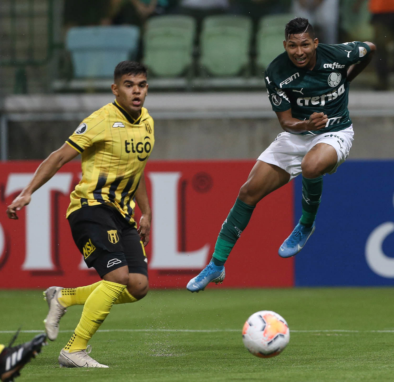 O jogador Rony, da SE Palmeiras, em jogo contra a equipe do C Guaraní, durante partida válida pela segunda rodada, fase de grupos, da Copa Conmebol Libertadores, na arena Allianz Parque. (Foto: Cesar Greco)