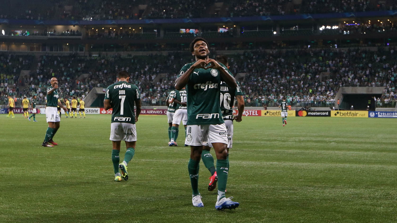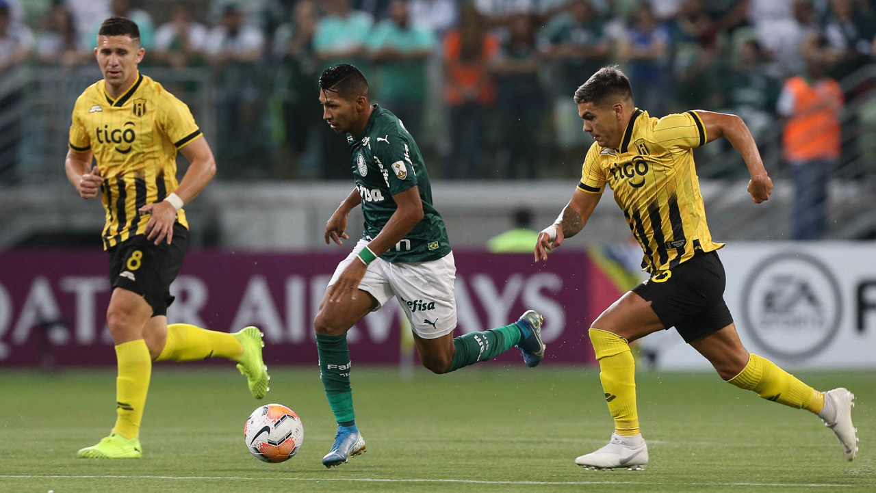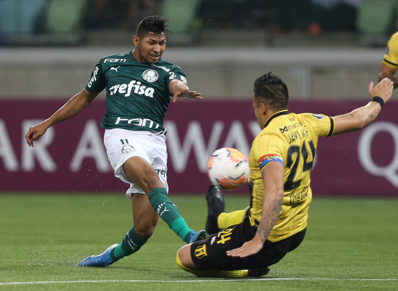 O jogador Rony, da SE Palmeiras, em jogo contra a equipe do C Guaraní, durante partida válida pela segunda rodada, fase de grupos, da Copa Conmebol Libertadores, na arena Allianz Parque. (Foto: Cesar Greco)