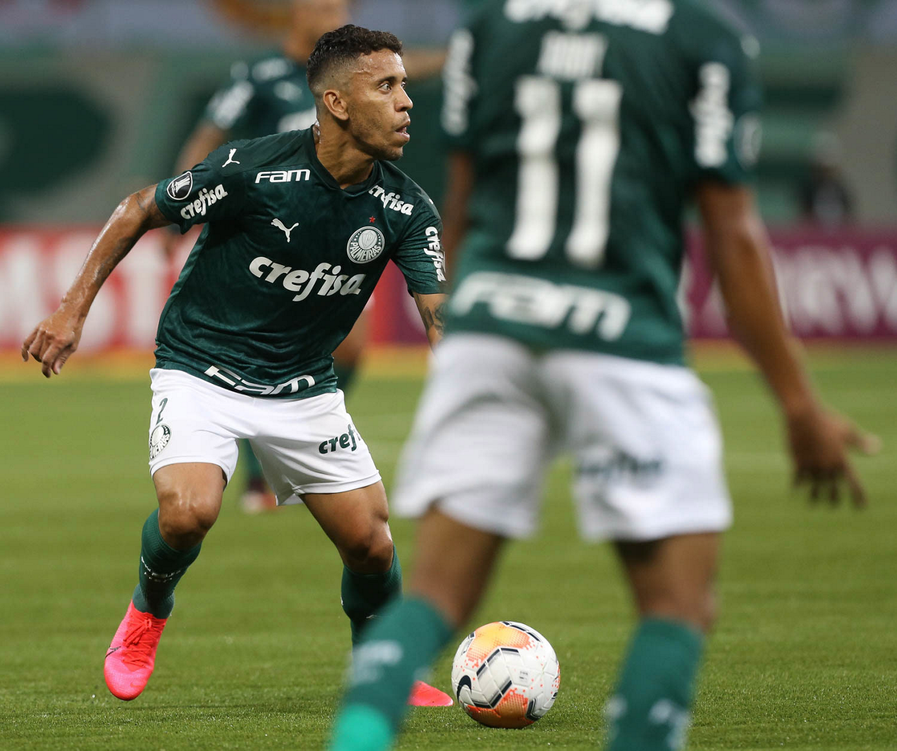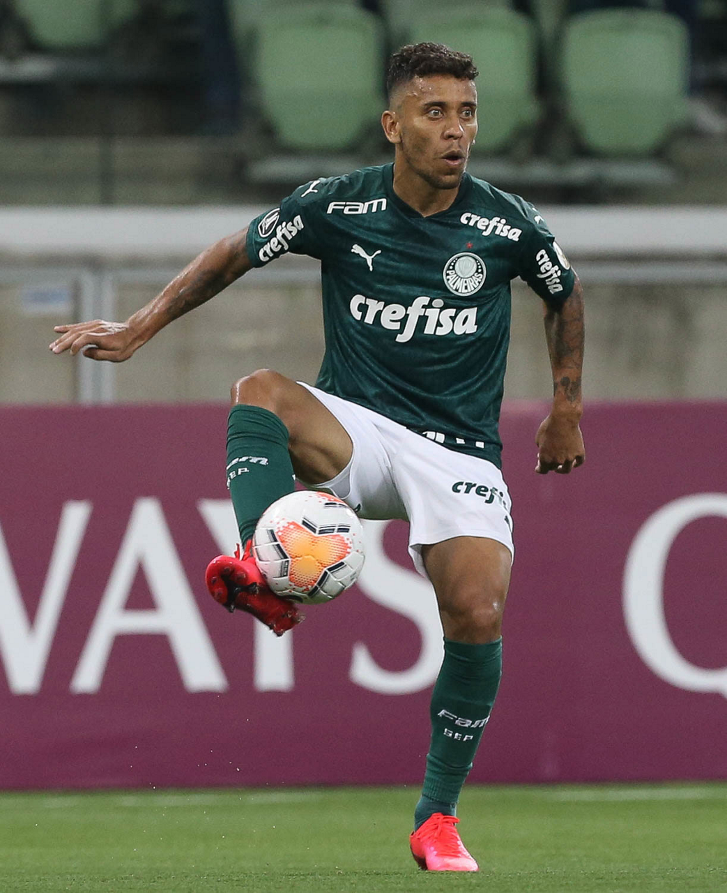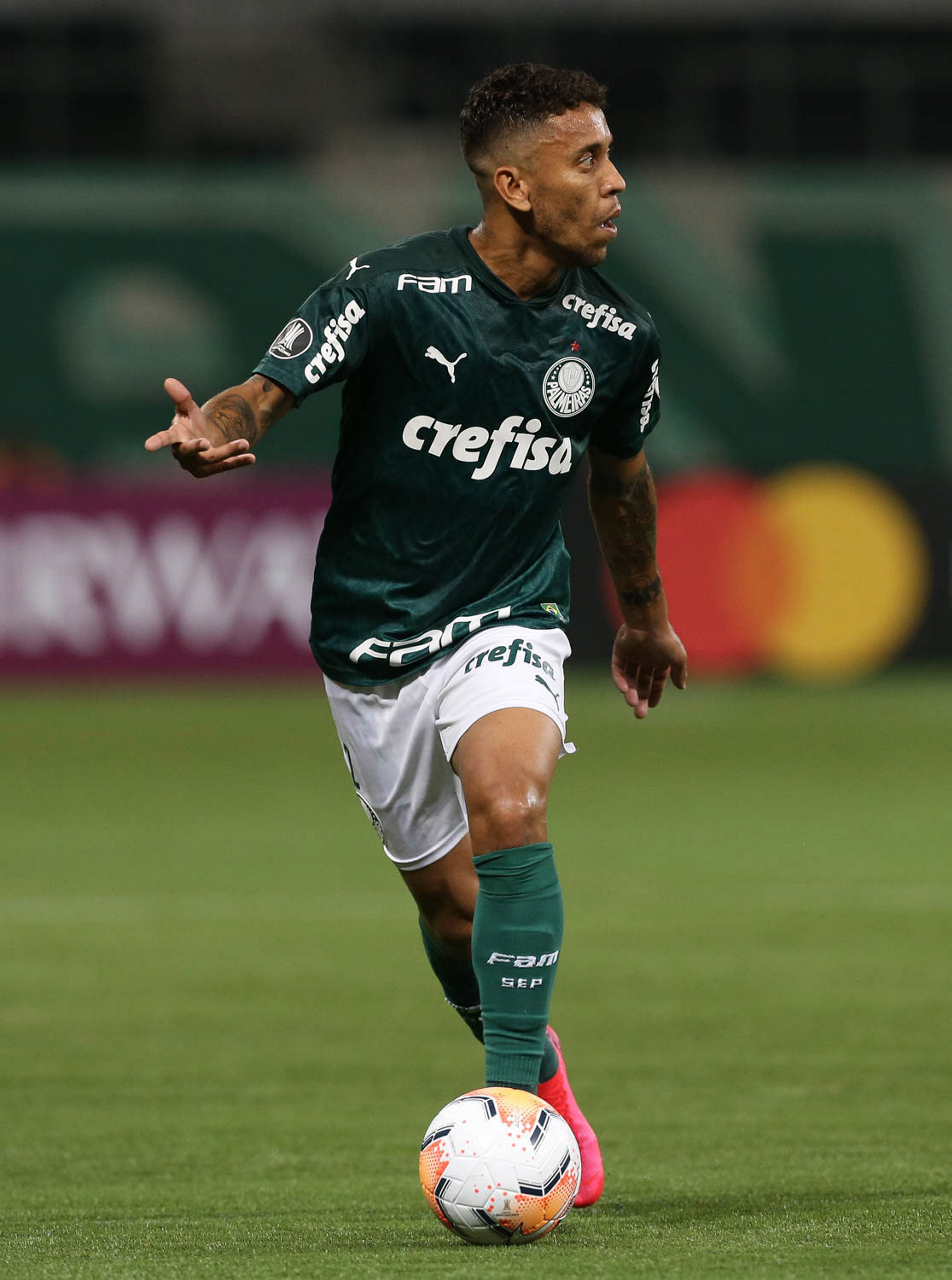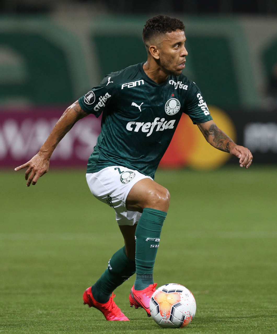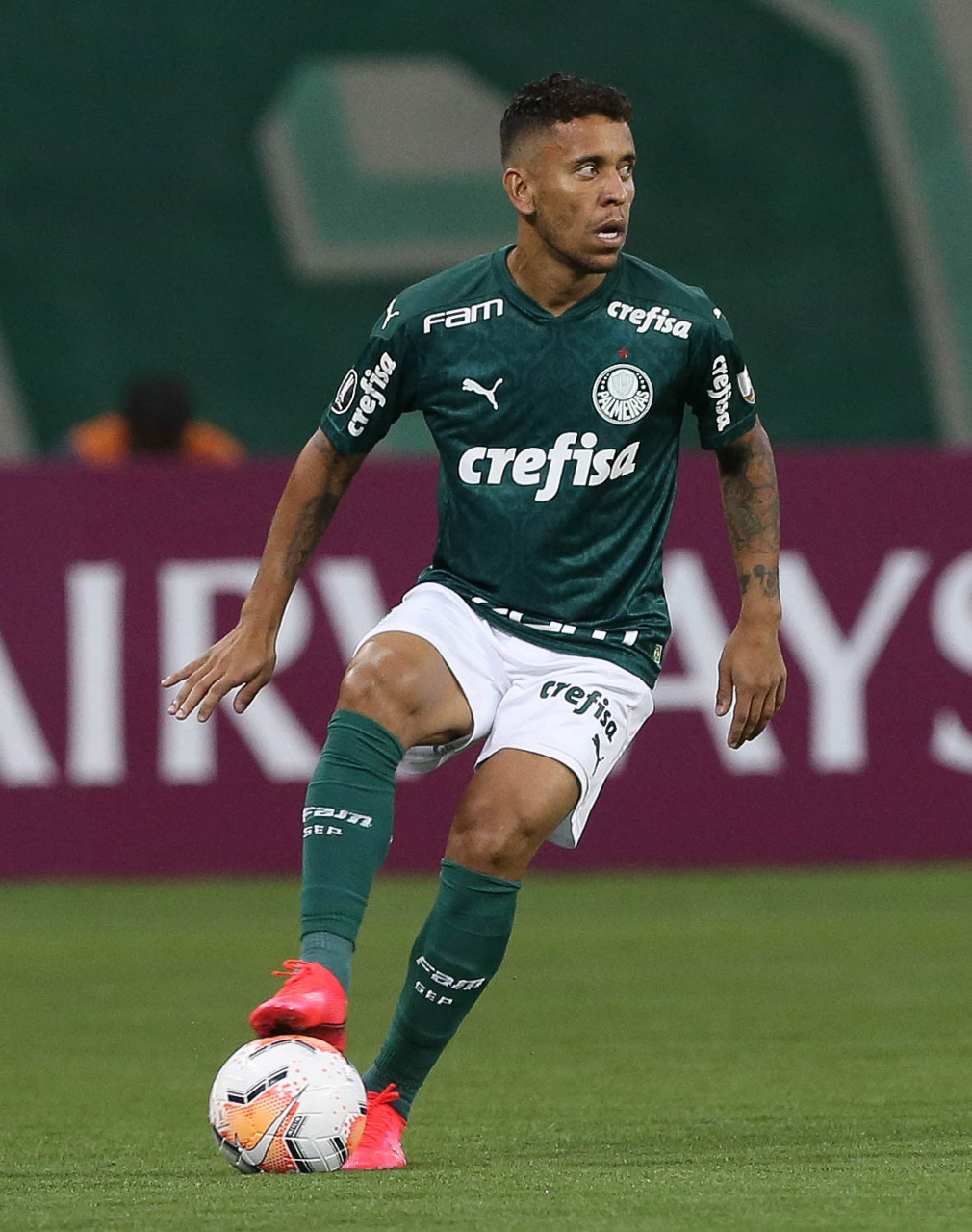 O jogador Marcos Rocha, da SE Palmeiras, em jogo contra a equipe do C Guaraní, durante partida válida pela segunda rodada, fase de grupos, da Copa Conmebol Libertadores, na arena Allianz Parque. (Foto: Cesar Greco)
