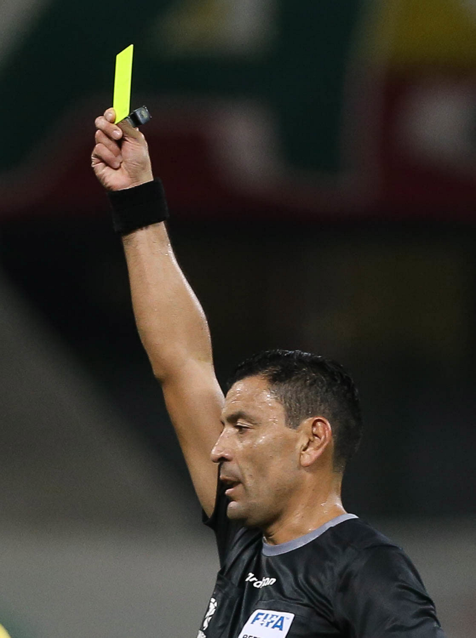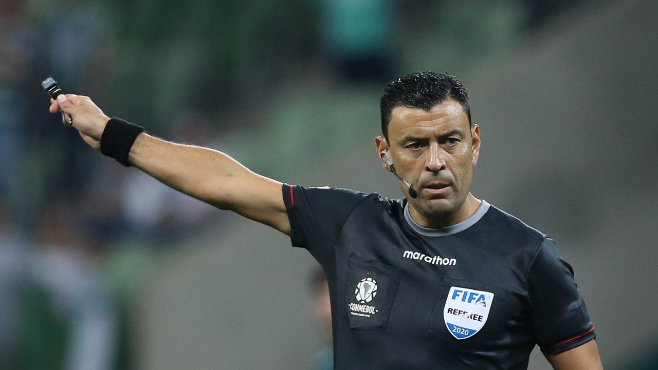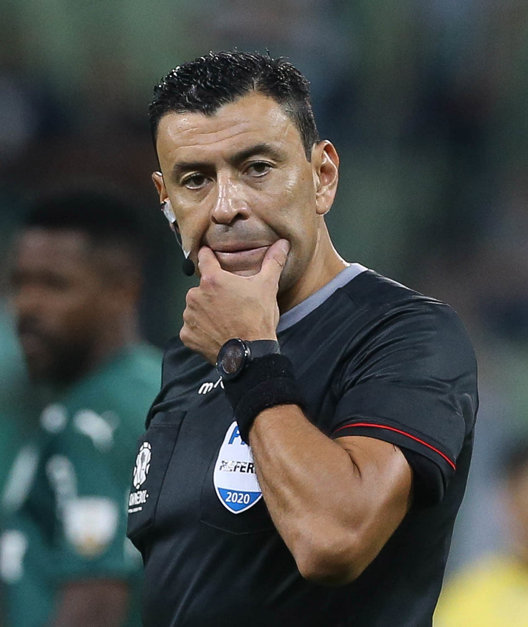 O árbitro Roberto Tobar, do jogo entre as equipes da SE Palmeiras e C Guaraní, durante partida válida pela segunda rodada, fase de grupos, da Copa Conmebol Libertadores, na arena Allianz Parque. (Foto: Cesar Greco)