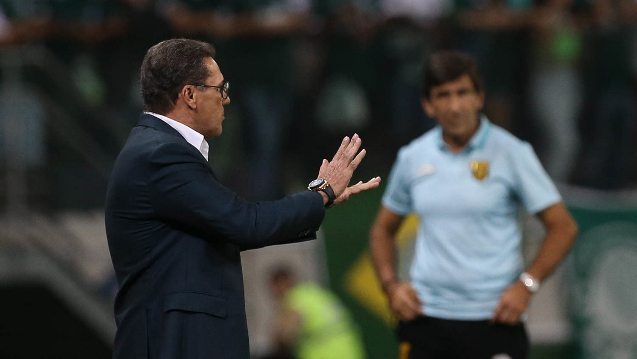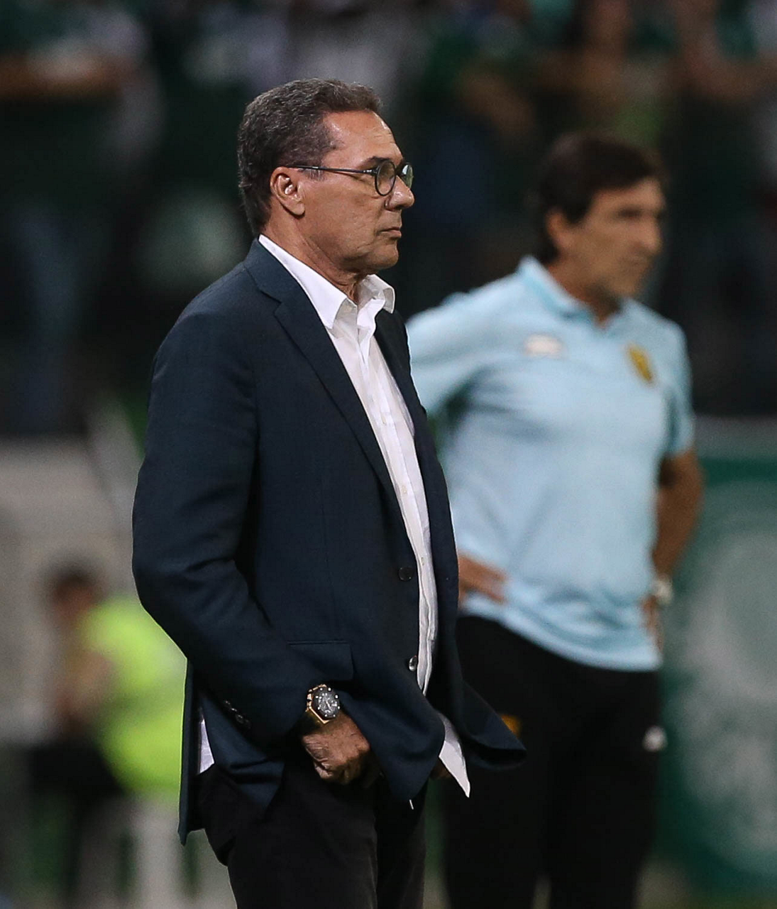 O técnico Vanderlei Luxemburgo, da SE Palmeiras, em jogo contra a equipe do C Guaraní, durante partida válida pela segunda rodada, fase de grupos, da Copa Conmebol Libertadores, na arena Allianz Parque. (Foto: Cesar Greco)