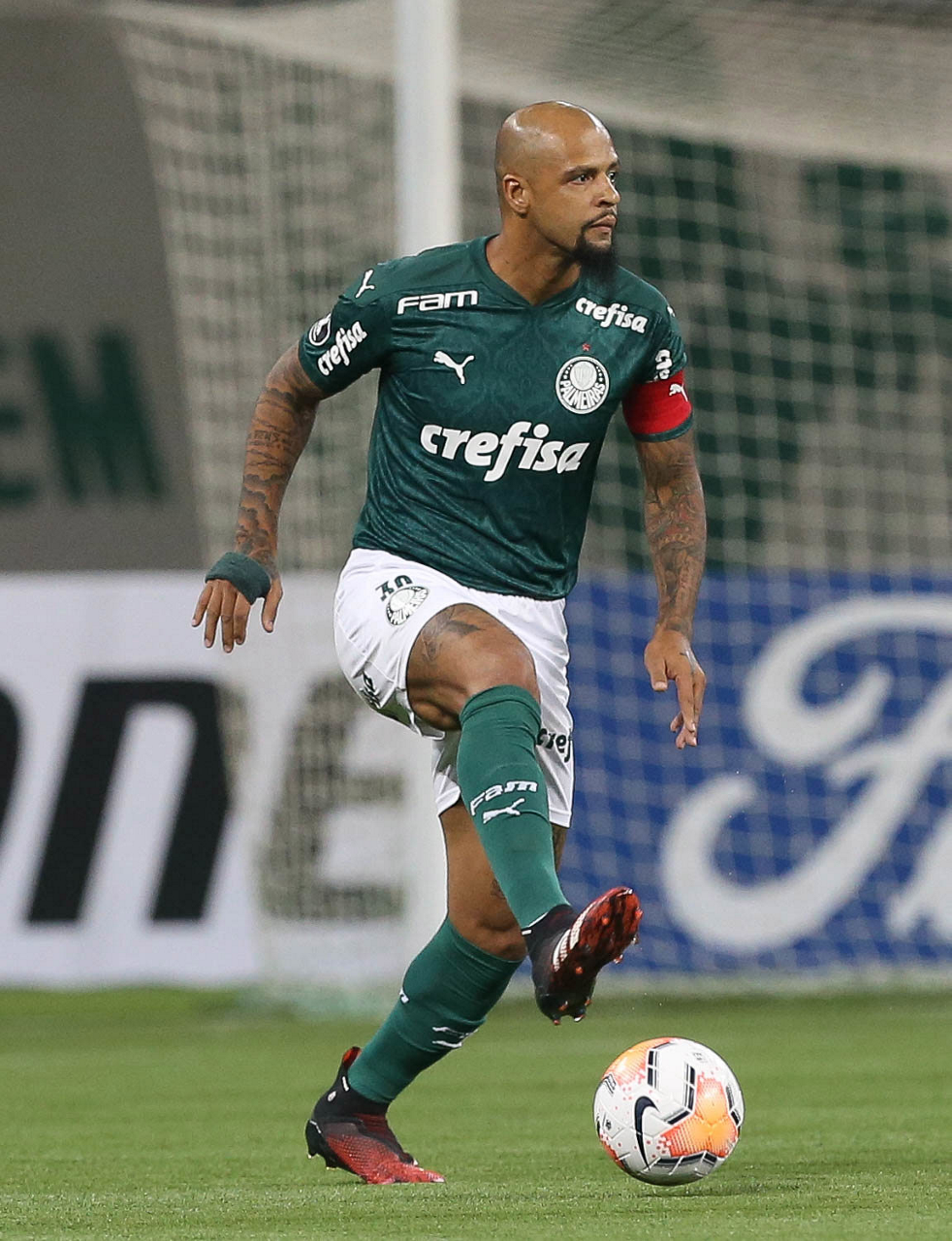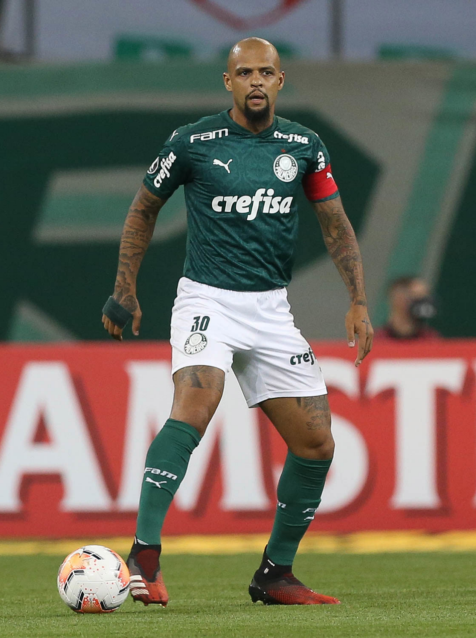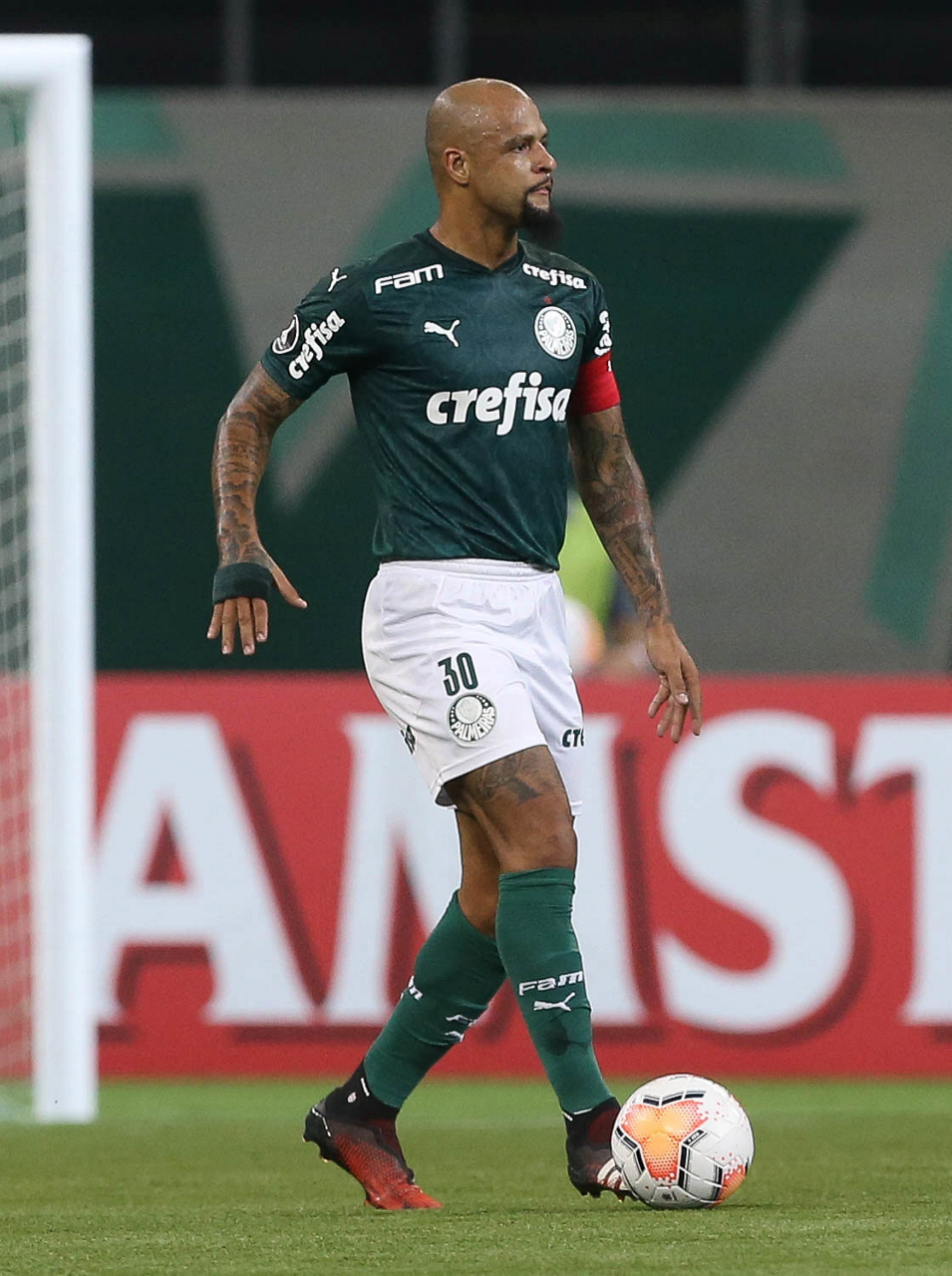 O jogador Felipe Melo, da SE Palmeiras, em jogo contra a equipe do C Guaraní, durante partida válida pela segunda rodada, fase de grupos, da Copa Conmebol Libertadores, na arena Allianz Parque. (Foto: Cesar Greco)