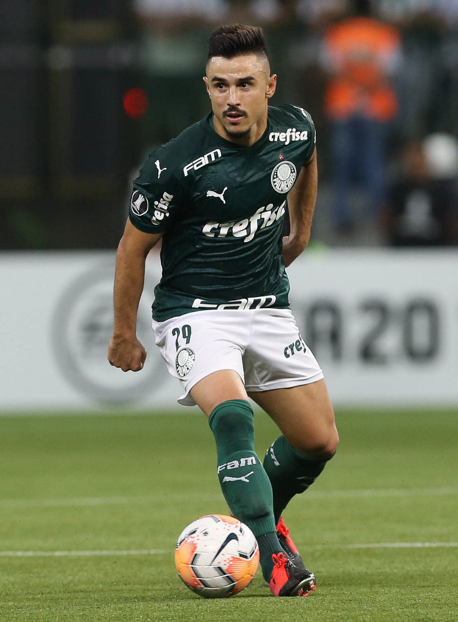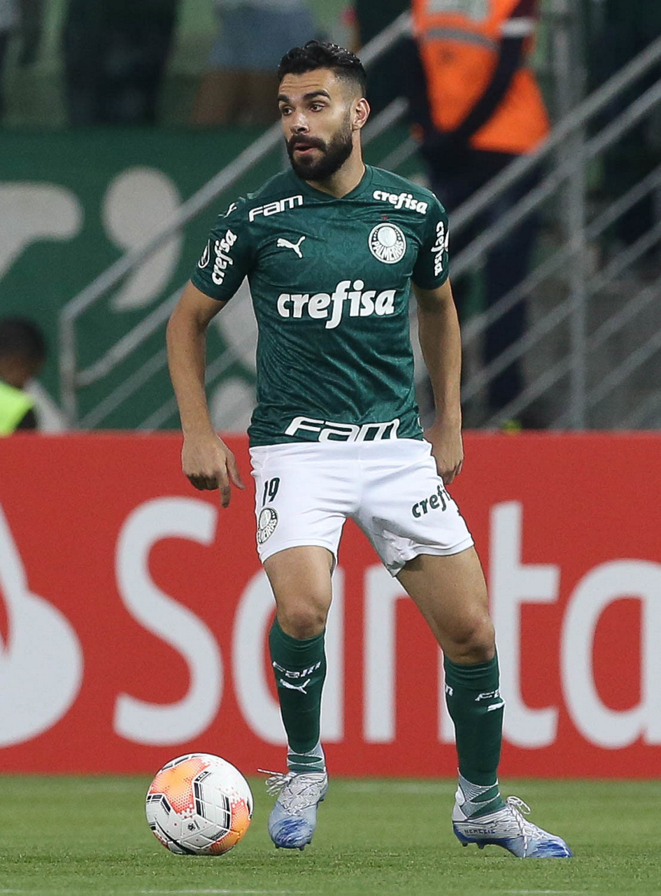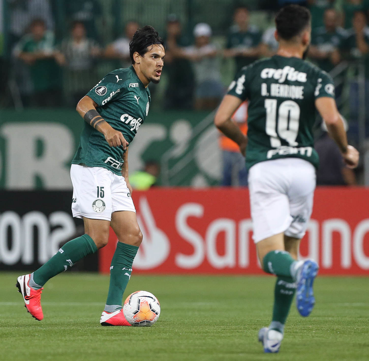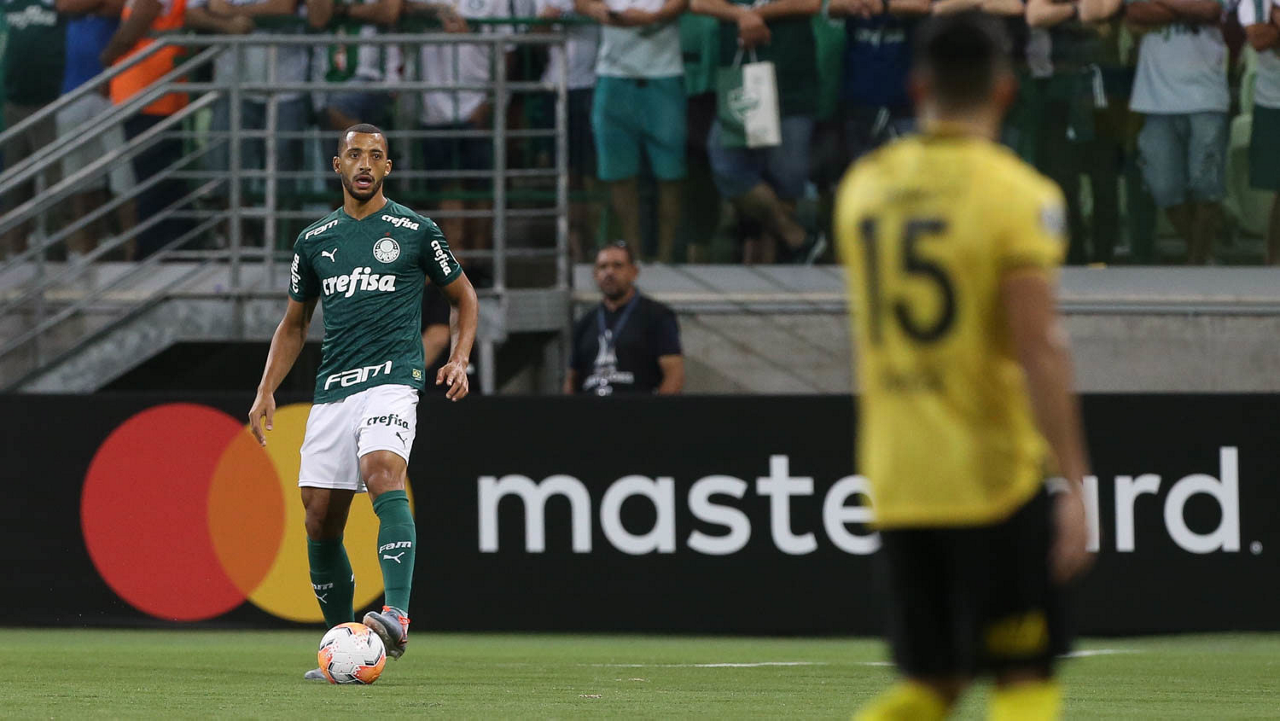 O jogador Patrick de Paula, da SE Palmeiras, em jogo contra a equipe do C Guaraní, durante partida válida pela segunda rodada, fase de grupos, da Copa Conmebol Libertadores, na arena Allianz Parque. (Foto: Cesar Greco)