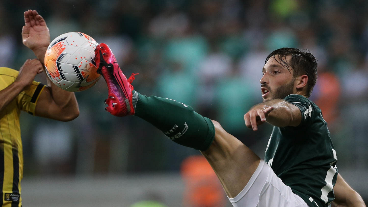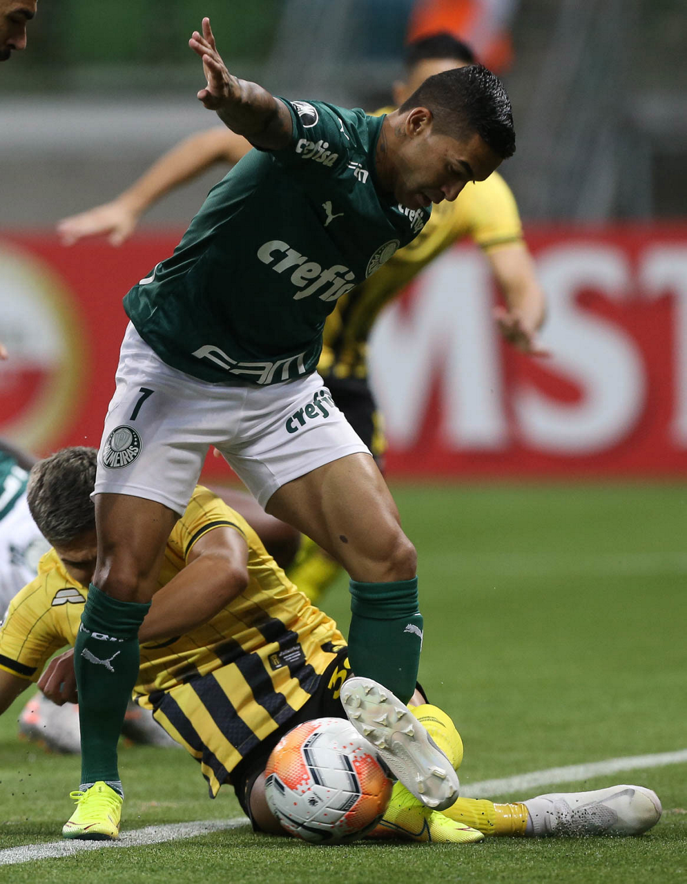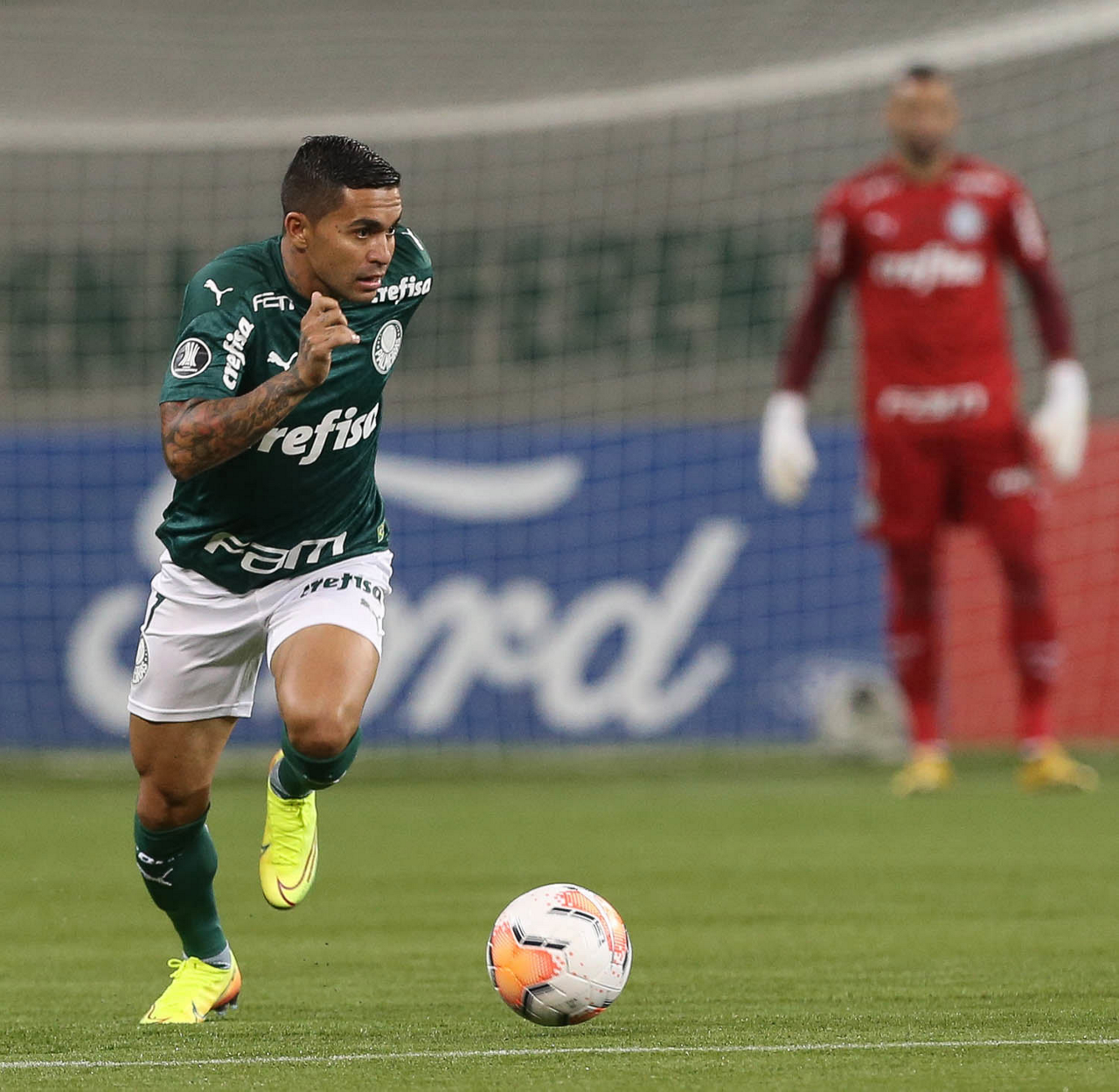 O jogador Dudu, da SE Palmeiras, em jogo contra a equipe do C Guaraní, durante partida válida pela segunda rodada, fase de grupos, da Copa Conmebol Libertadores, na arena Allianz Parque. (Foto: Cesar Greco)