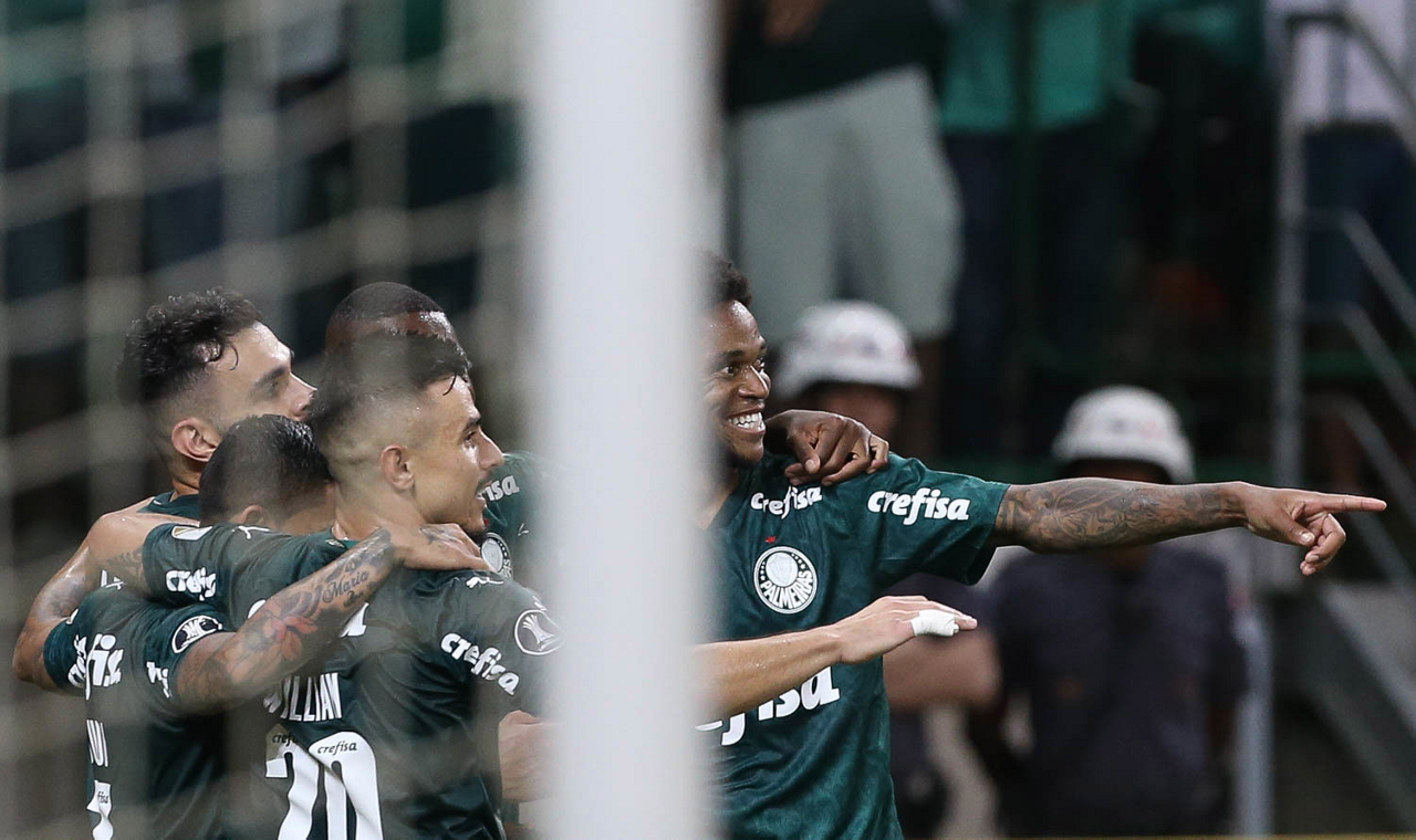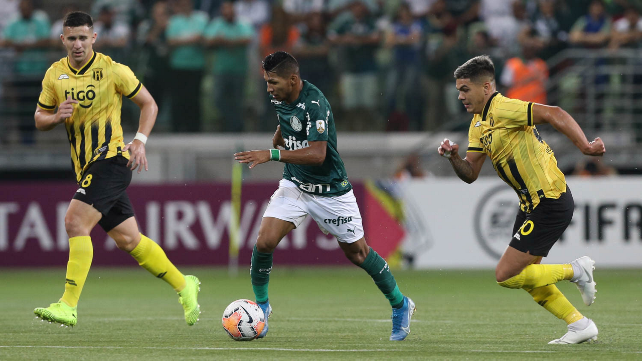 O time da SE Palmeiras, em jogo contra a equipe do C Guaraní, durante partida válida pela segunda rodada, fase de grupos, da Copa Conmebol Libertadores, na arena Allianz Parque. (Foto: Cesar Greco)