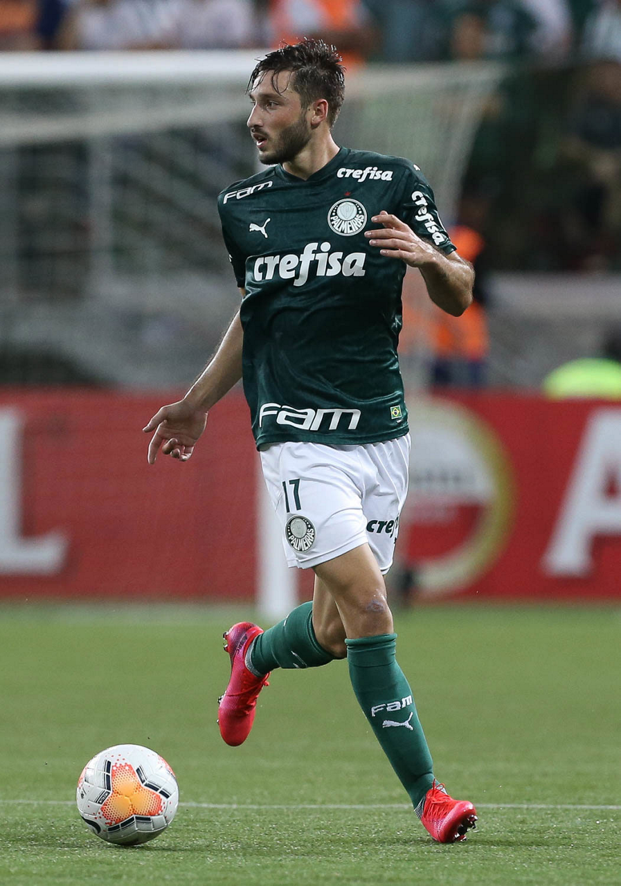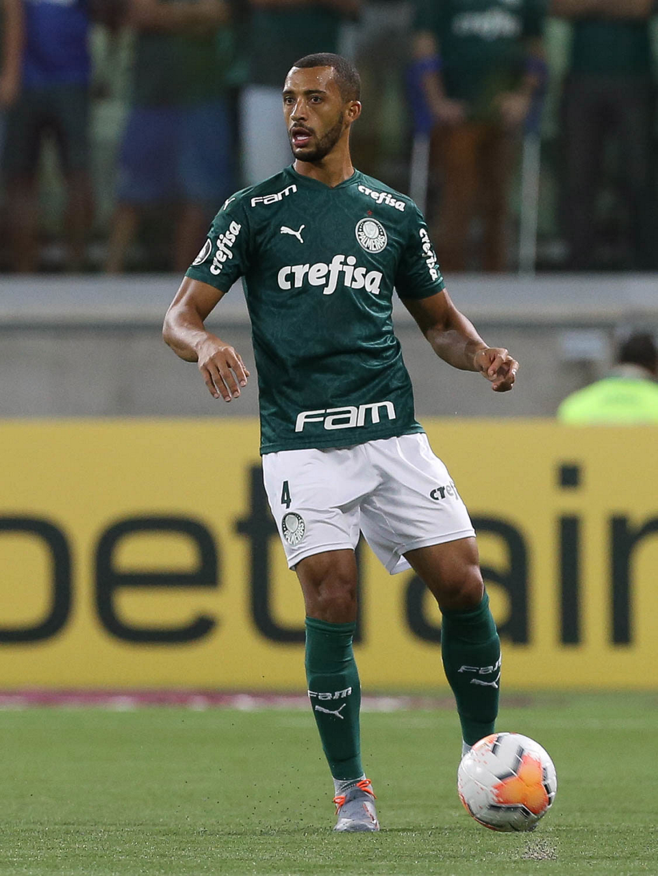 O jogador Matías Viña, da SE Palmeiras, em jogo contra a equipe do C Guaraní, durante partida válida pela segunda rodada, fase de grupos, da Copa Conmebol Libertadores, na arena Allianz Parque. (Foto: Cesar Greco)