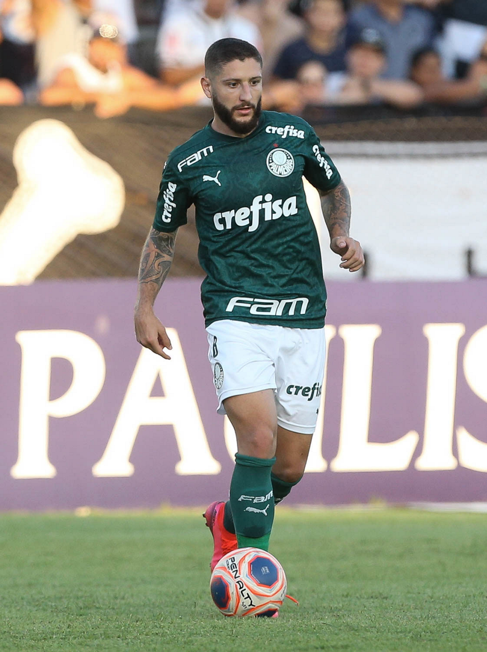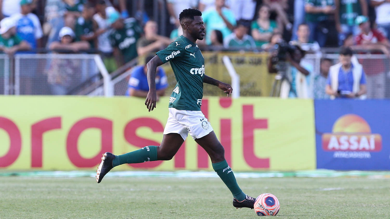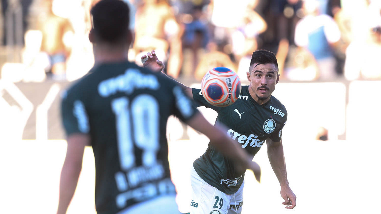 O jogador Matías Viña, da SE Palmeiras, em jogo contra a equipe da AA Internacional-Limeira, durante partida válida pela décima rodada, do Campeonato Paulista, Série A1, no Estádio Major José Levy Sobrinho. (Foto: Cesar Greco)