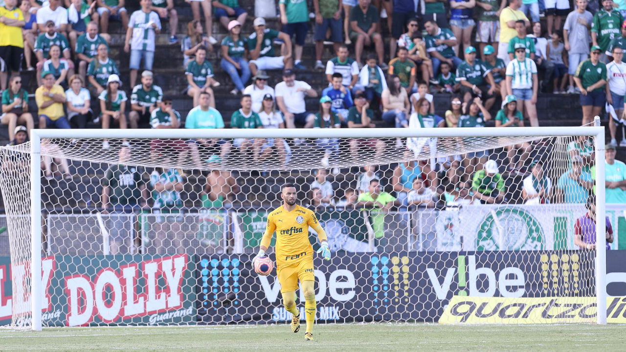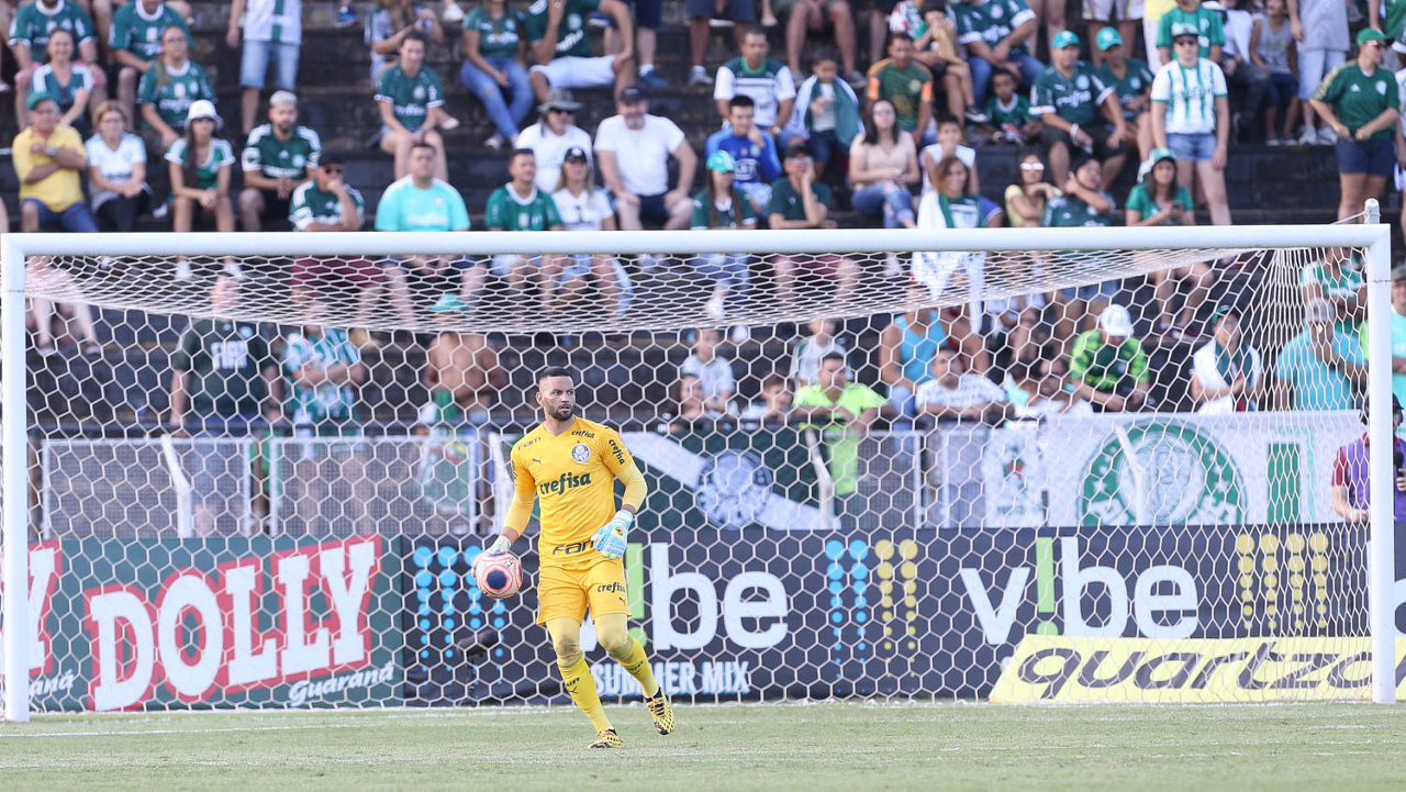 O goleiro Weverton, da SE Palmeiras, em jogo contra a equipe da AA Internacional-Limeira, durante partida válida pela décima rodada, do Campeonato Paulista, Série A1, no Estádio Major José Levy Sobrinho. (Foto: Cesar Greco)