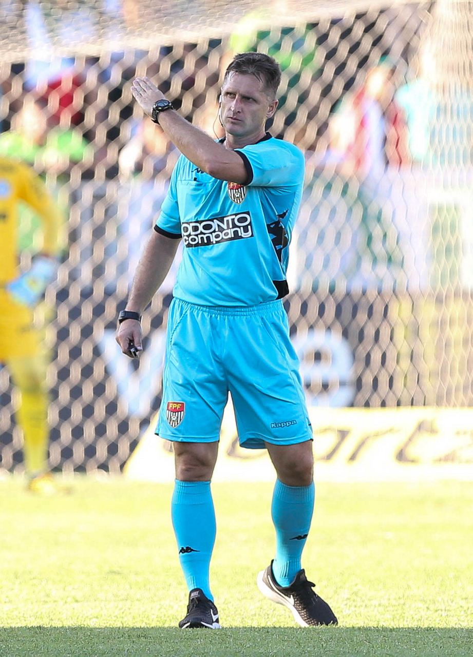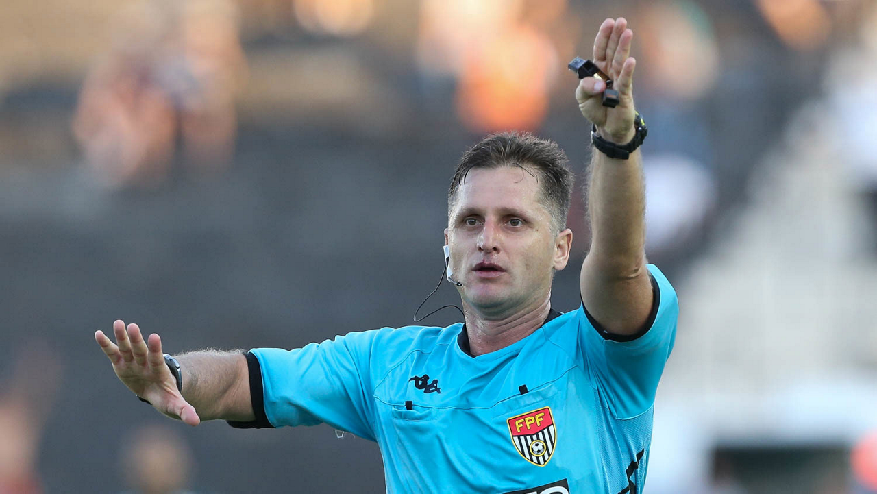 O árbitro Vinicius Furlan, do jogo entre as equipes da SE Palmeiras e AA Internacional-Limeira, durante partida válida pela décima rodada, do Campeonato Paulista, Série A1, no Estádio Major José Levy Sobrinho. (Foto: Cesar Greco)