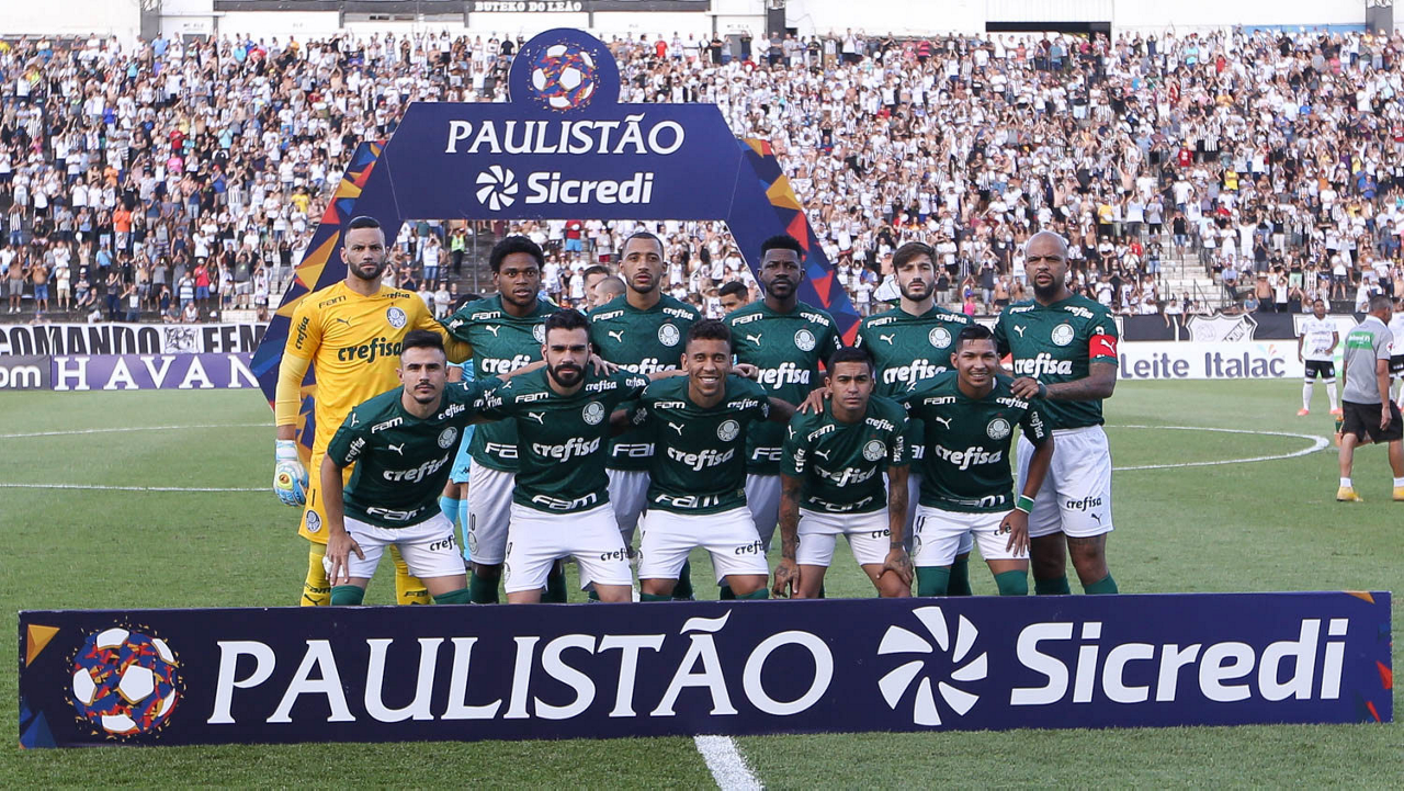 O time da SE Palmeiras, em jogo contra a equipe da AA Internacional-Limeira, durante partida válida pela décima rodada, do Campeonato Paulista, Série A1, no Estádio Major José Levy Sobrinho. (Foto: Cesar Greco)